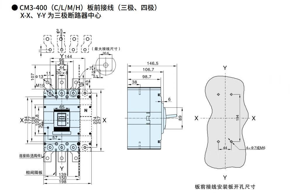 Changshu Switch Factory CM3-400L/3300400A315ACM3 molded case circuit breaker air switch leakage protection 315A 3P