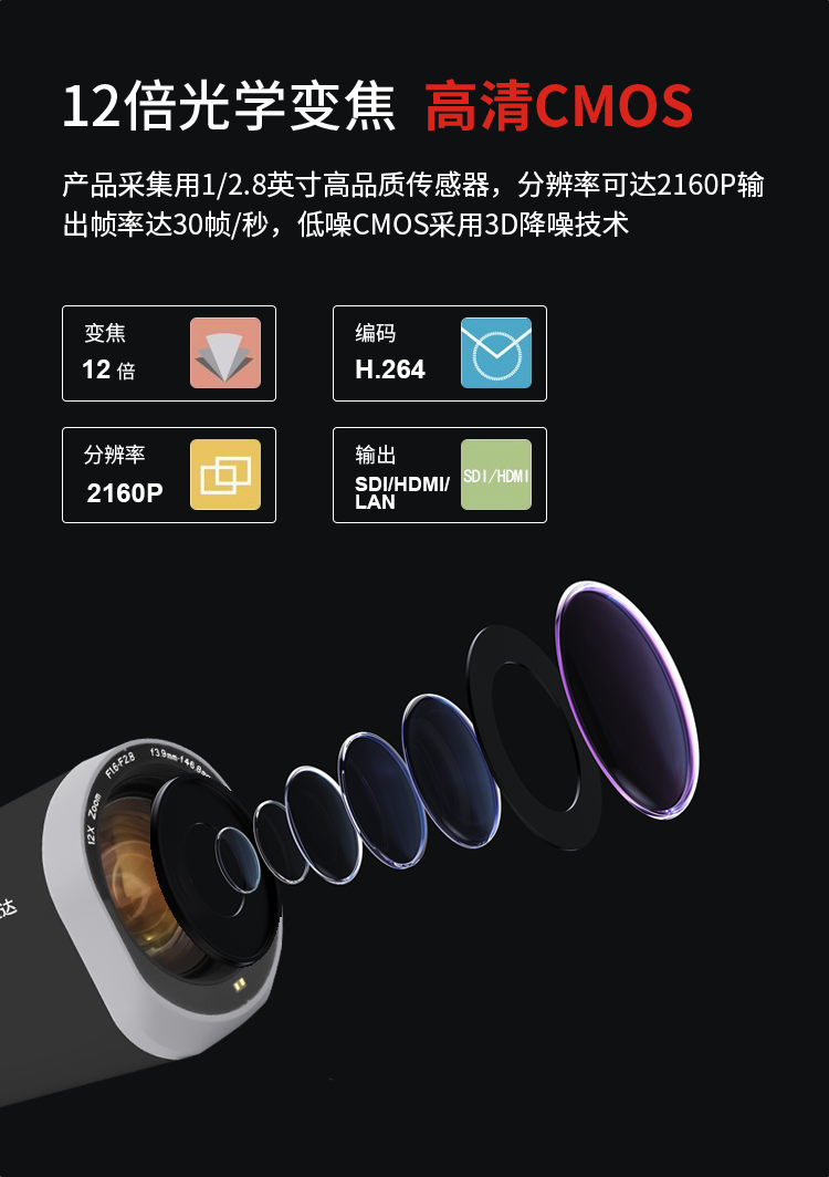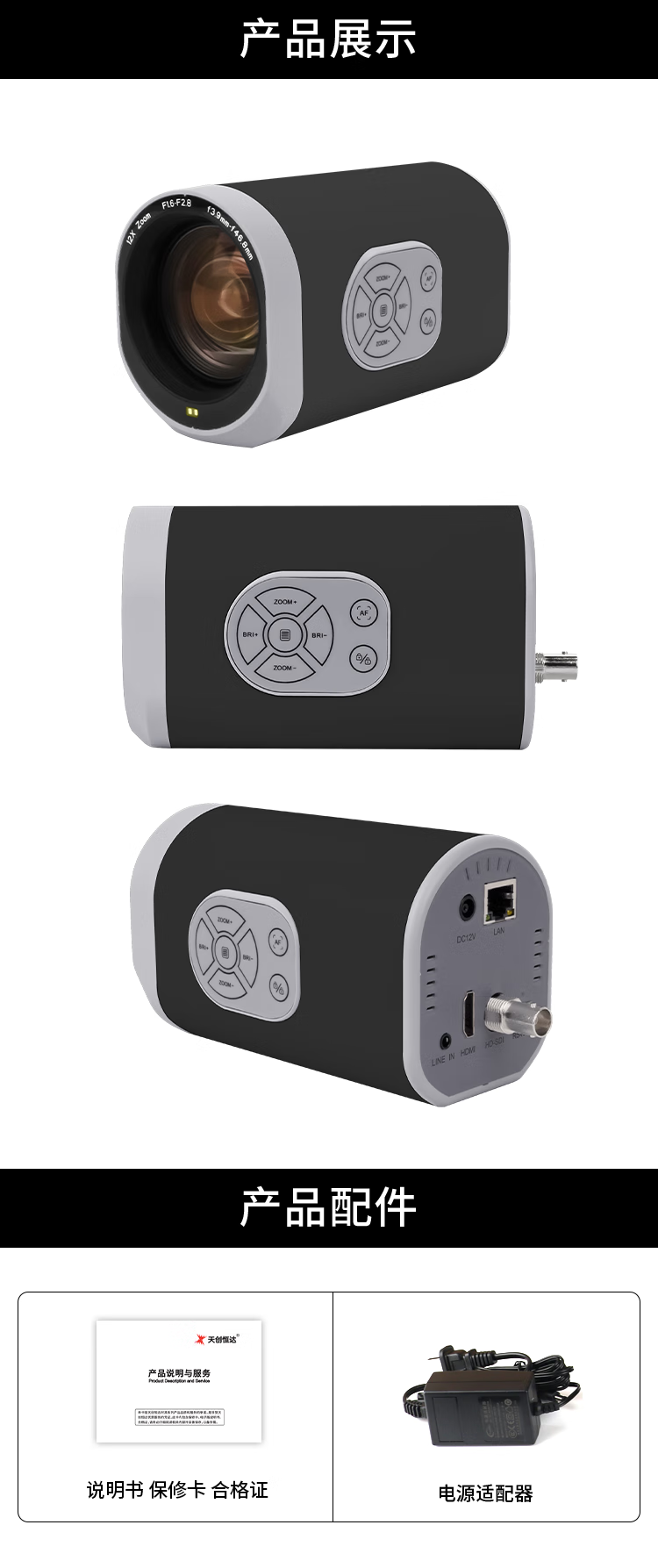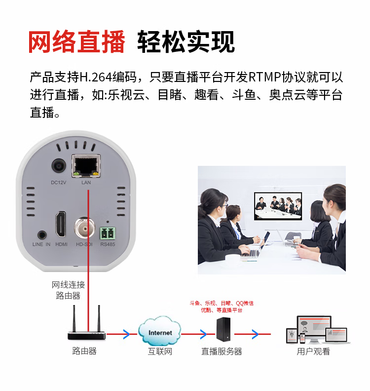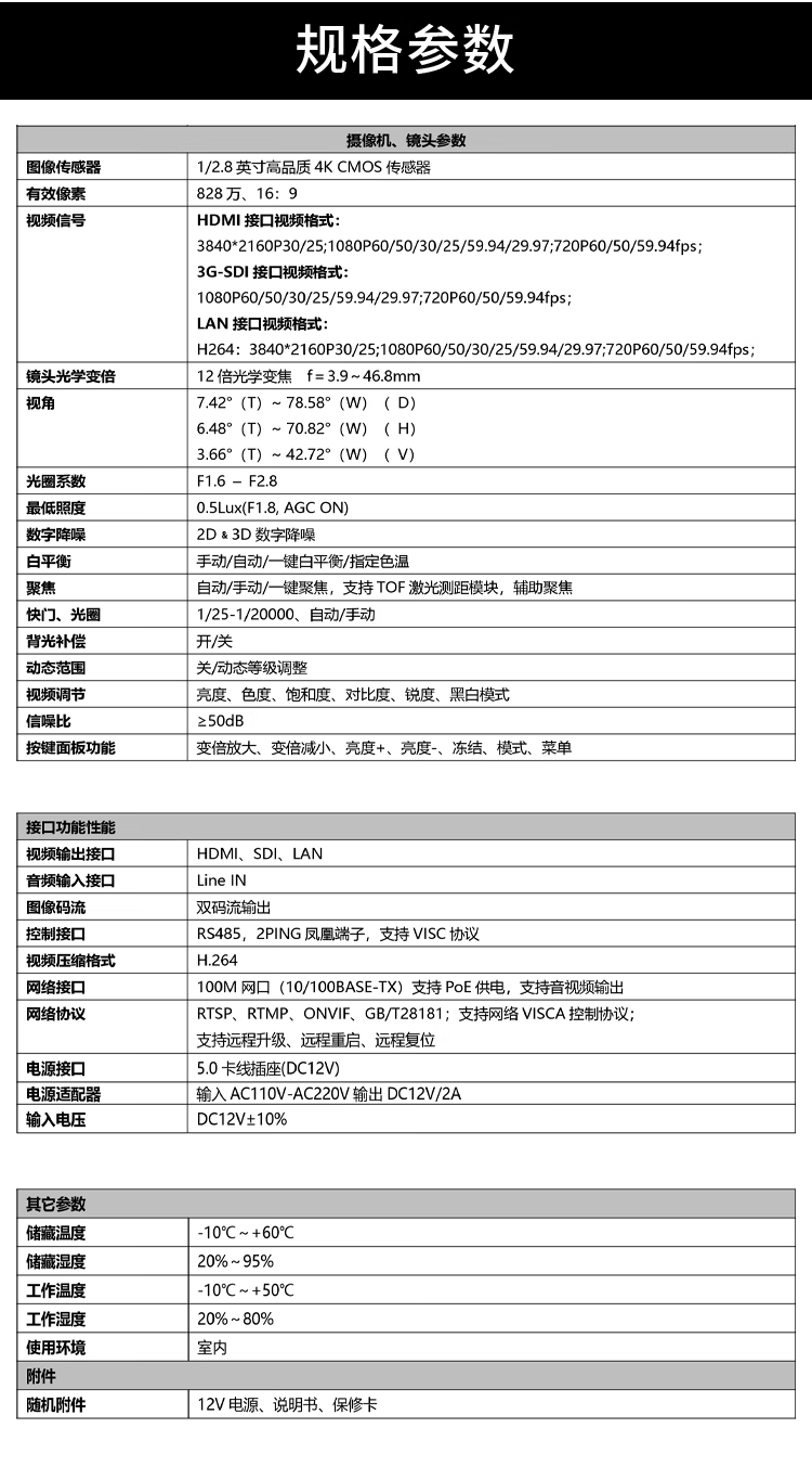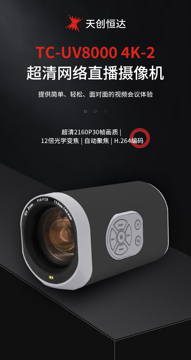 TCHD Video Tianchuang Hengda TC-UV8000 live broadcast camera 12x HDMI class recording HD RTMP network push streaming TC-UV8000 (1080P@60 frames)