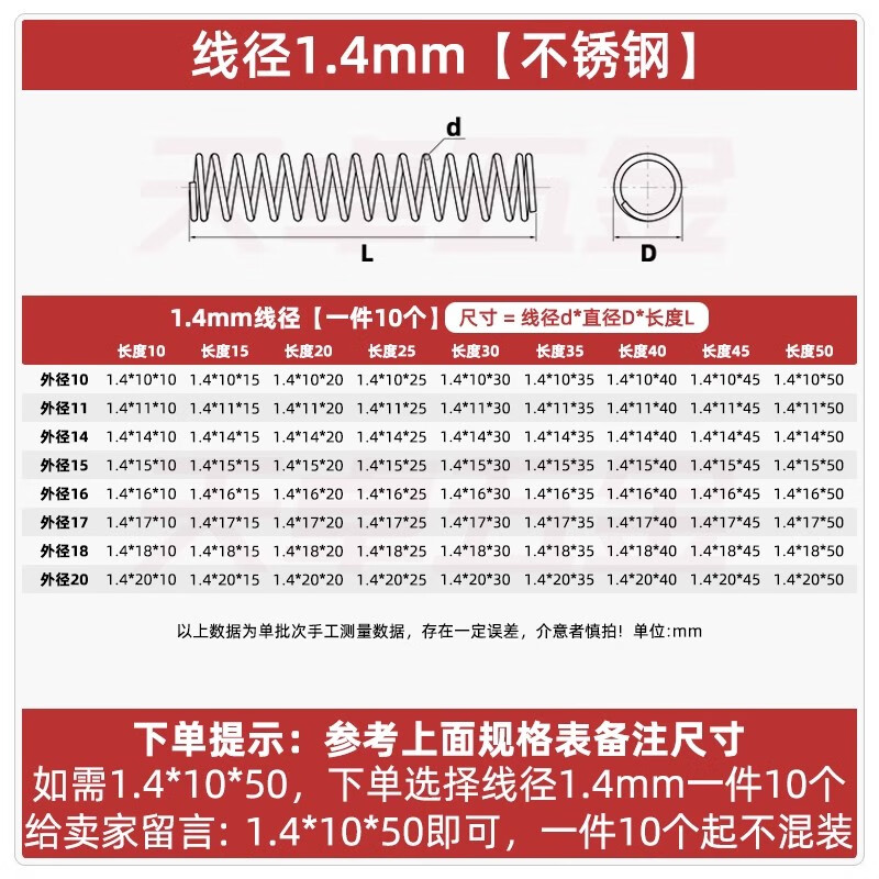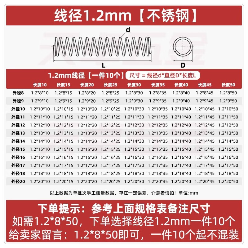 Tianzhuo hardware wire diameter 1.2 1.4 1.5mm 304 stainless steel spring compression spring pressure size shock absorption return Y-shaped spring 1.2*8*10 5 pcs