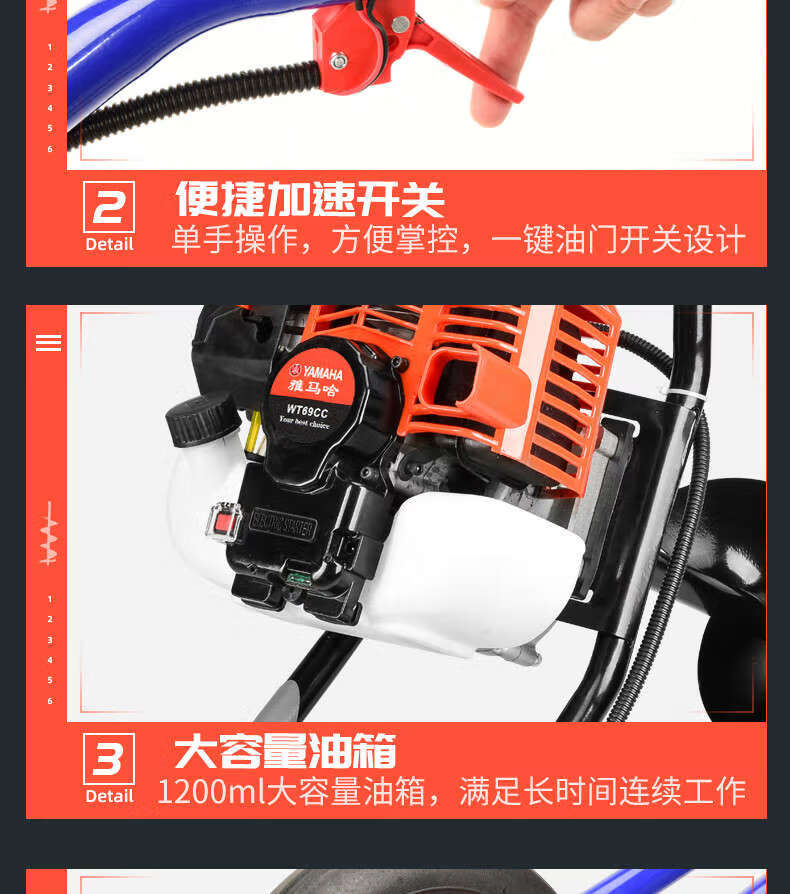 Kezitu customized four-stroke high-power pit digger gasoline drilling machine piling hole drilling machine agricultural tree planting fertilization soil drilling 198CC two-stroke hand-start 10 cm drill bit