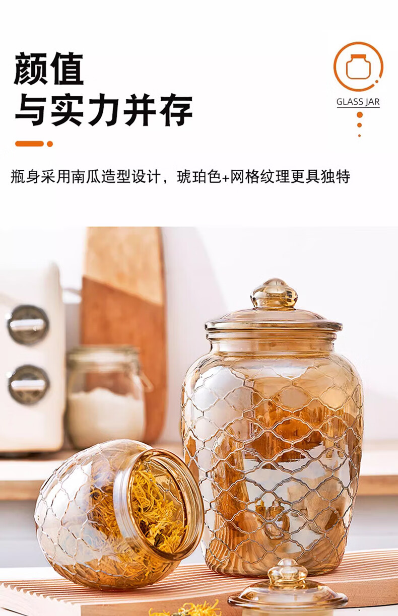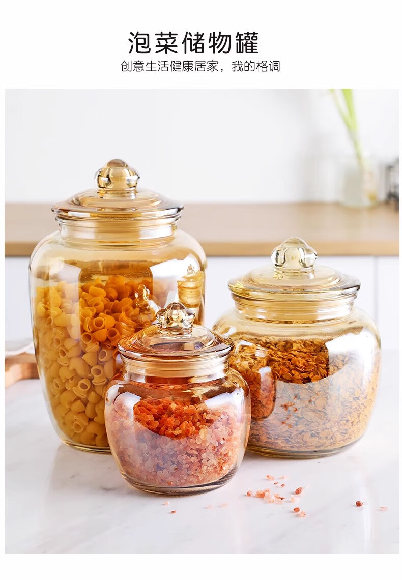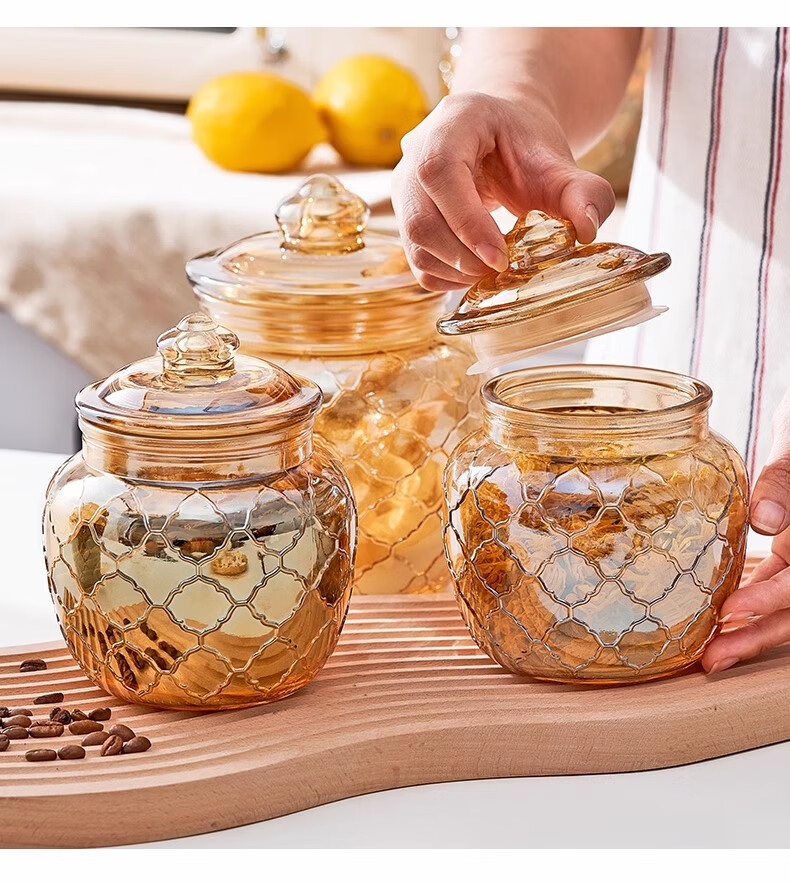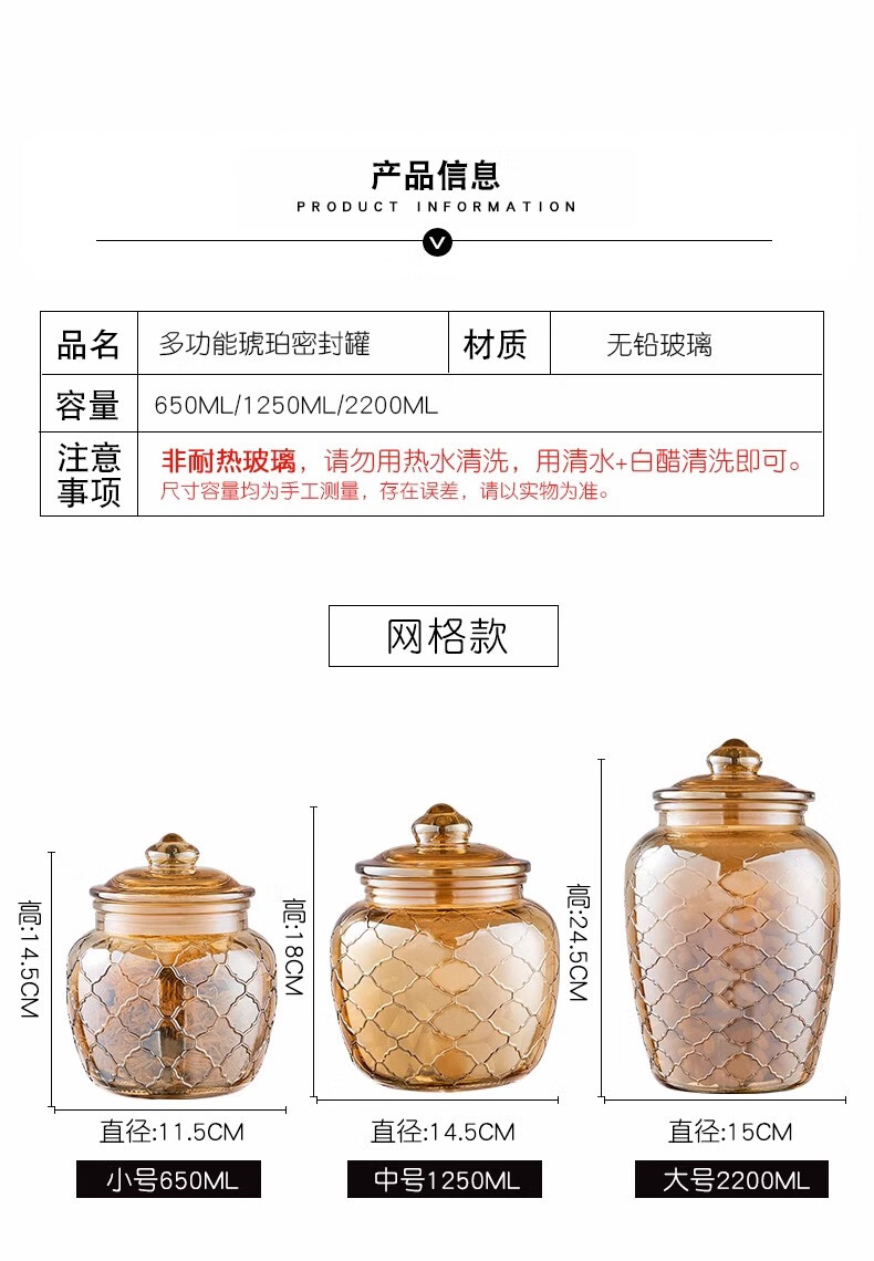 Amber sealed jar food storage glass bottle kimchi jar pickled pickles honey storage box storage empty bottles amber grid 650+1250+2200ML-3 piece set