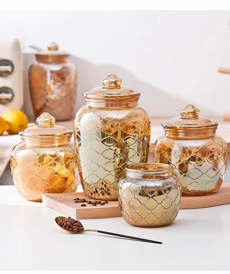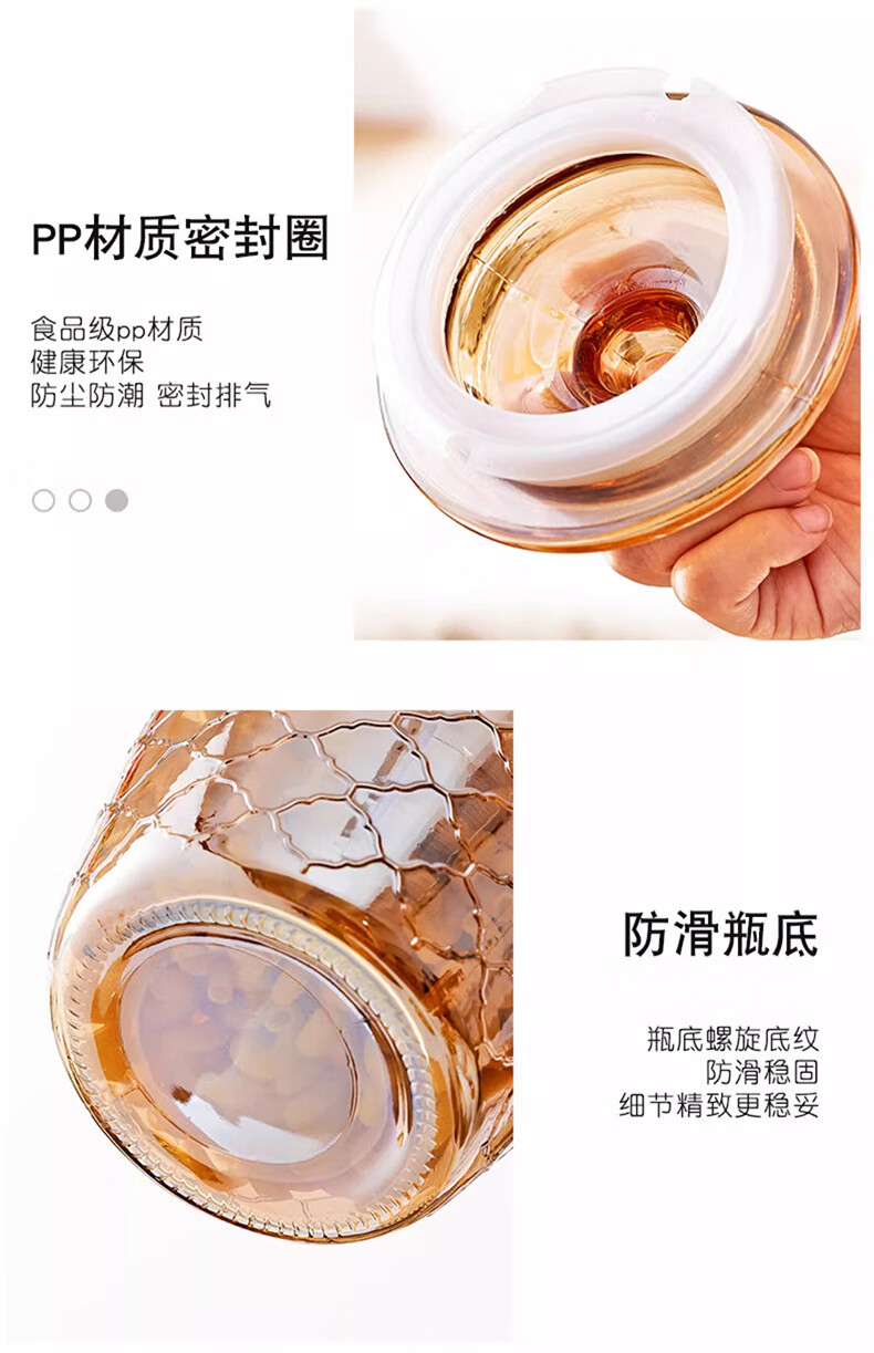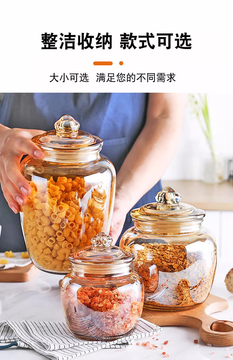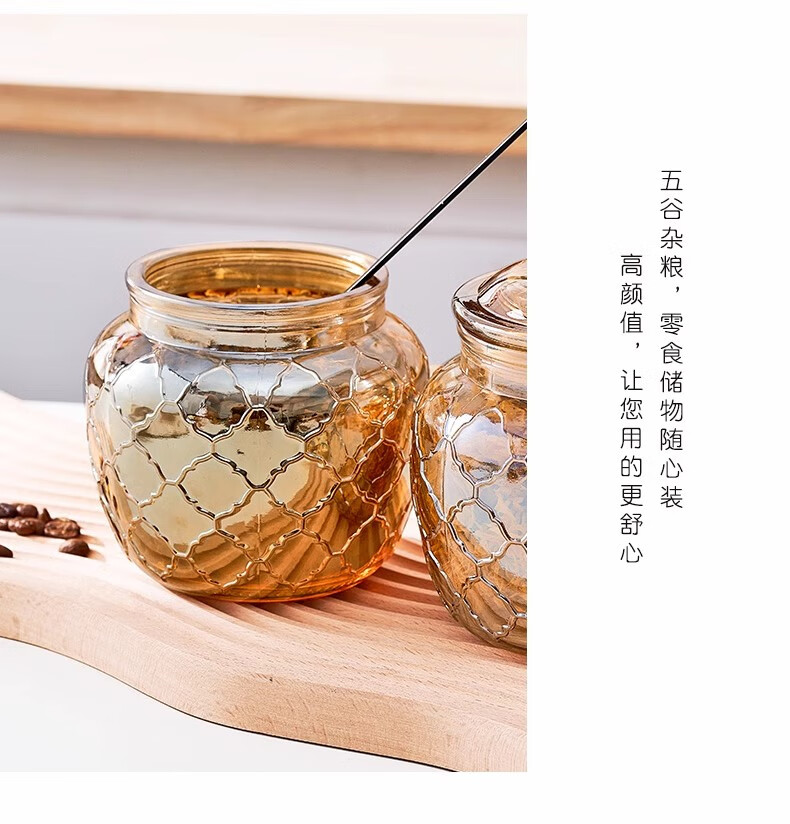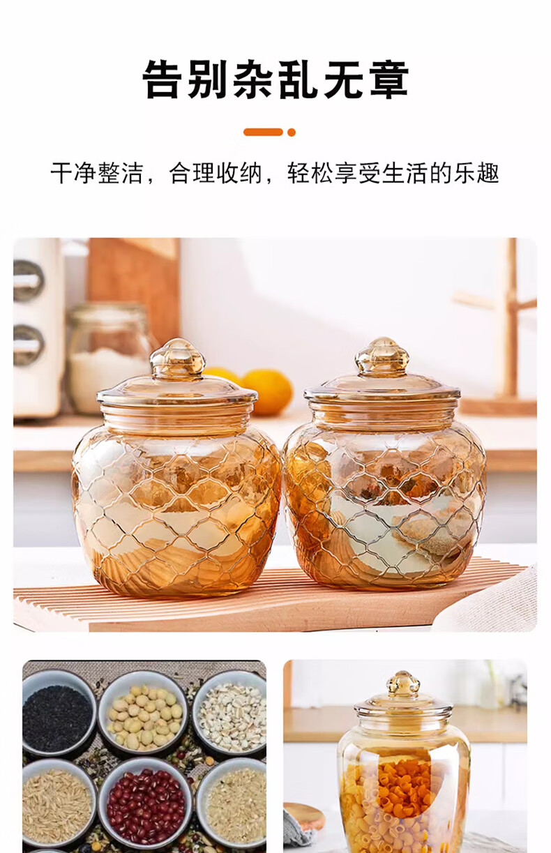Amber sealed jar food storage glass bottle kimchi jar pickled pickles honey storage box storage empty bottles amber grid 650+1250+2200ML-3 piece set