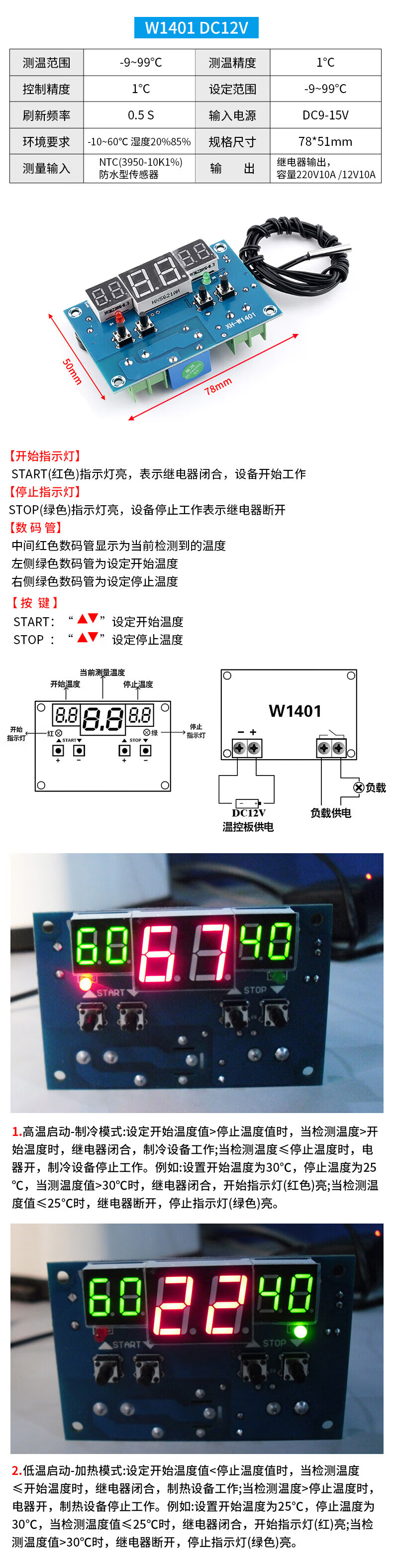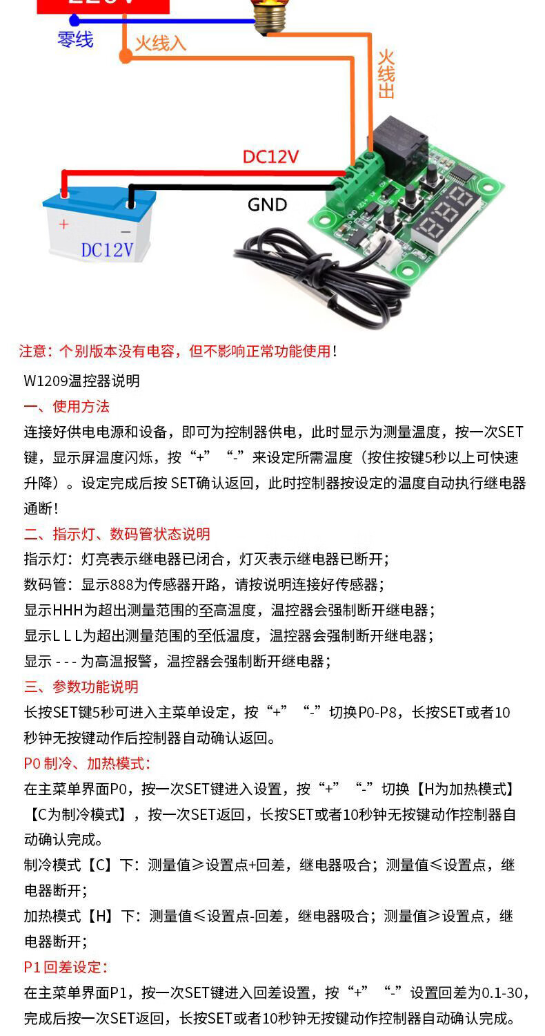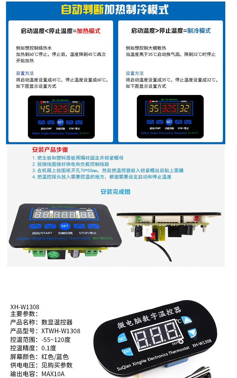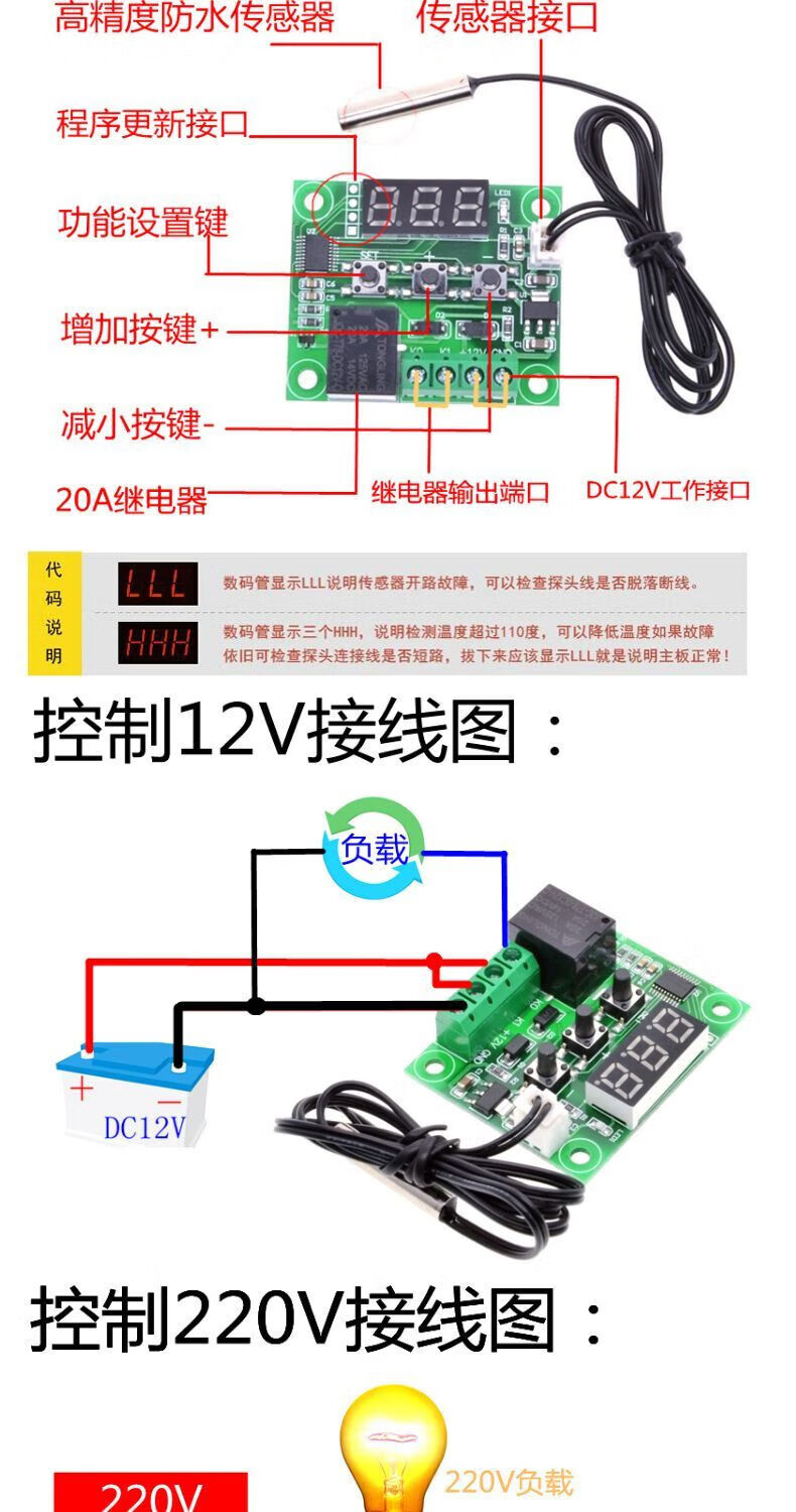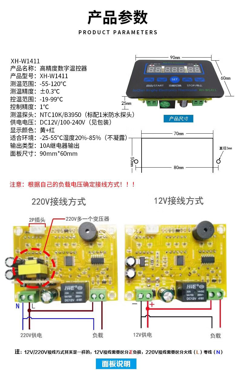W1209 digital thermostat XH-W1308/W1411 temperature control switch temperature controller module 12V/220V XH-W130812v red Please consult customer service for quotation for large quantities