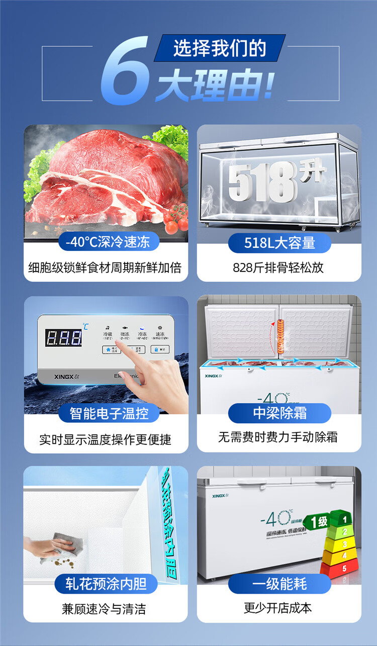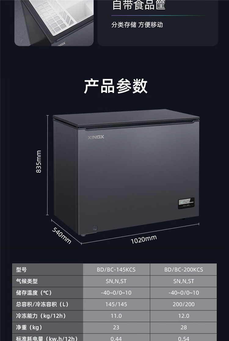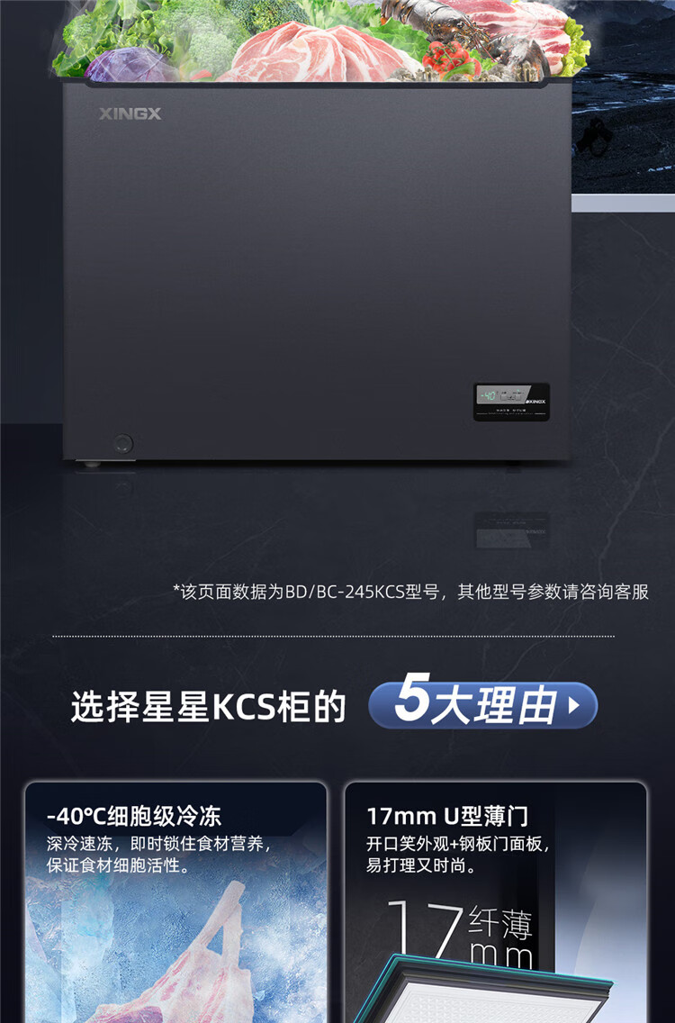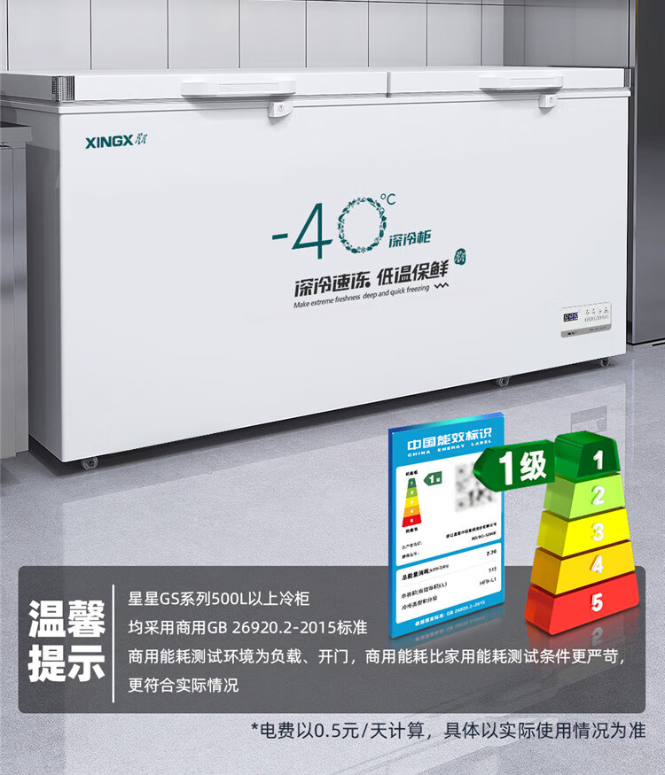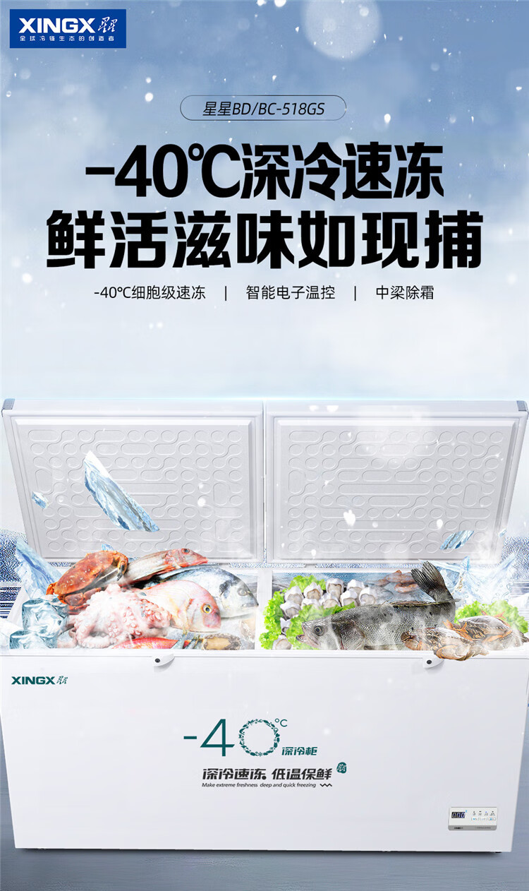 Xingx (XINGX) ultra-low temperature freezer minus 40 degrees freezer commercial quick-frozen fresh cabinet household fresh cabinet large capacity freezer - 40 degrees single temperature freezer BD/BC-145KCS frost reduction and odor reduction - 40 degrees deep cold