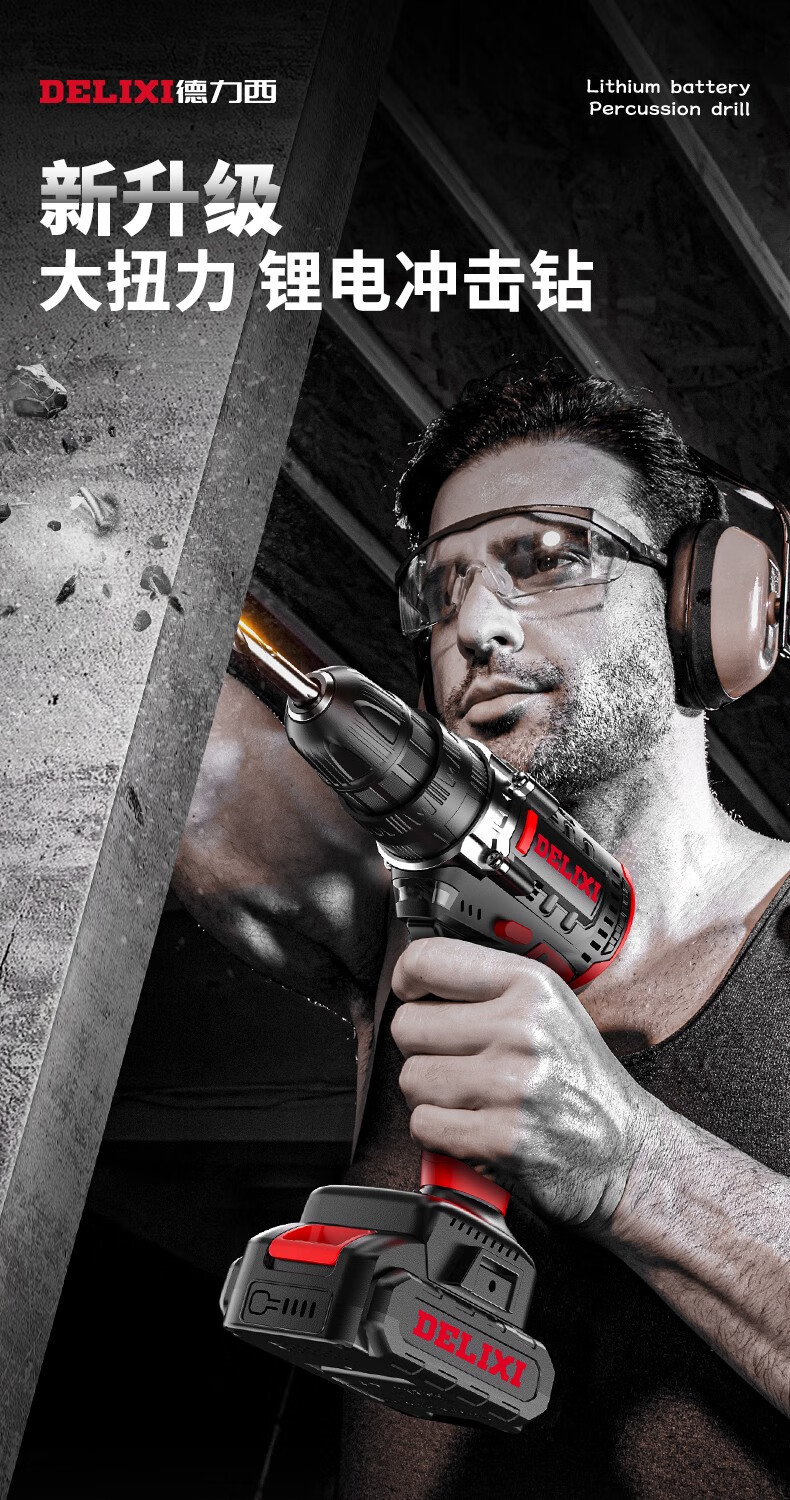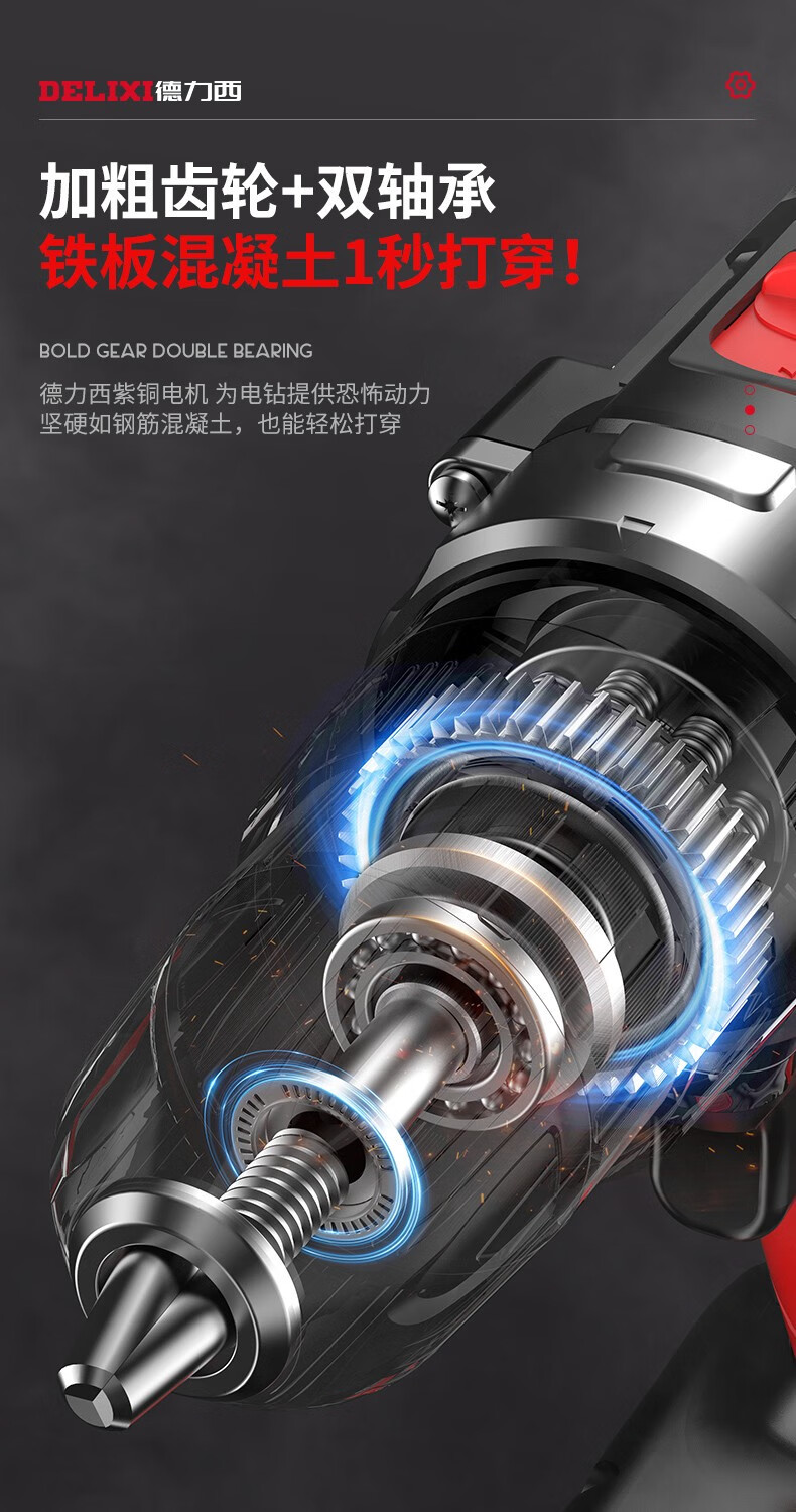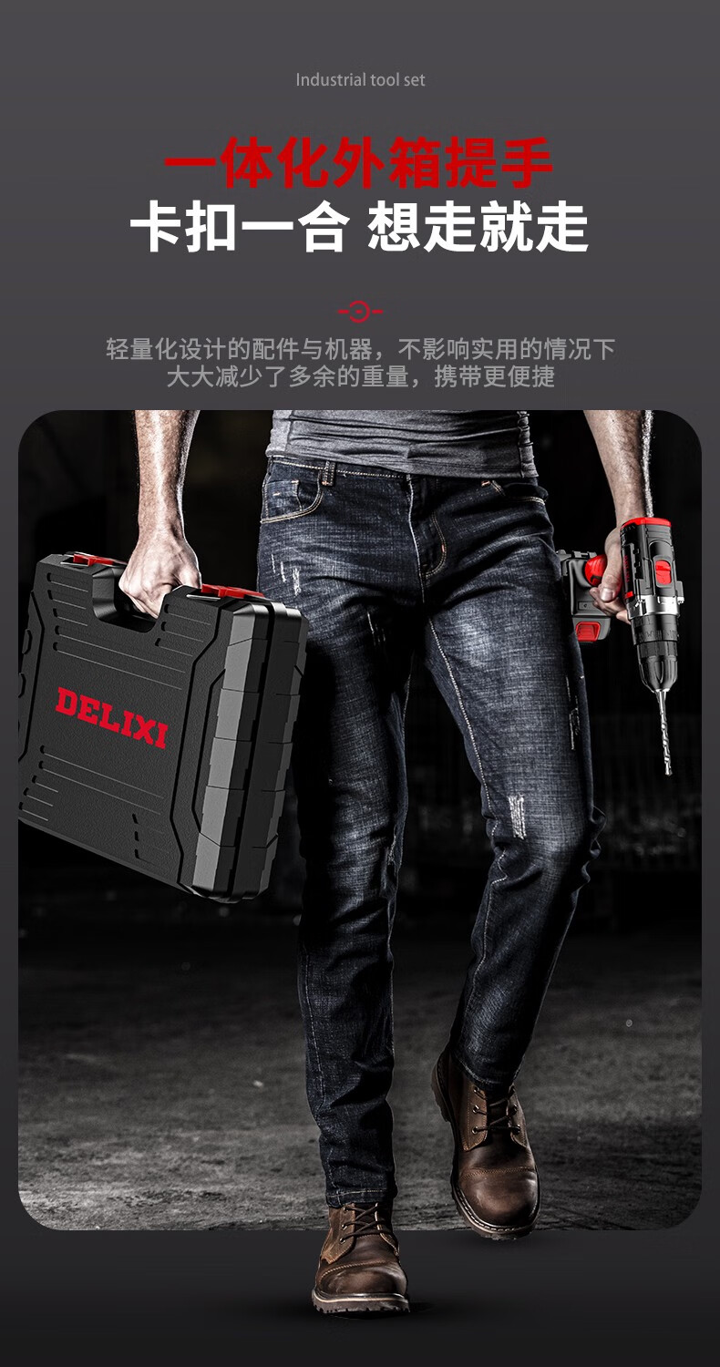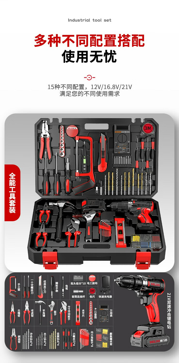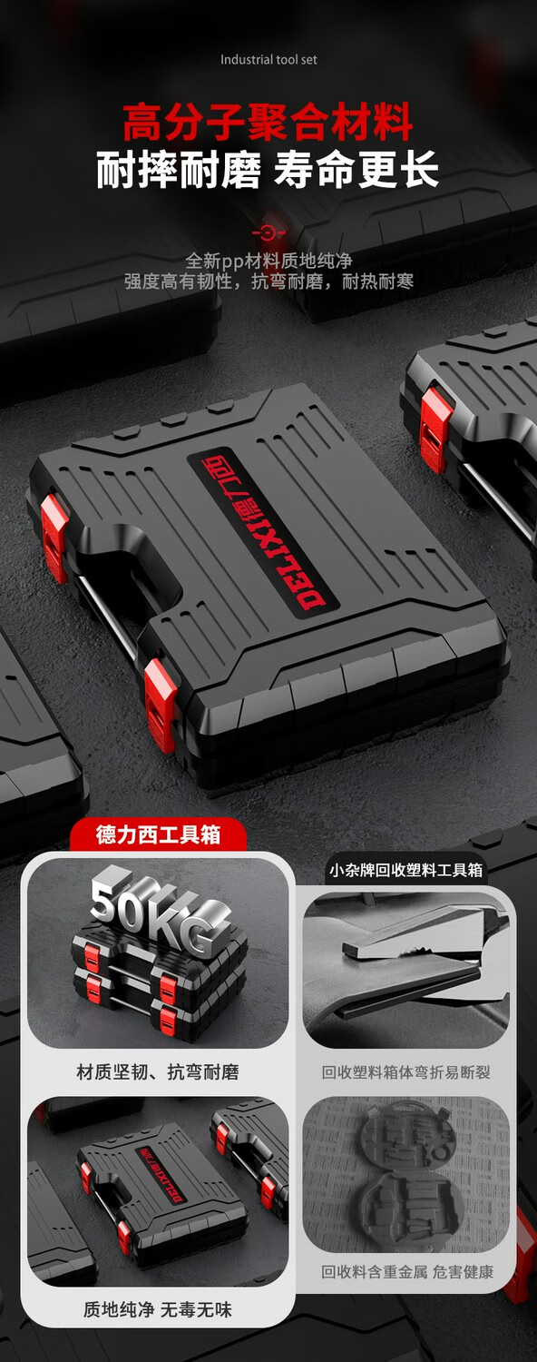 Delixi household lithium electric drill tool set hardware electrician woodworking special repair multi-functional tool box collection practical tool set + 21V double-speed impact electric drill