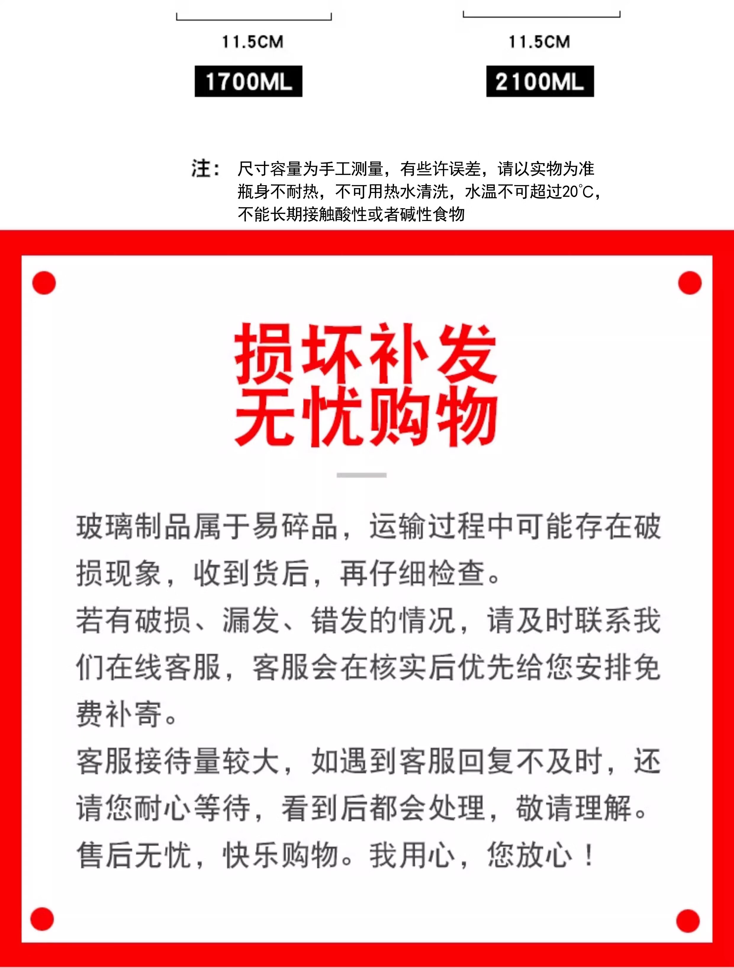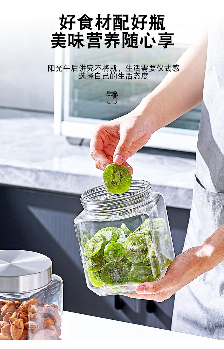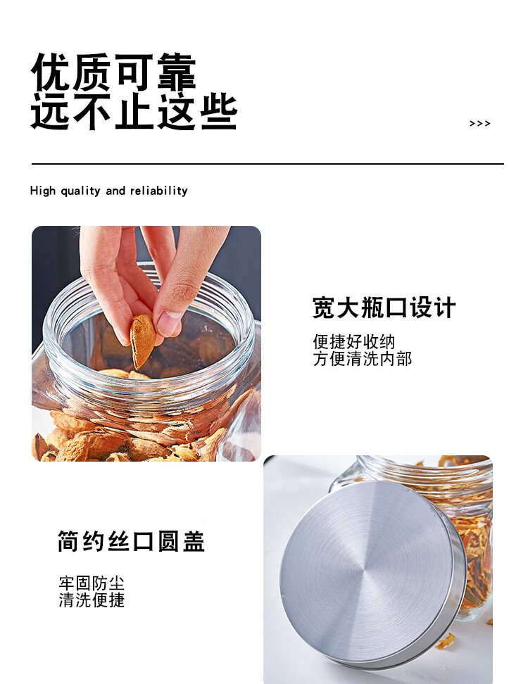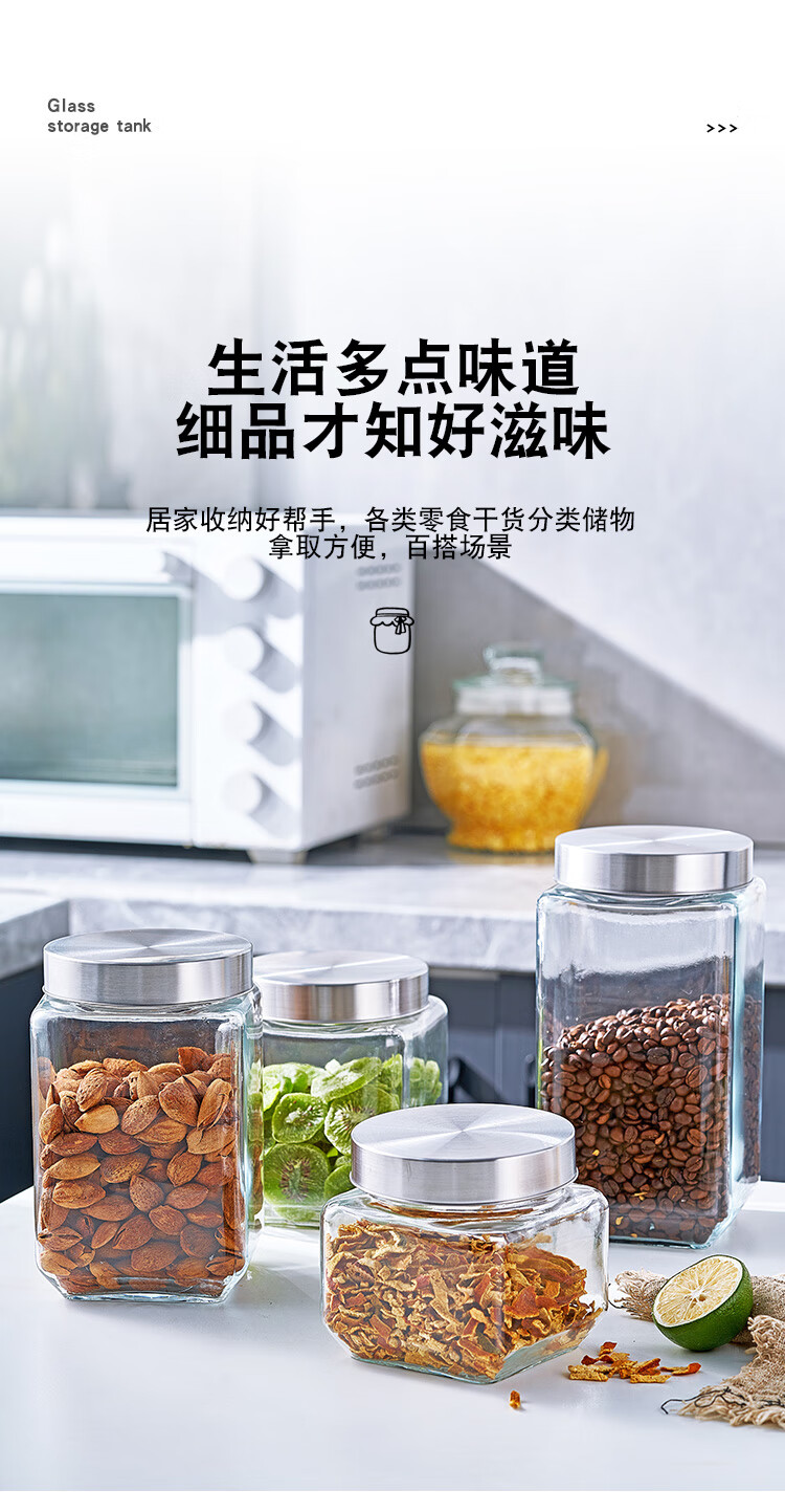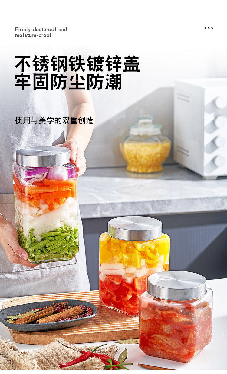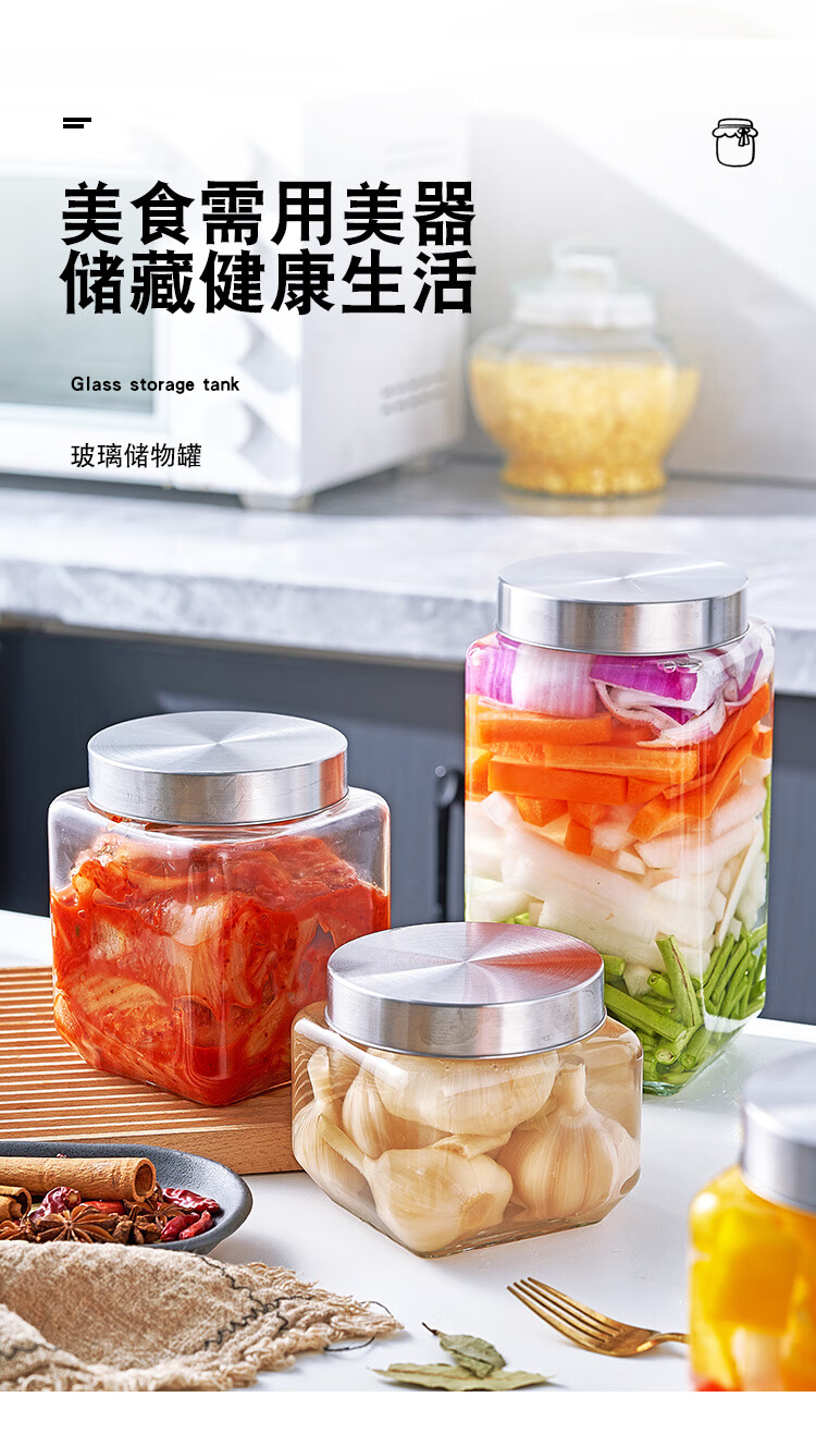 Glass sealed jar tangerine peel large capacity household grain storage pickled garlic jar thickened storage pickle jar thickened glass water capacity 2100ML two packs
