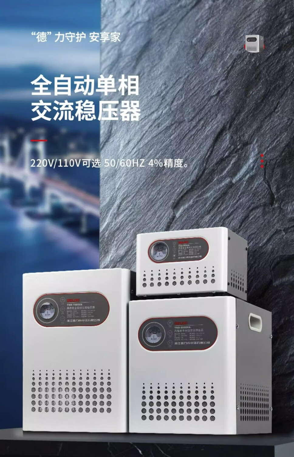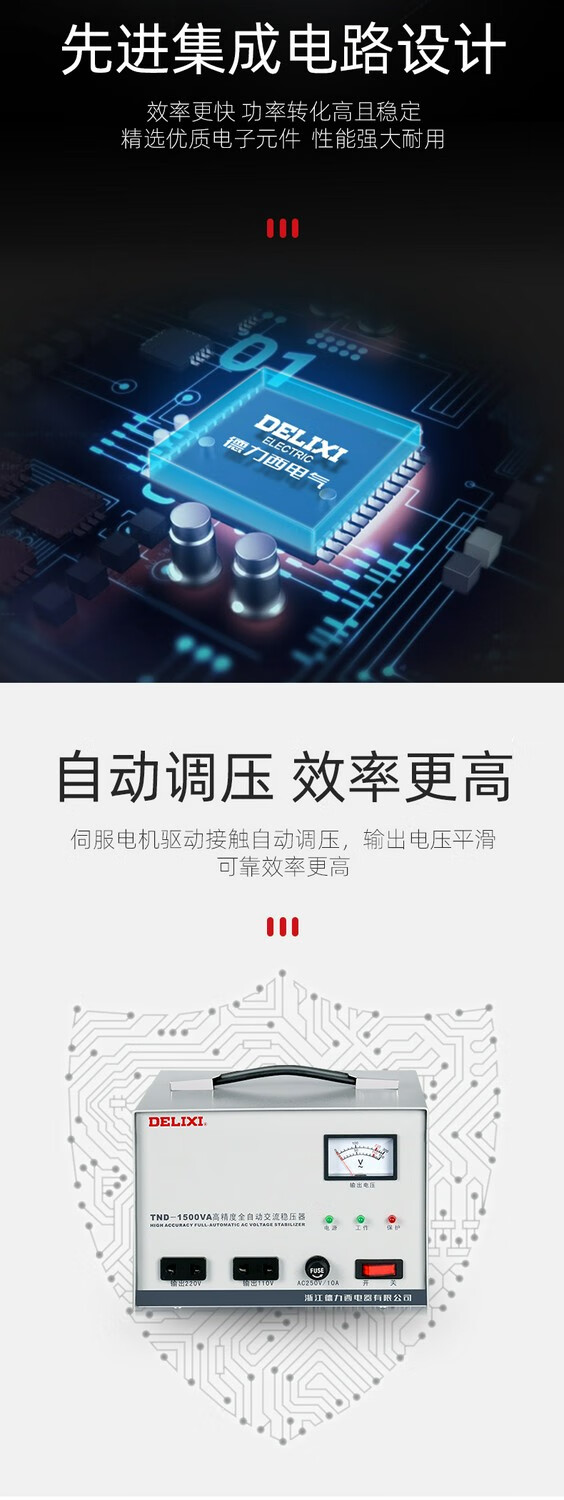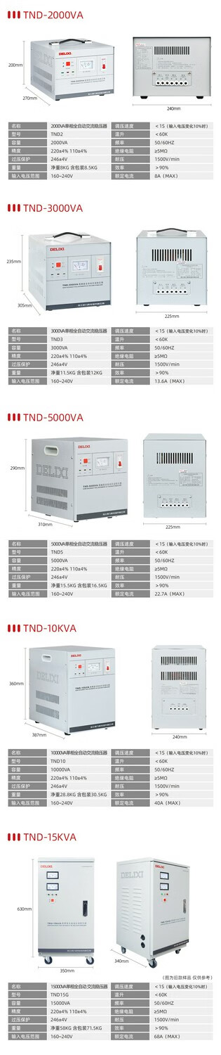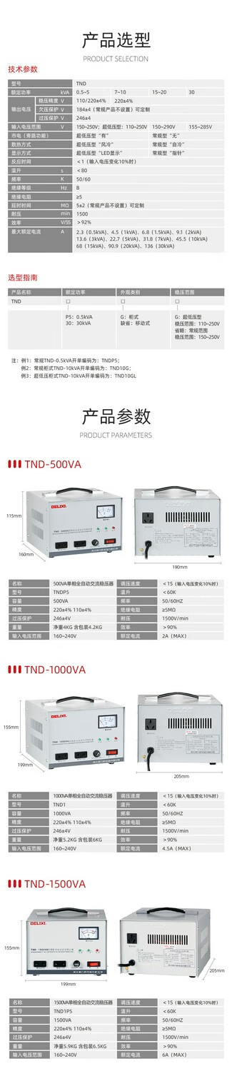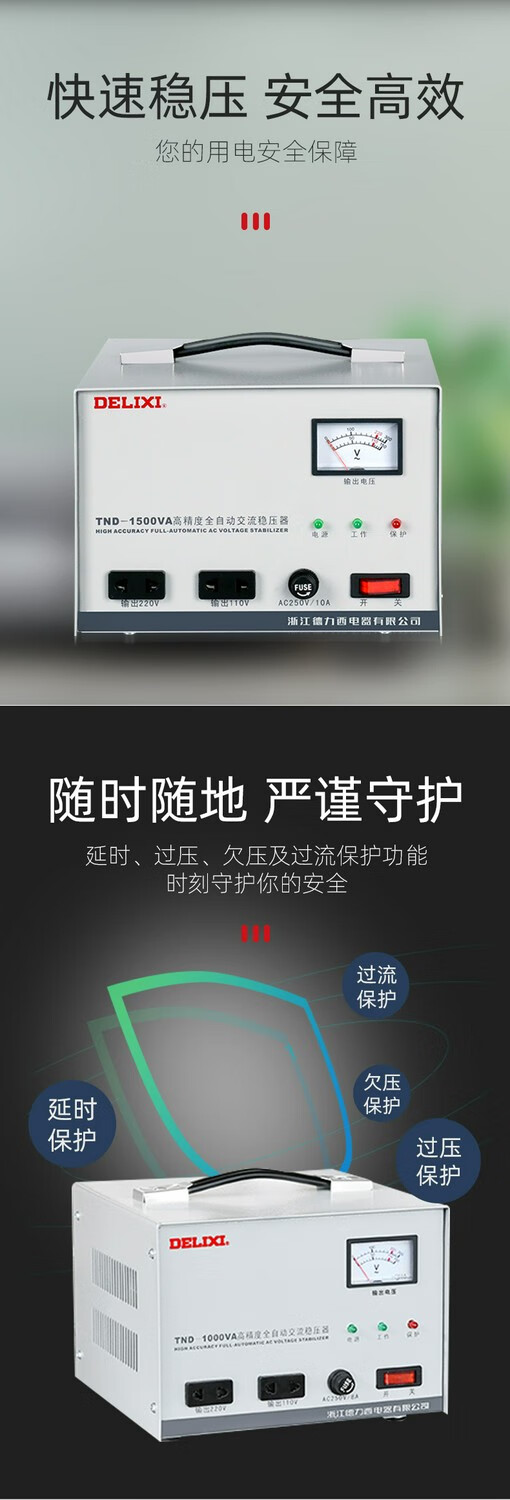 DELIXI ELECTRIC Delixi 220v fully automatic three-phase high-power single-phase voltage regulation AC computer TV 380V power supply regulator TND single-phase 500W free digital display 8003 power