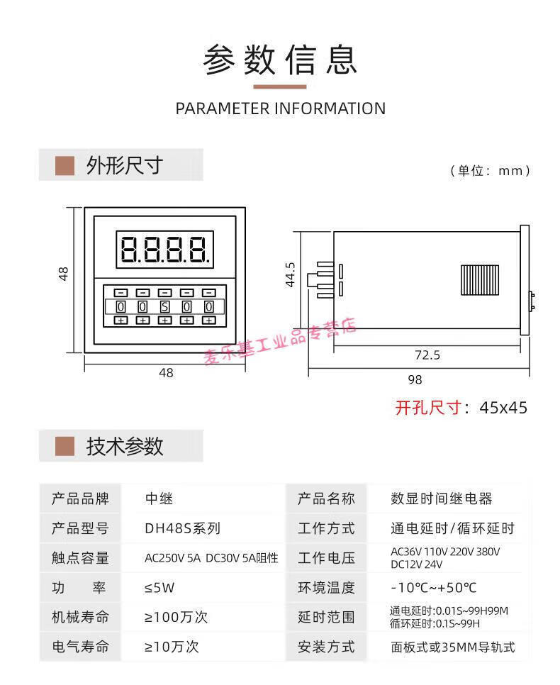 Suitable for DH48S double cycle time relay 220v AC 380 energized time control switch digital display 24v base DH48S-S with base infinite cycle timing AC220V
