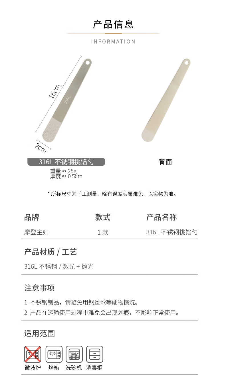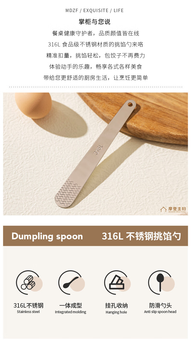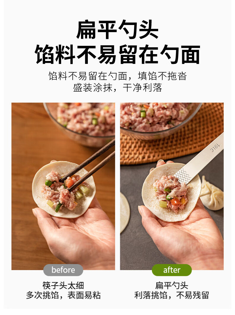 Modern Housewife 316L Stainless Steel Dumpling Spoon Household Wonton Making Tool Flat Ruler Stuffing Spoon Magic 1 Pack 316L Stuffing Spoon 16*2cm