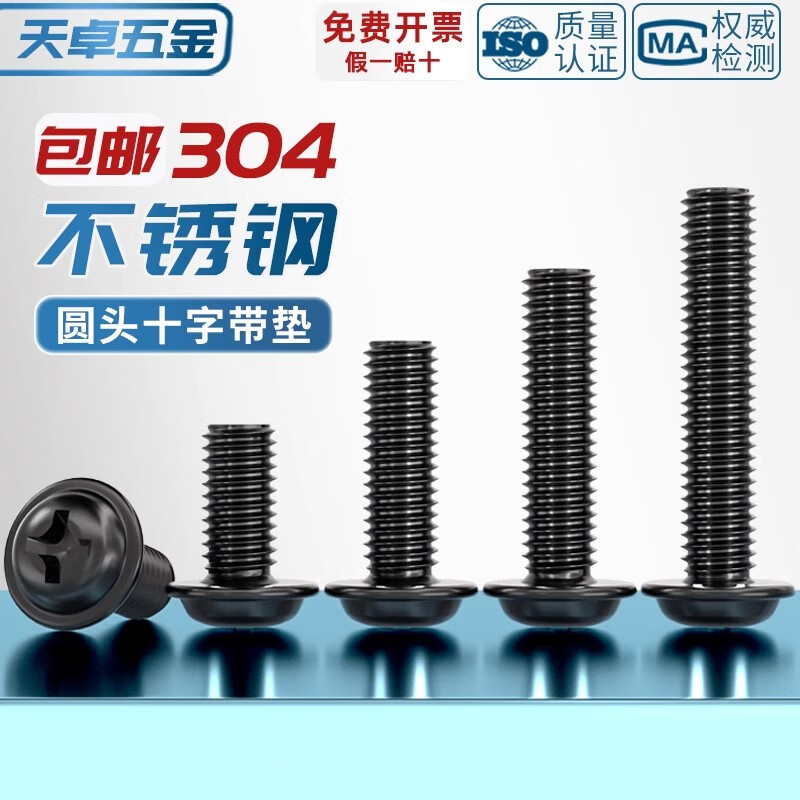 Tianzhuo Hardware PWM black 304 stainless steel cross round head pad screws black zinc plated pan head screws M2M2.5M3M4M5mm black 304-M4*10 20 pcs