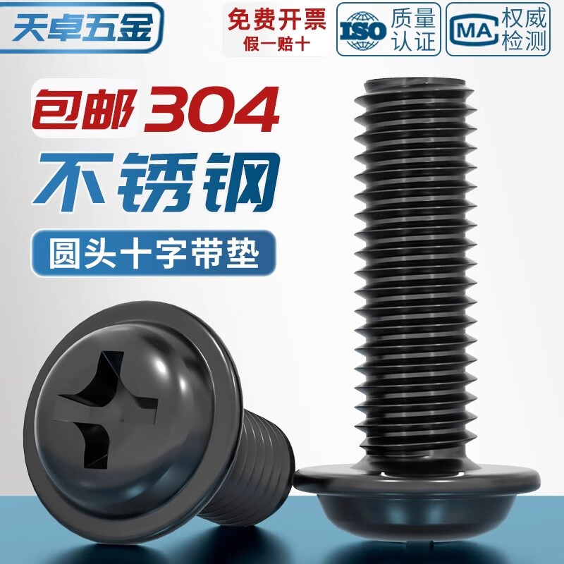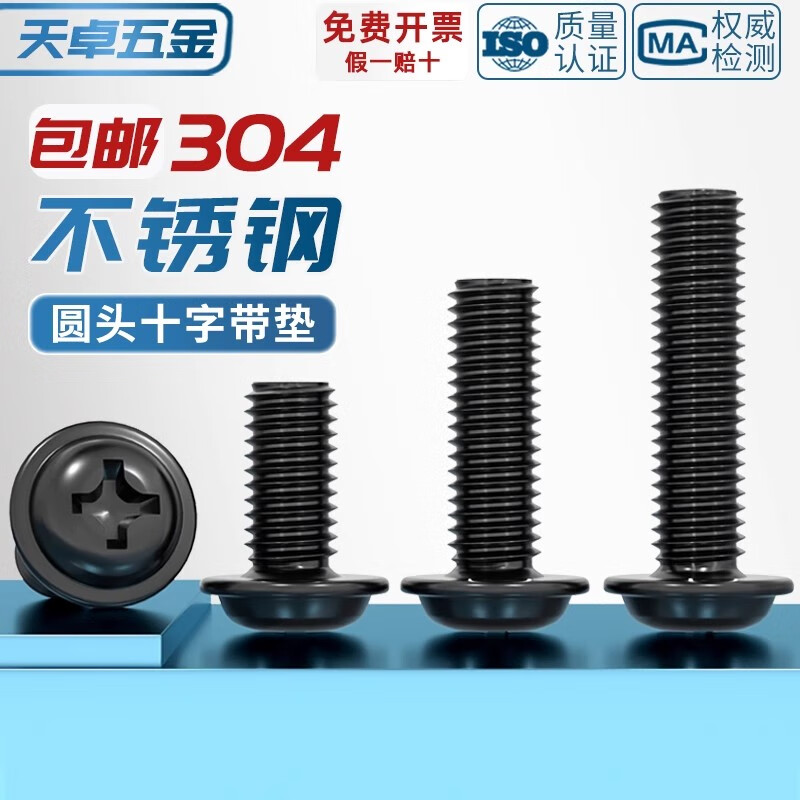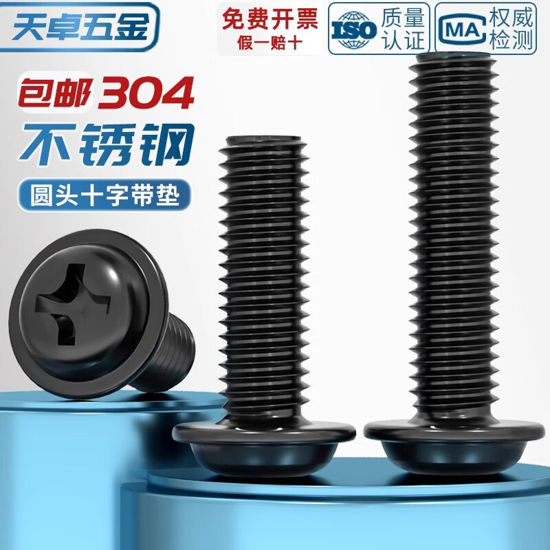 Tianzhuo Hardware PWM black 304 stainless steel cross round head pad screws black zinc plated pan head screws M2M2.5M3M4M5mm black 304-M4*10 20 pcs