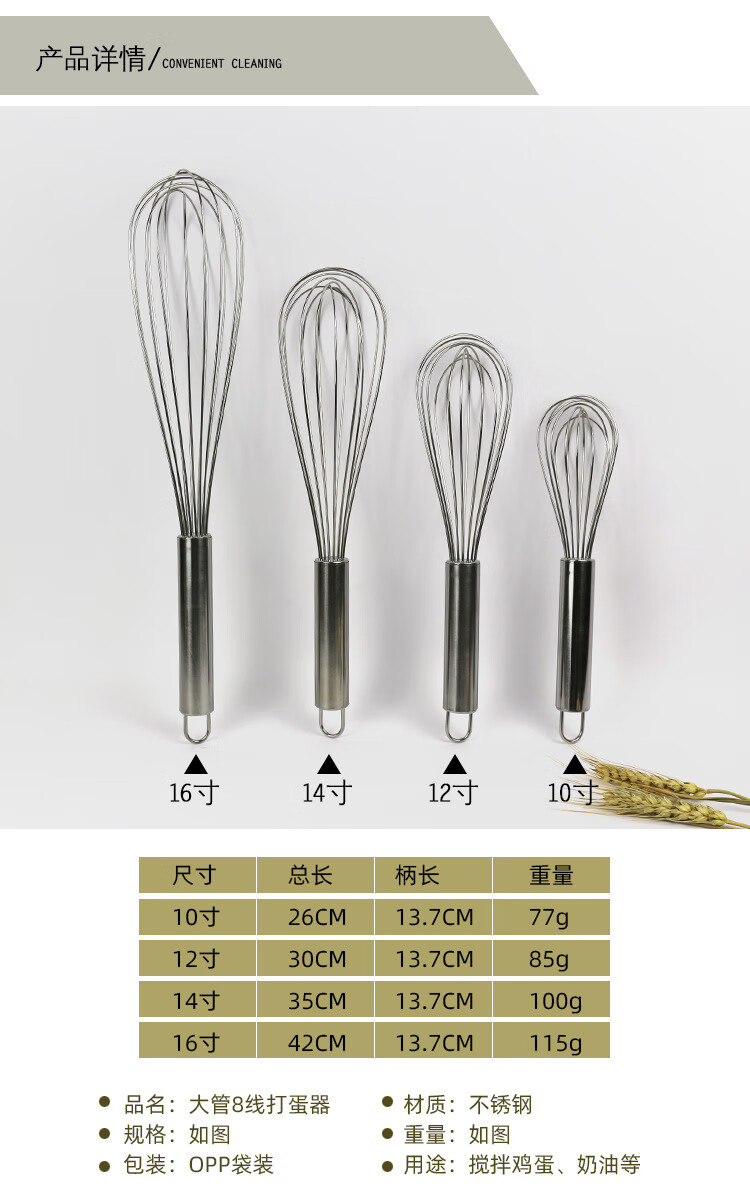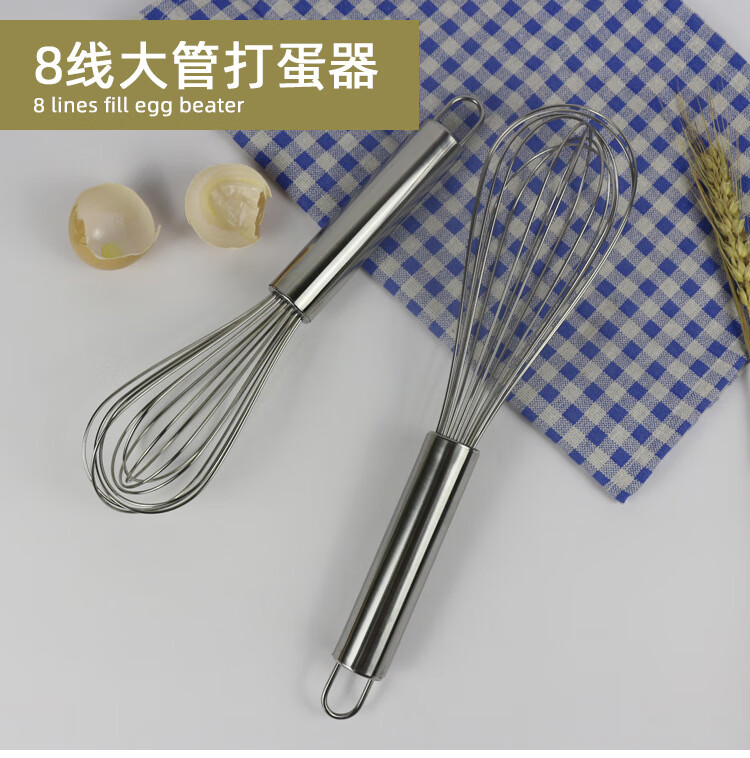 Preferred Egg Beater Stainless Steel Household Egg Cream Mixer Cake Baking Tool Manual Baker 10-inch Large Tube 8-Line Egg Beater *No. 114*