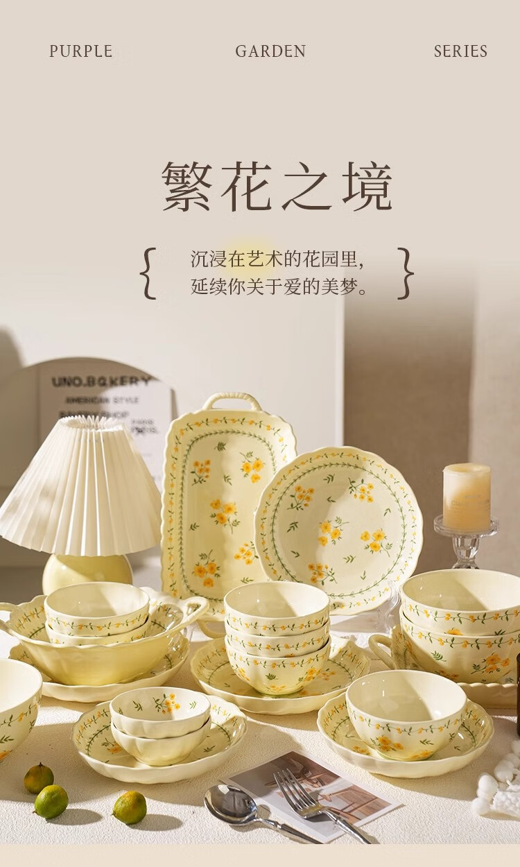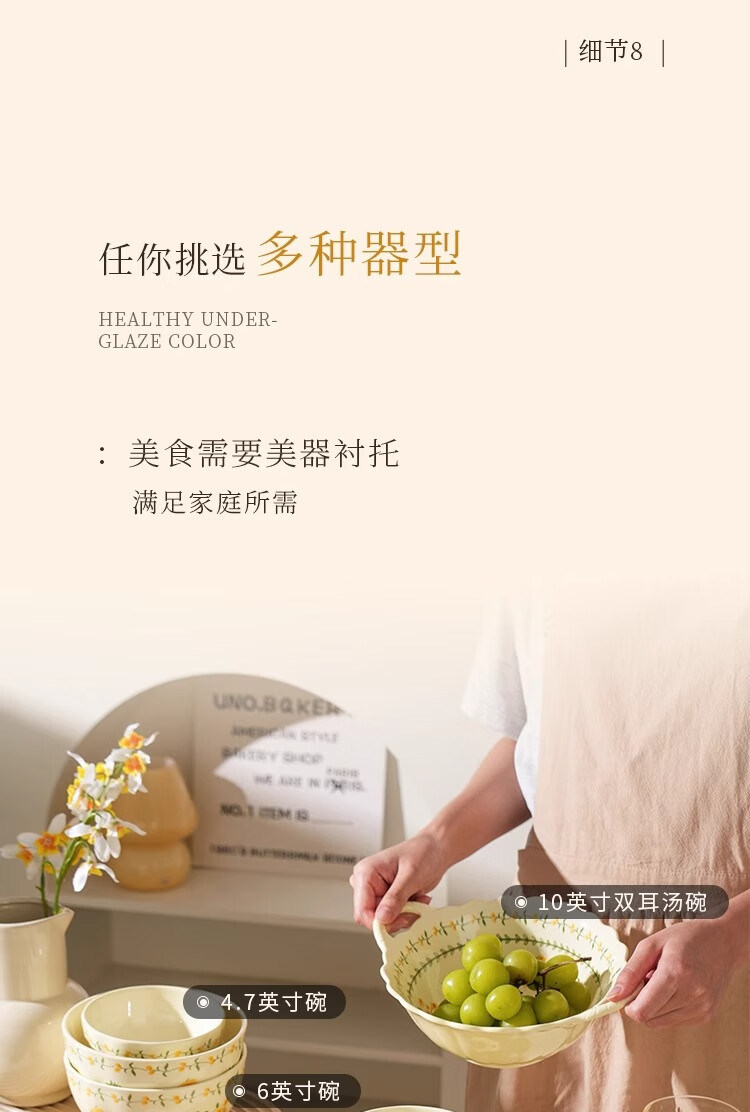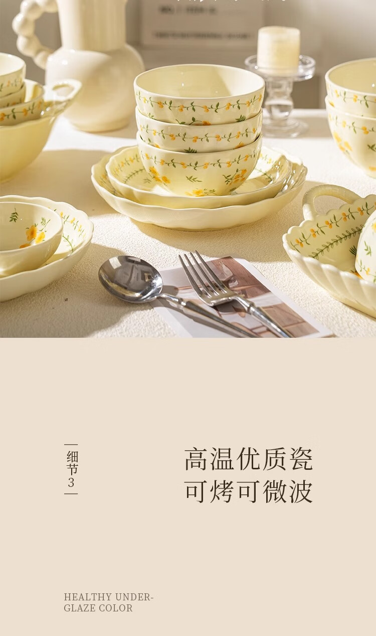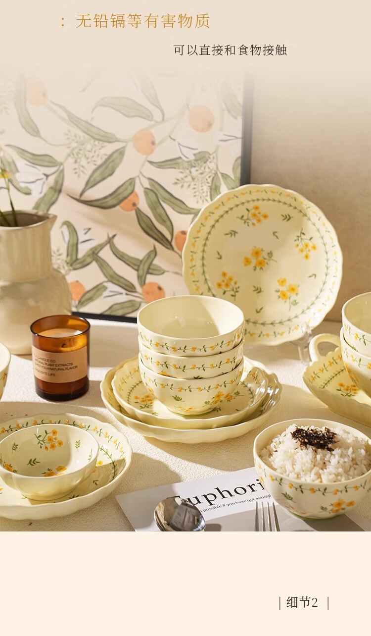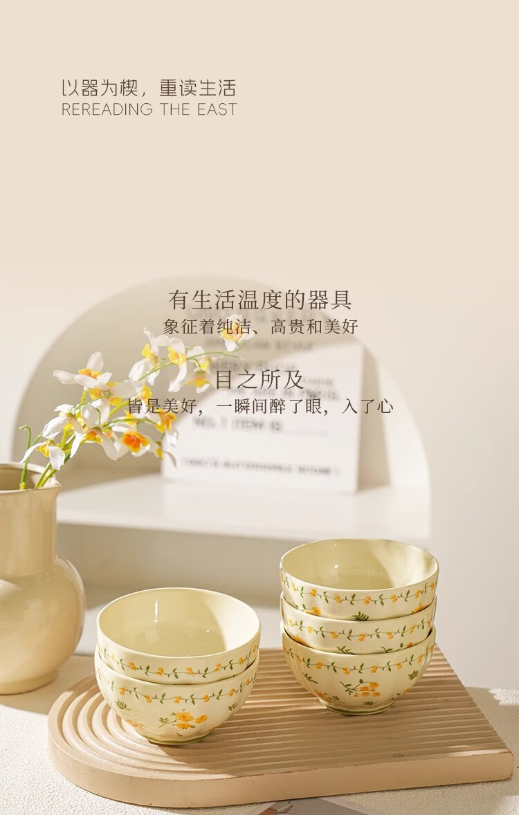Persson Small Fresh Underglaze Colored Bowl Set Ceramic Bowls and Tableware Especially Beautiful Ceramic Rice Bowls and Dish Plates 4.5-inch Lotus Bowl 4 Pack