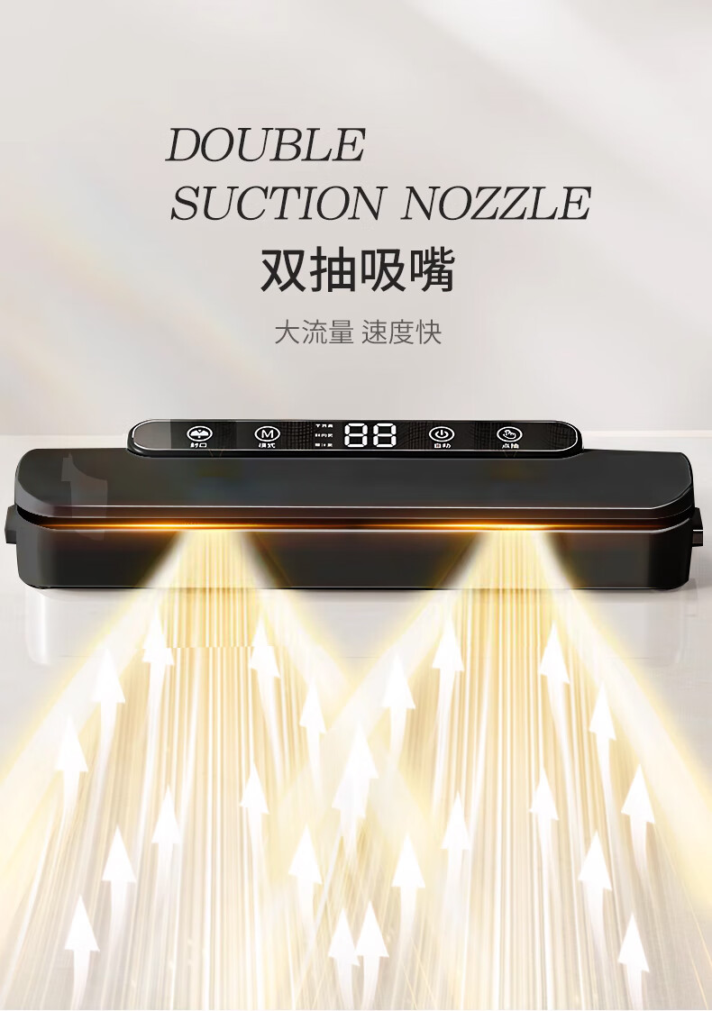 Baihaojia Vacuum Sealing Machine Home Commercial Wet and Dry Compression Sealing Machine Commercial Food Packaging Machine Recommended by the Store Manager Wet and Dry Universal Black 0.35cm