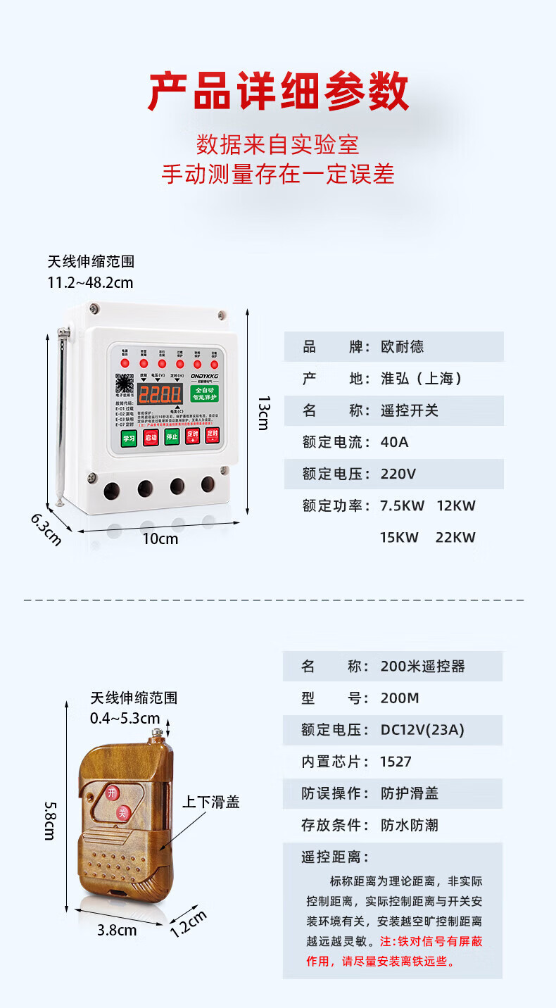 Shanghai Onaid single-phase motor submersible pump remote control leakage protection submersible pump 220V wireless remote control switch lightning protection intelligent remote control 220v single remote control 5 kilometers 22kw