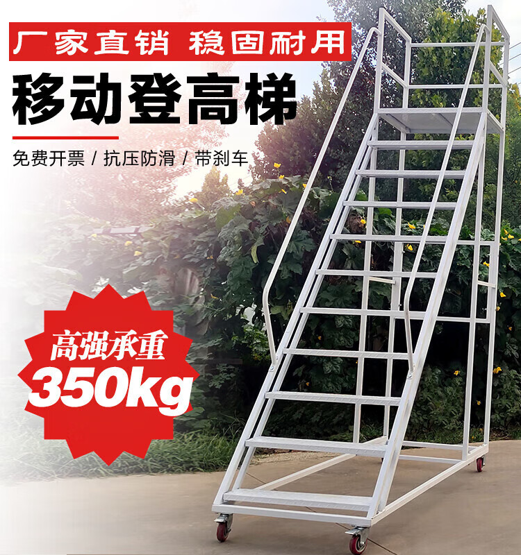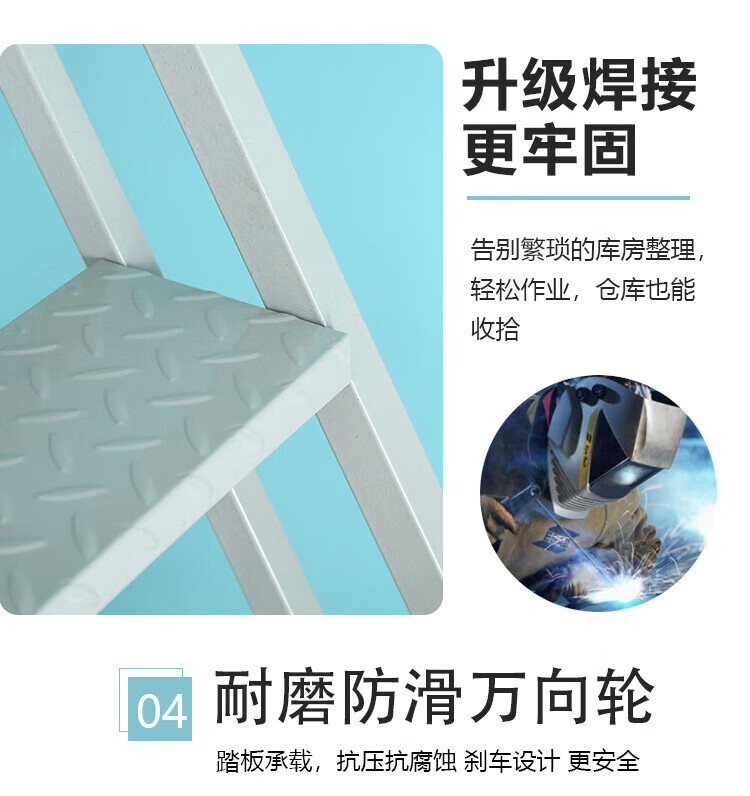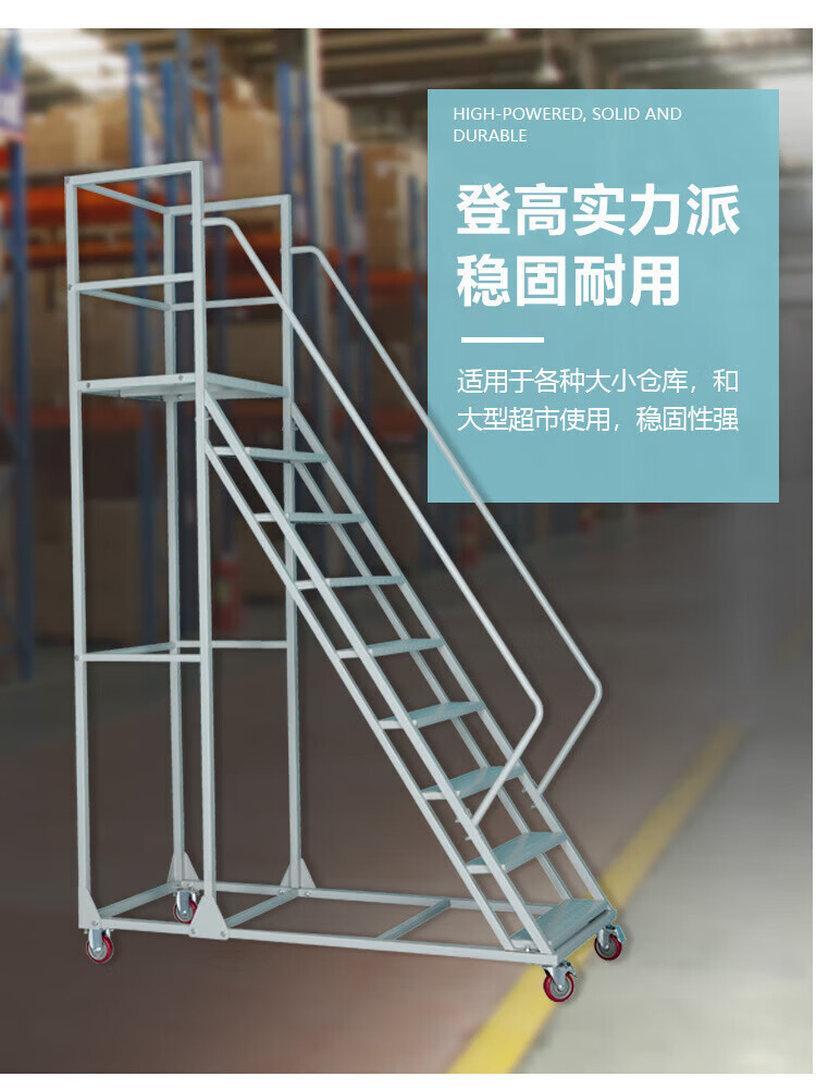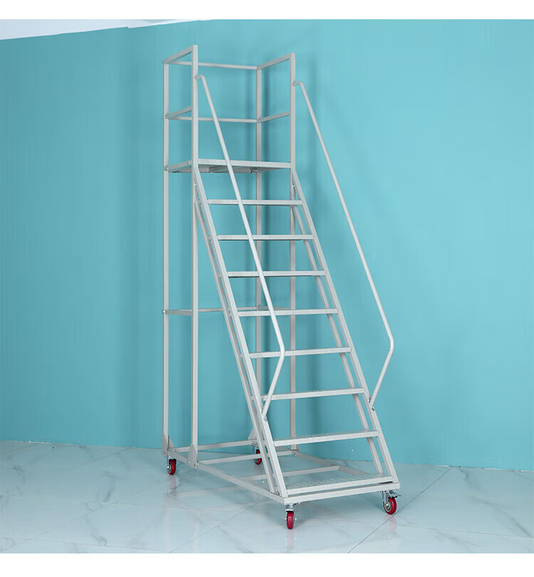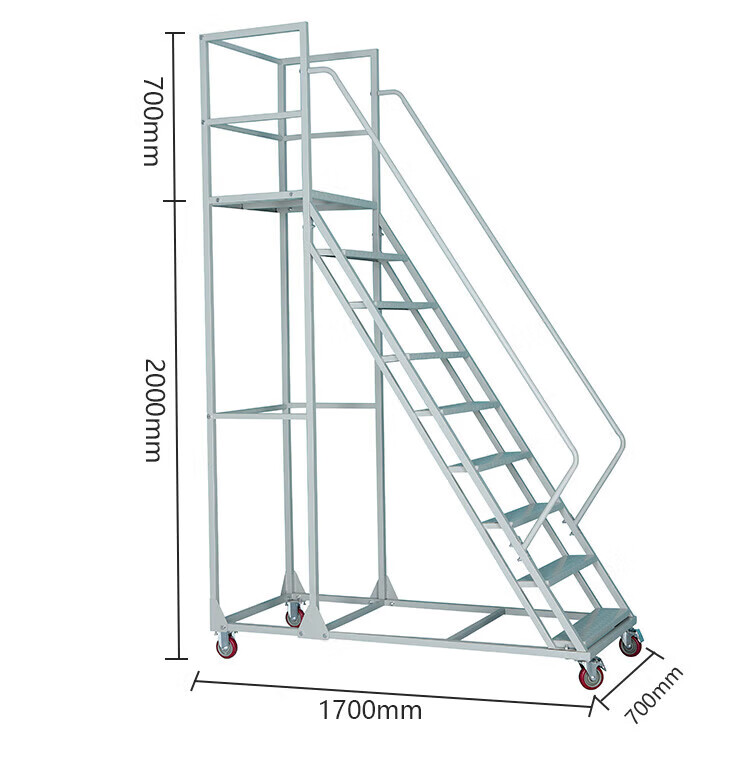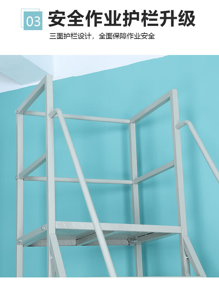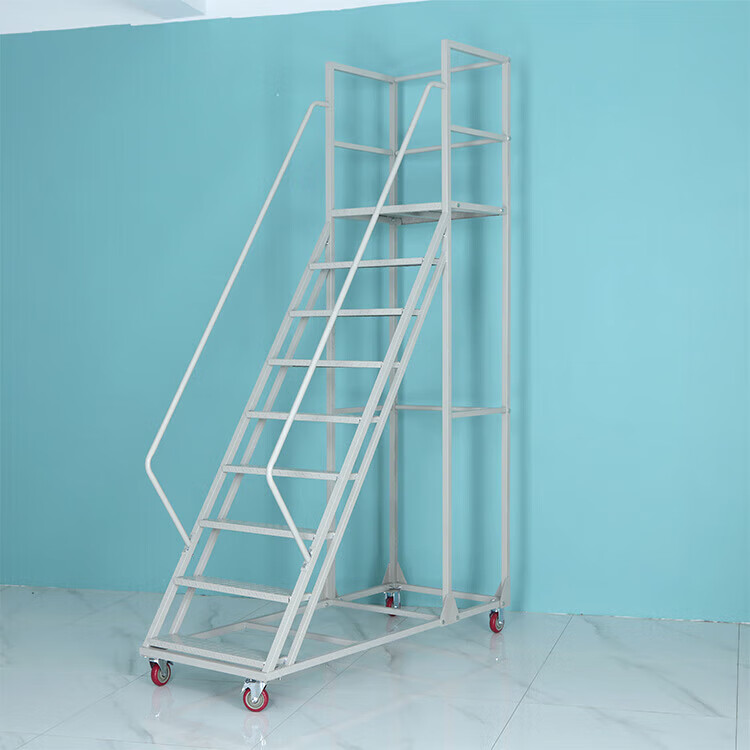 Climbing ladder movable platform warehouse loading tally climbing vehicle supermarket warehouse thickened wheeled pick-up ladder platform to the ground 3.0 meters gray white