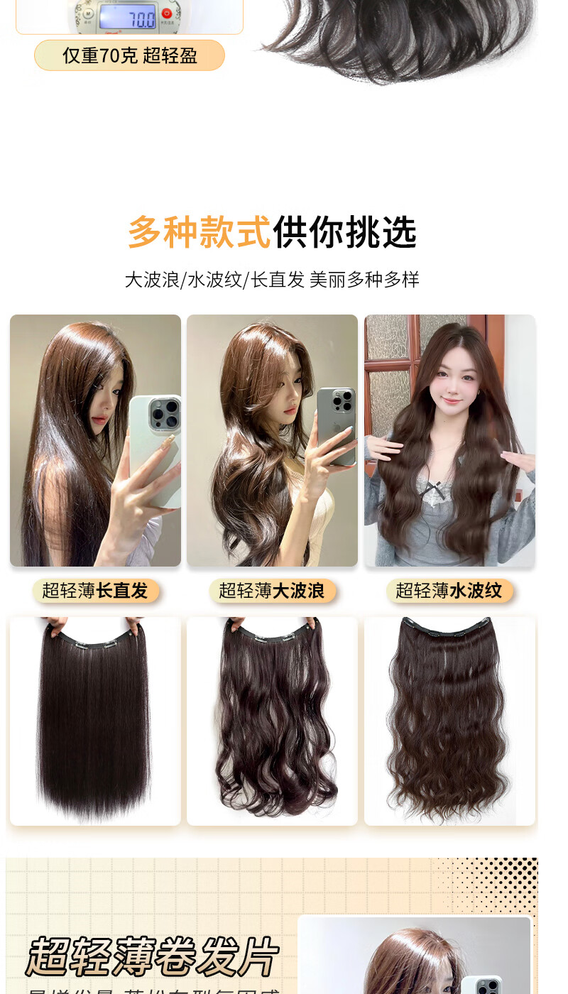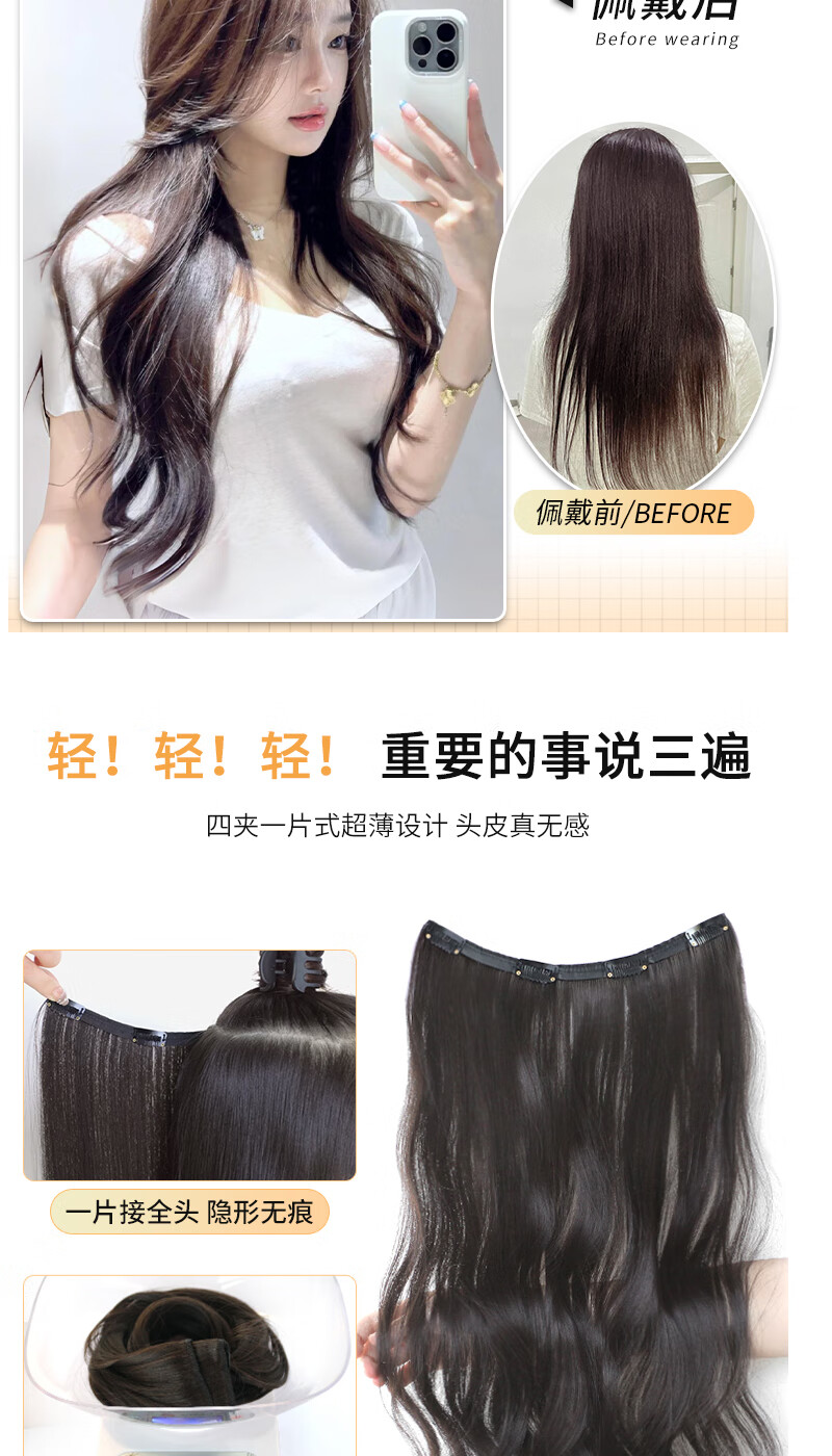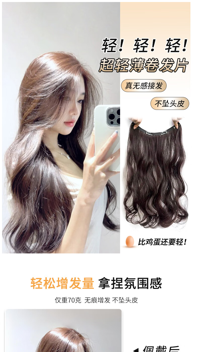 Jingxi self-operated - special brand ultra-thin long curly hair wig piece on the top of the head to re-hair volume artifact fluffy one-piece invisible traceless hair extensions four-card thin hair extensions brown black big waves