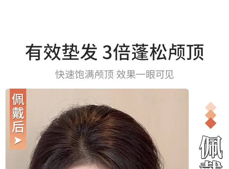Jingxi self-operated - special brand top hair piece, simulated hair, high skull artifact, hair volume increase, fluffy hair pad, invisible traceless corn silk hair pad, double fluffy hair pad - 10CM brown black