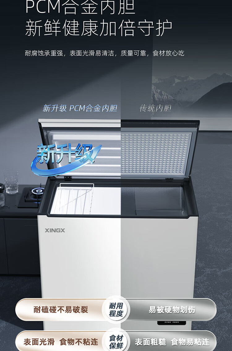 Xingx (XINGX) minus 30 degrees freezer household small no need defrost freezer top door horizontal refrigerator large capacity single temperature refrigeration freezer first class energy efficiency energy saving fresh cabinet 240L no need to defrost cryogenic -30