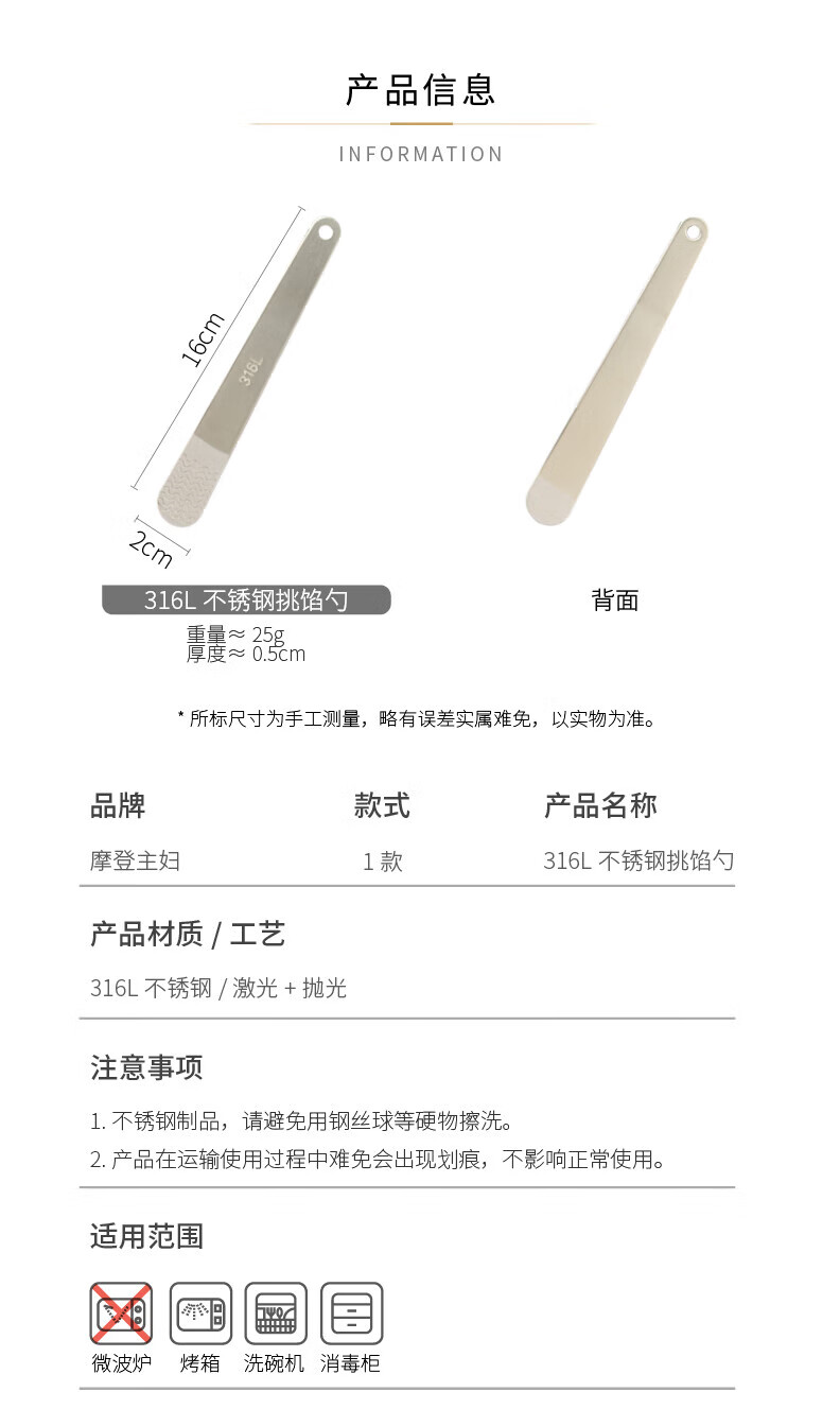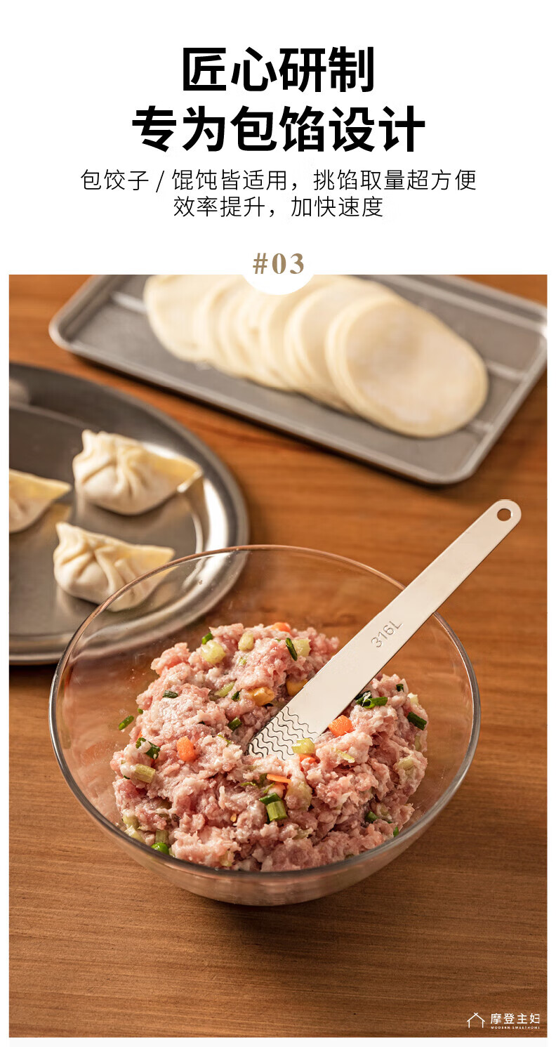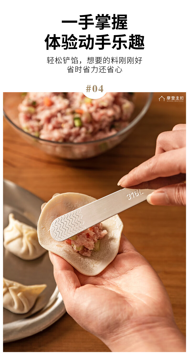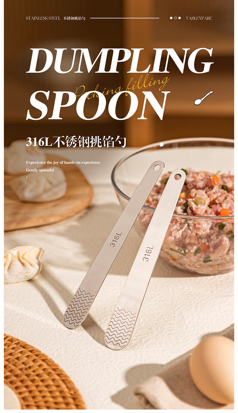 Modern Housewife 316L Stainless Steel Dumpling Spoon Household Wonton Making Tool Flat Ruler Stuffing Spoon Magic 1 Pack 316L Stuffing Spoon 16*2cm