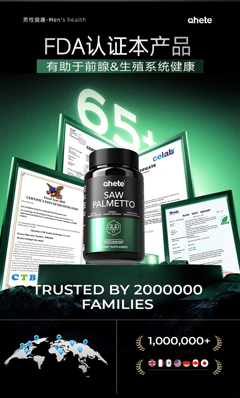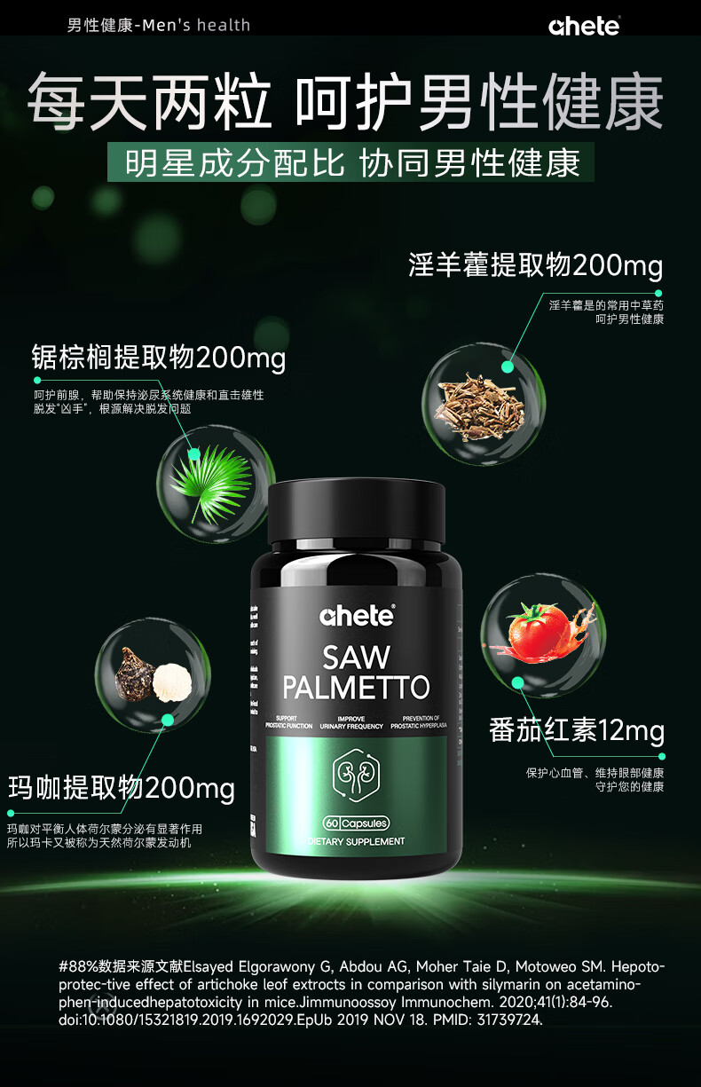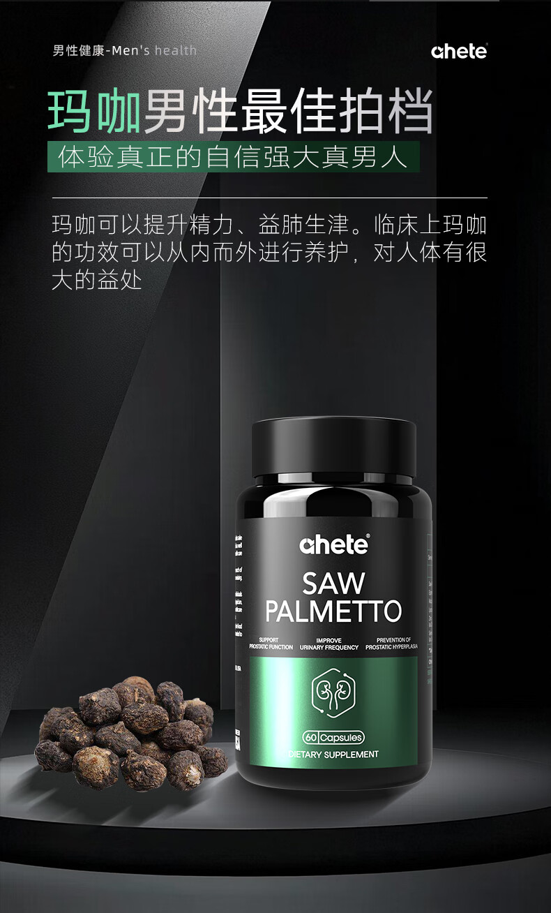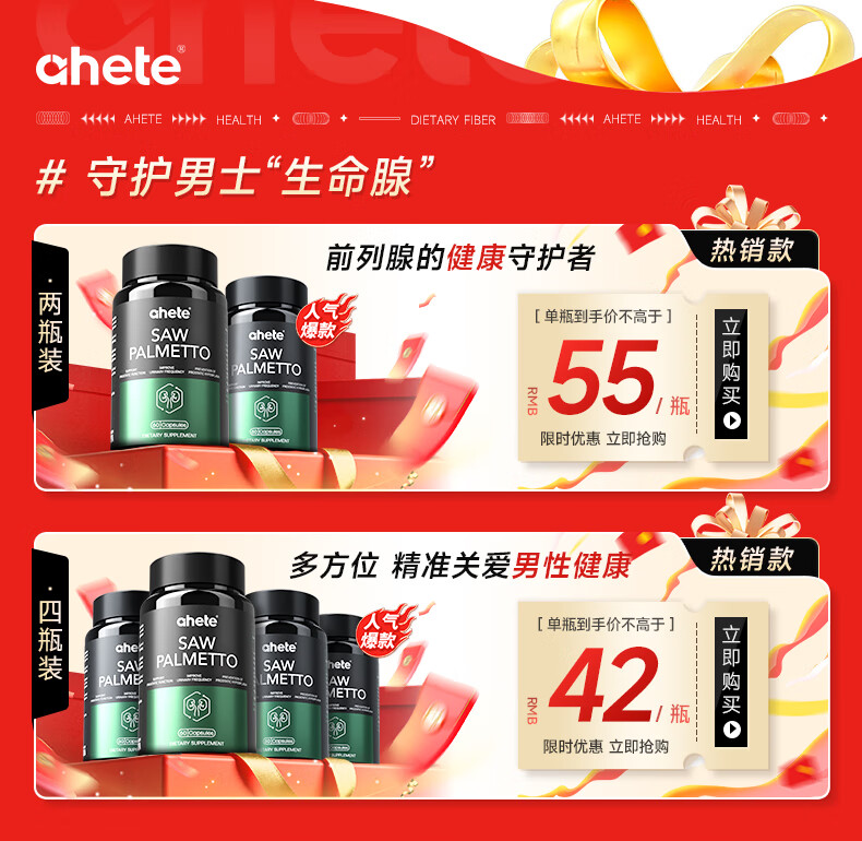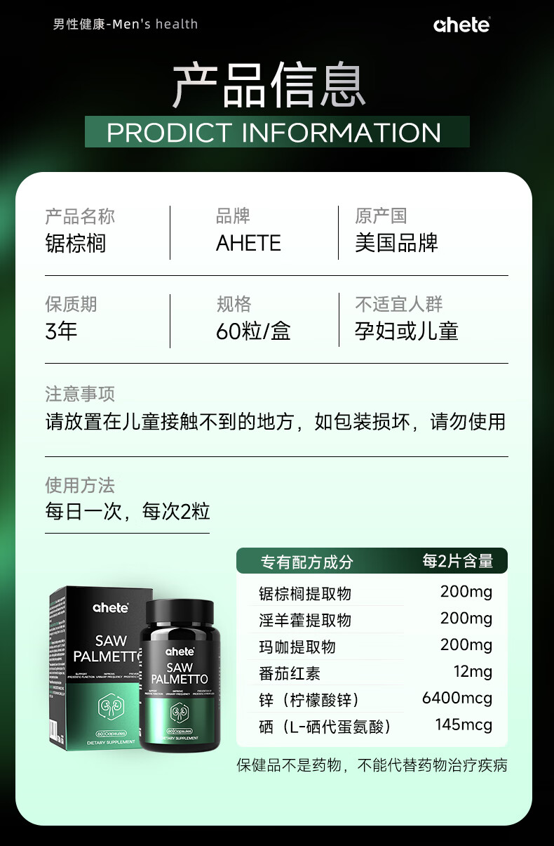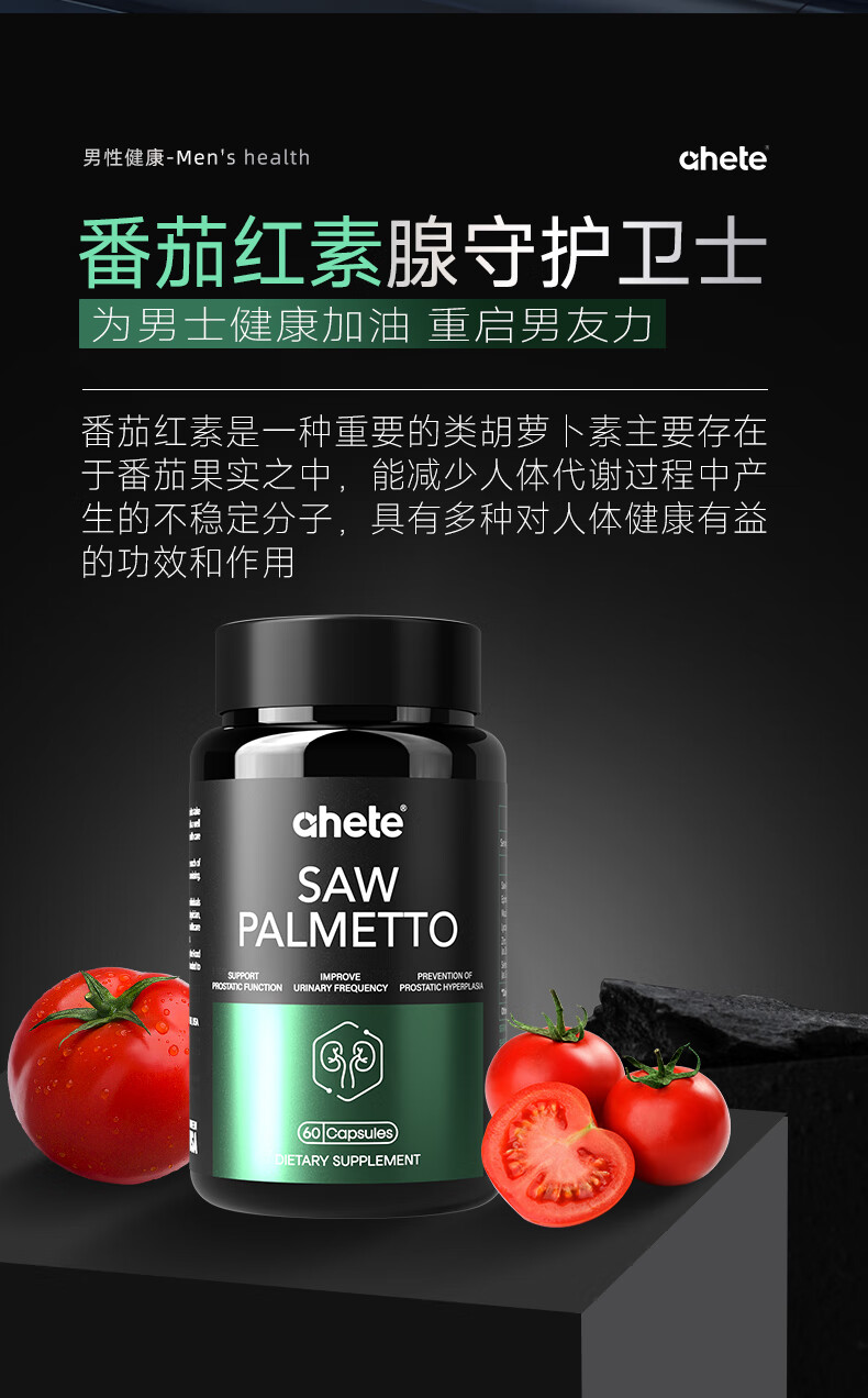 Ahete's original imported saw palmetto lycopene capsules, men's prostate health, Xiongfeng tablets, strong energy lycopene, two boxes of periodic saw palmetto capsules 60 capsules/box*2