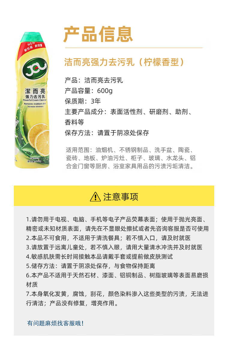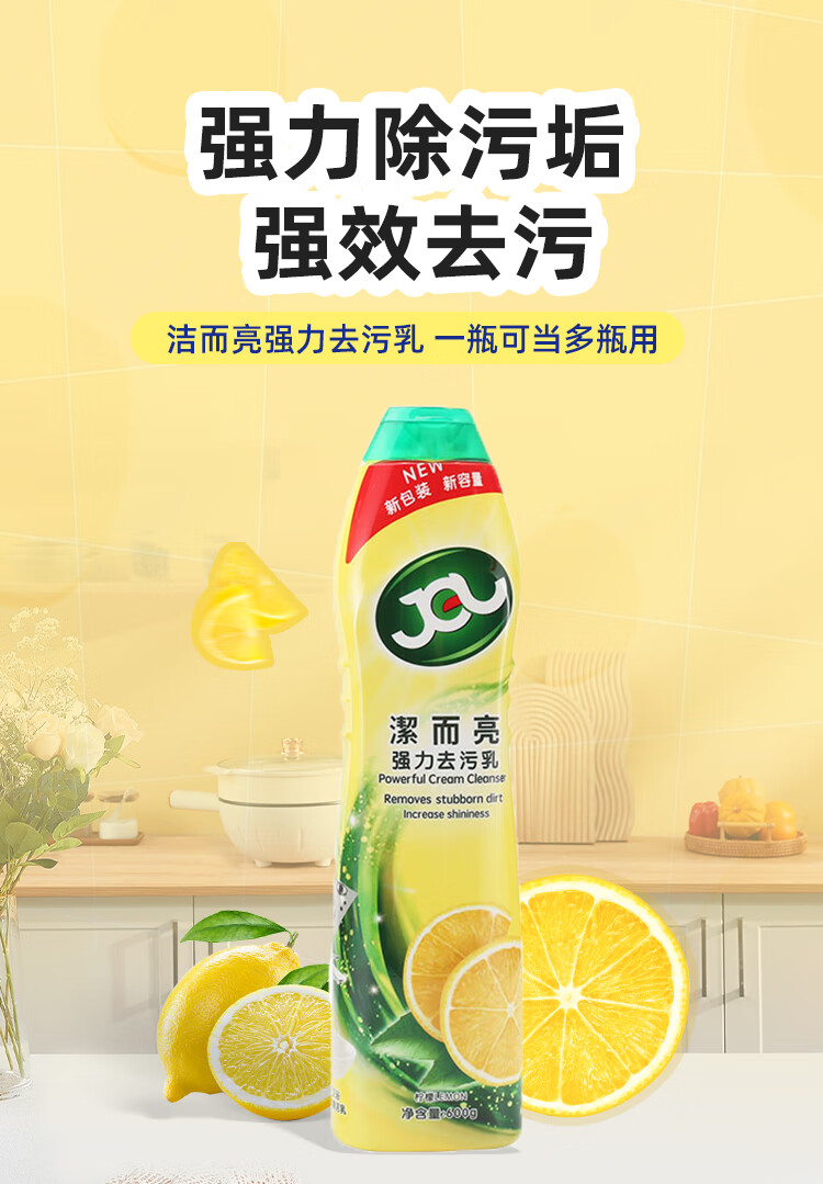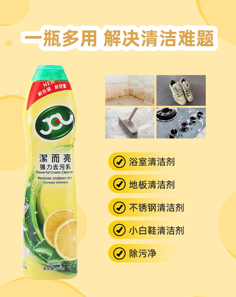 Jie Liang Powerful Cleaning Milk Housekeeping Stainless Steel Tile Cleaner Powerful Descaling Kitchen Stainless Steel Cleaner Lemon Scent 600g Jie Liang Household Multifunctional Cleaner Lemon Scent 600g*1 bottle