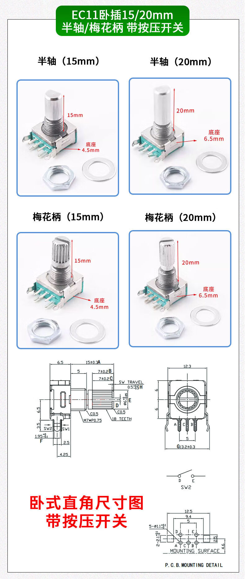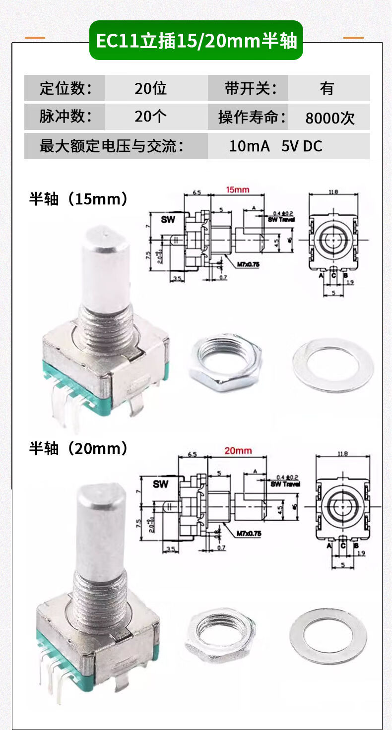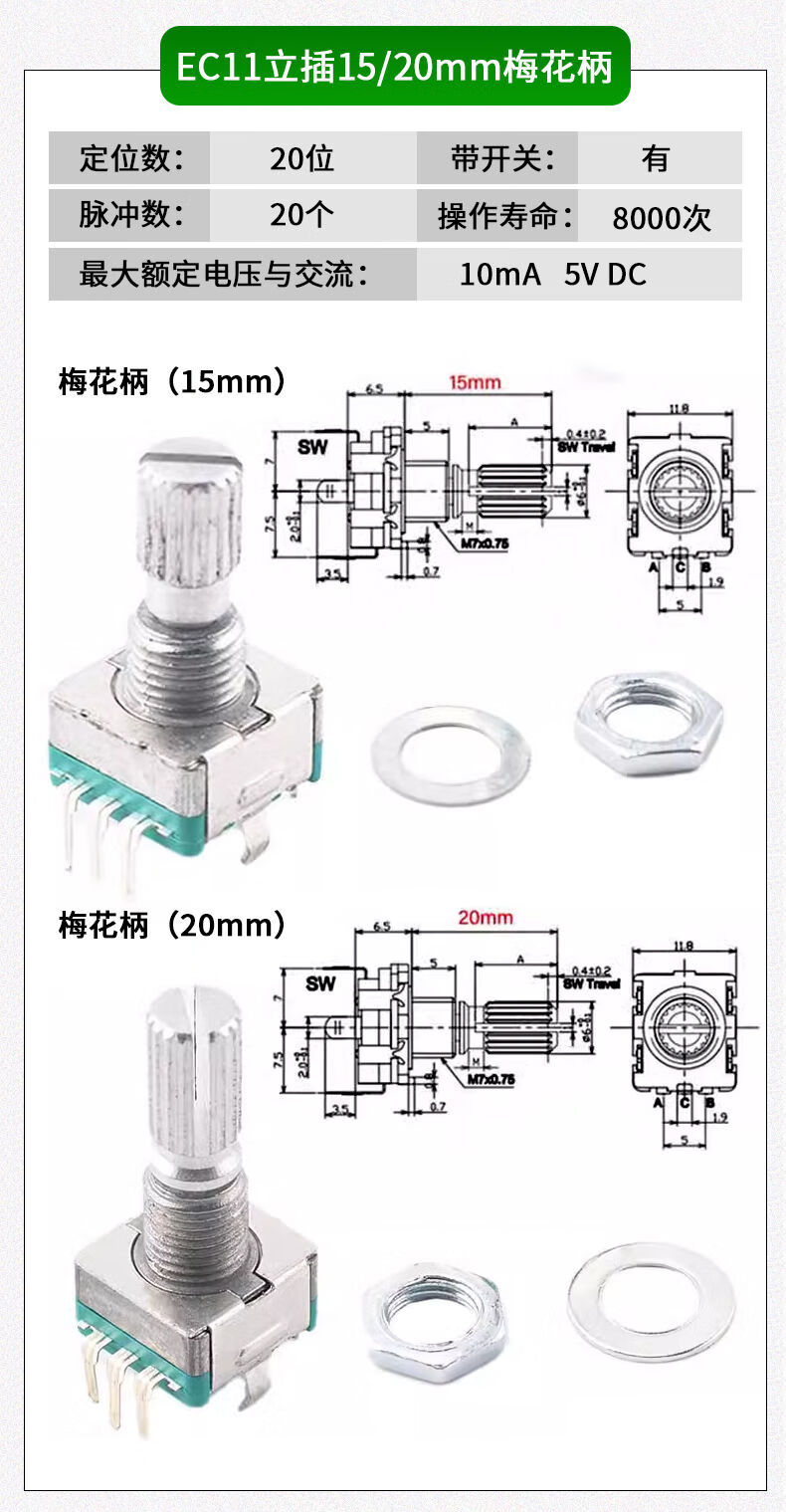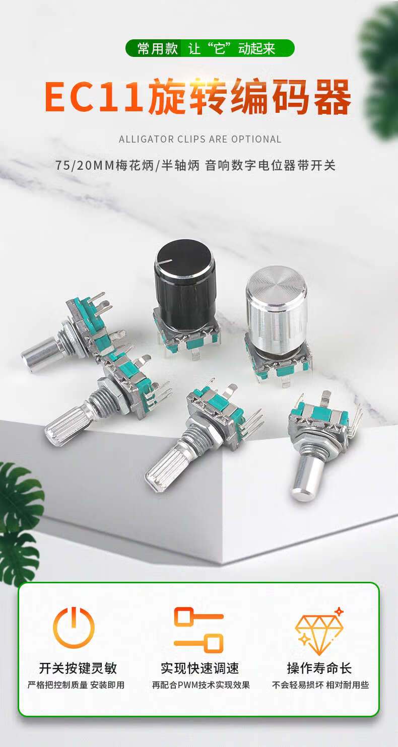 EC11 rotary encoder knob 15/20mm Meihua Bing/half-axis audio speaker digital potentiometer with switch metal black (5 pieces)