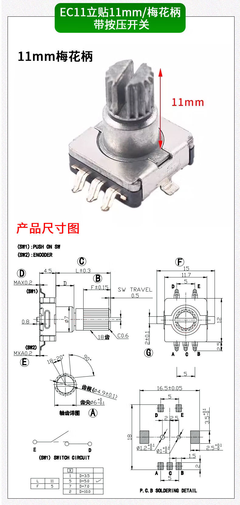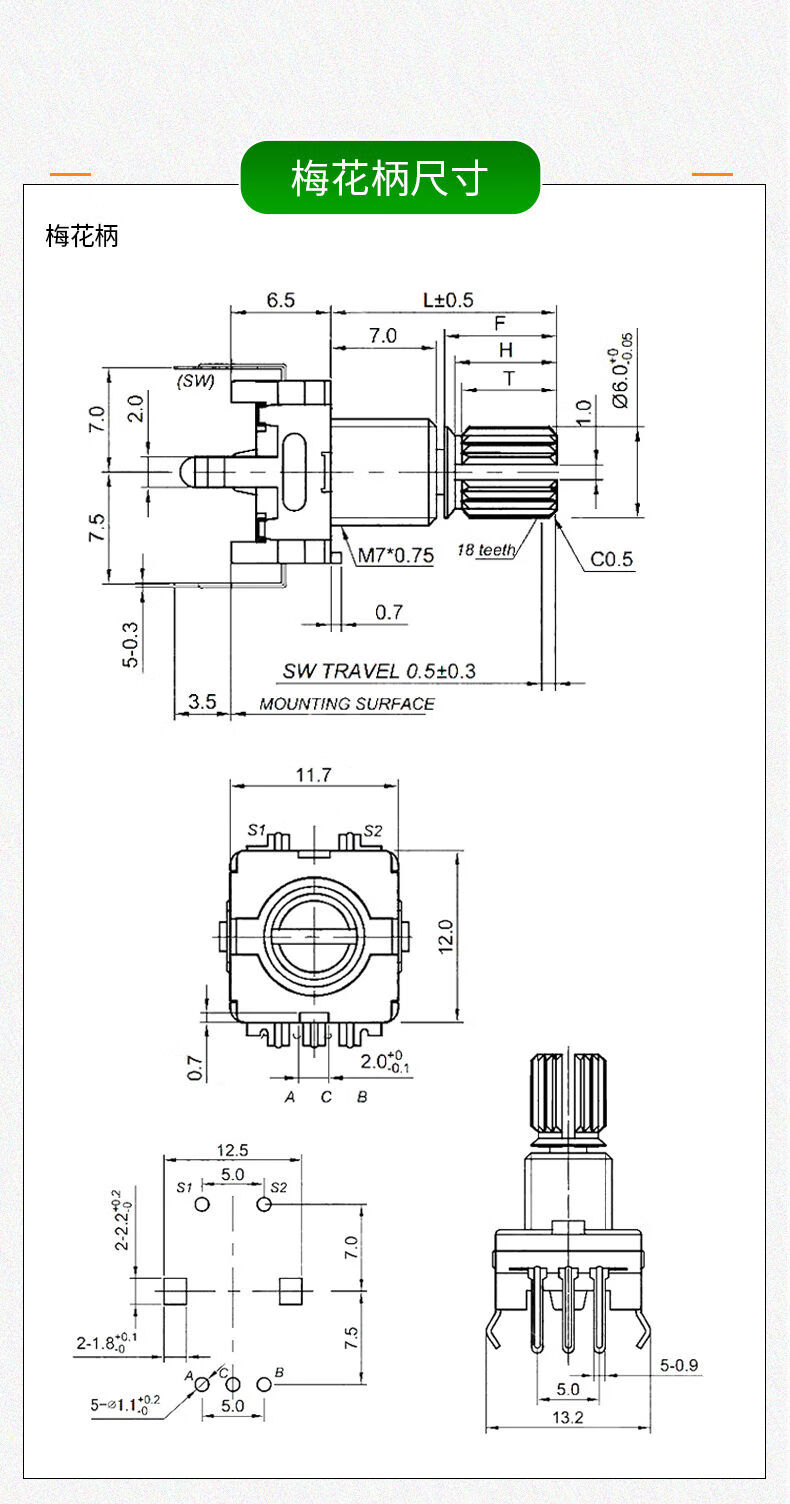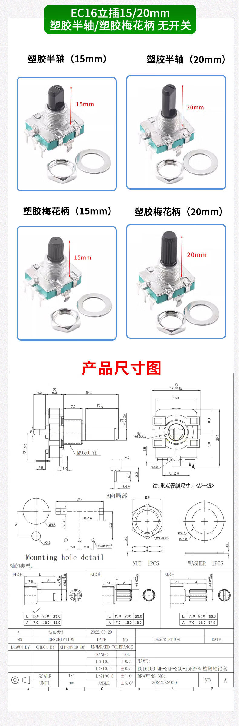 EC11 rotary encoder knob 15/20mm Meihua Bing/half-axis audio speaker digital potentiometer with switch metal black (5 pieces)