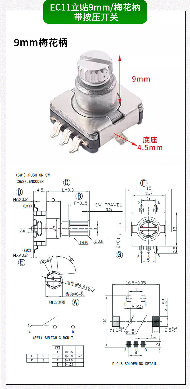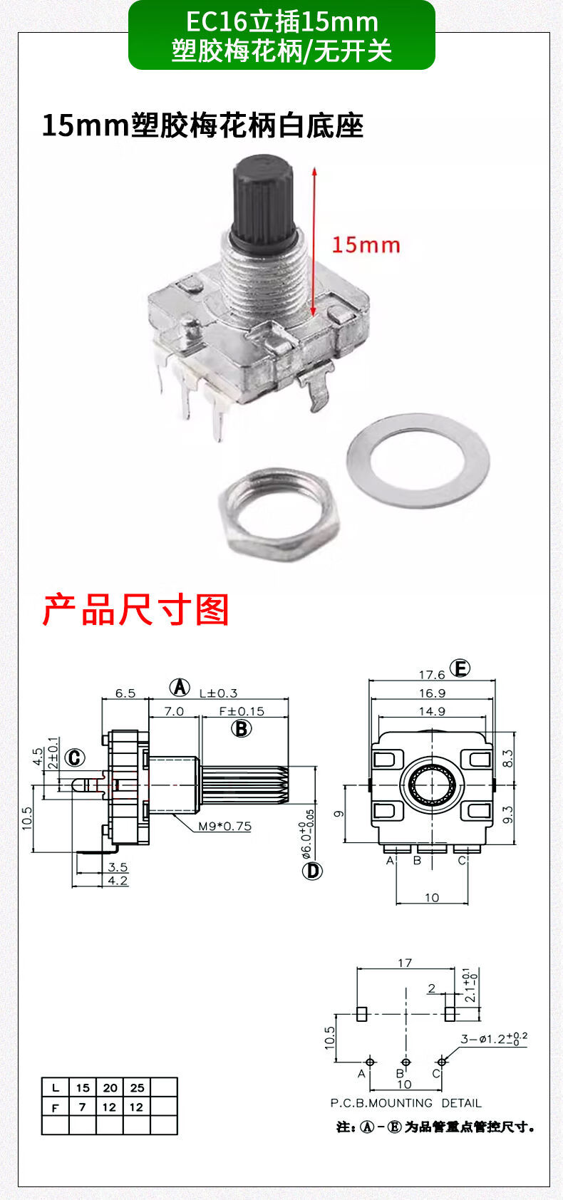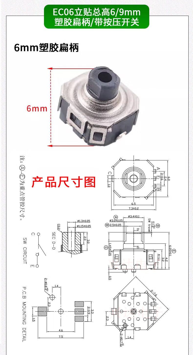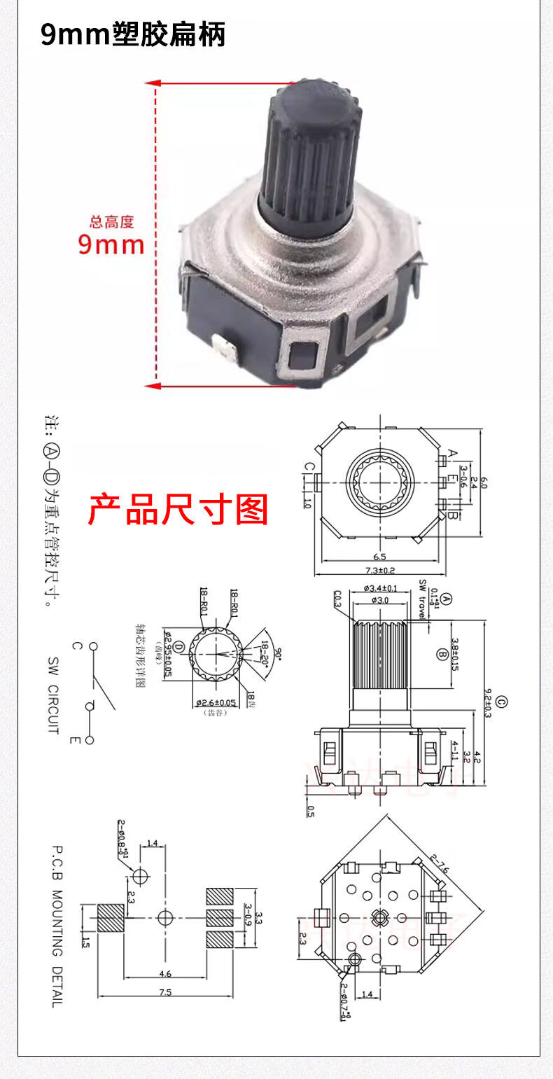 EC11 rotary encoder knob 15/20mm Meihua Bing/half-axis audio speaker digital potentiometer with switch metal black (5 pieces)
