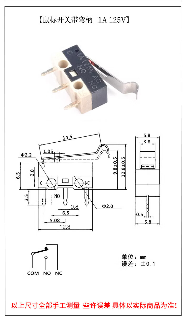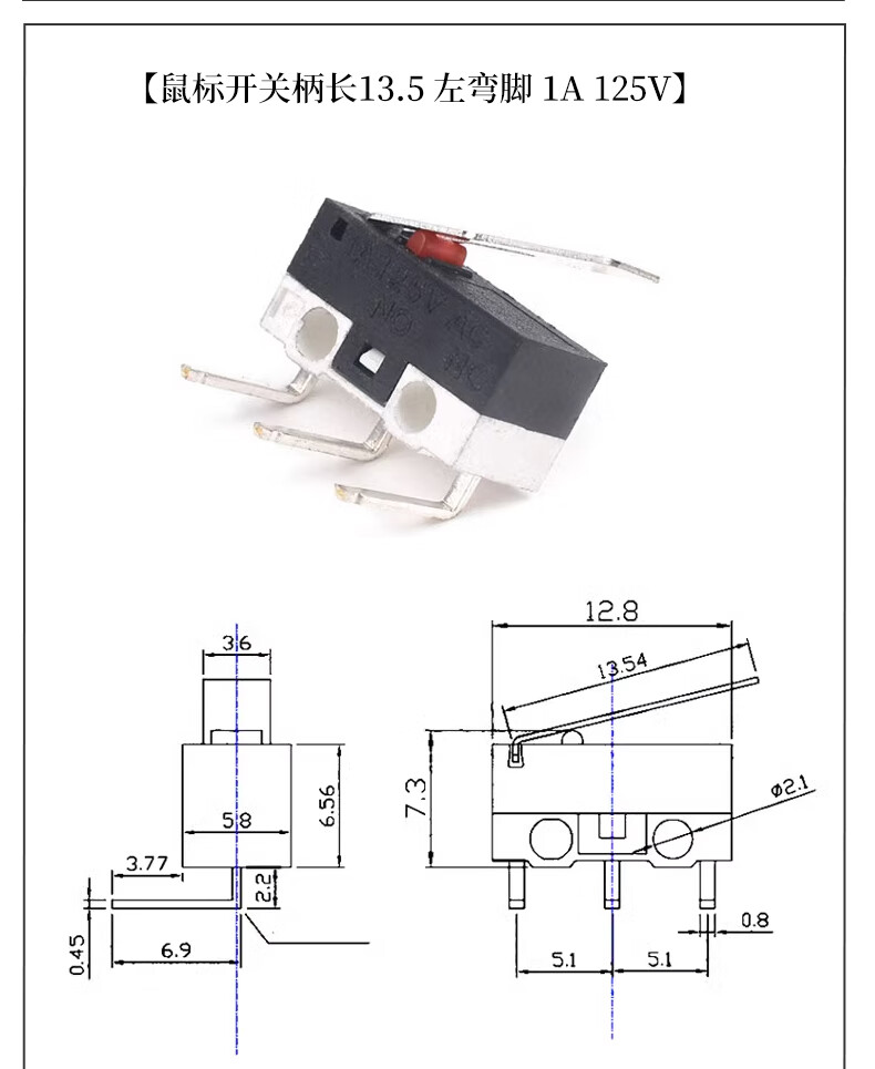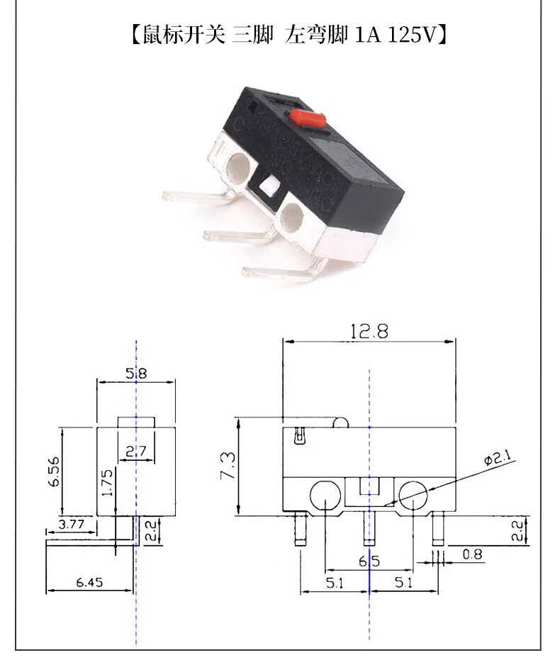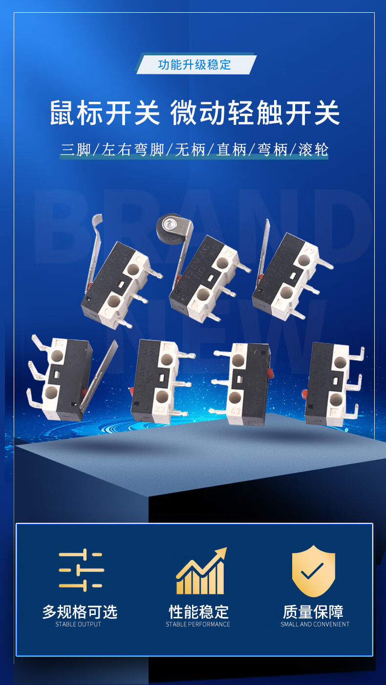 Mouse switch micro touch switch three-legged handleless straight handle curved handle roller left and right curved feet 1A small button switch D2FC-F-7N mouse micro switch suitable for some Logitech mouse types