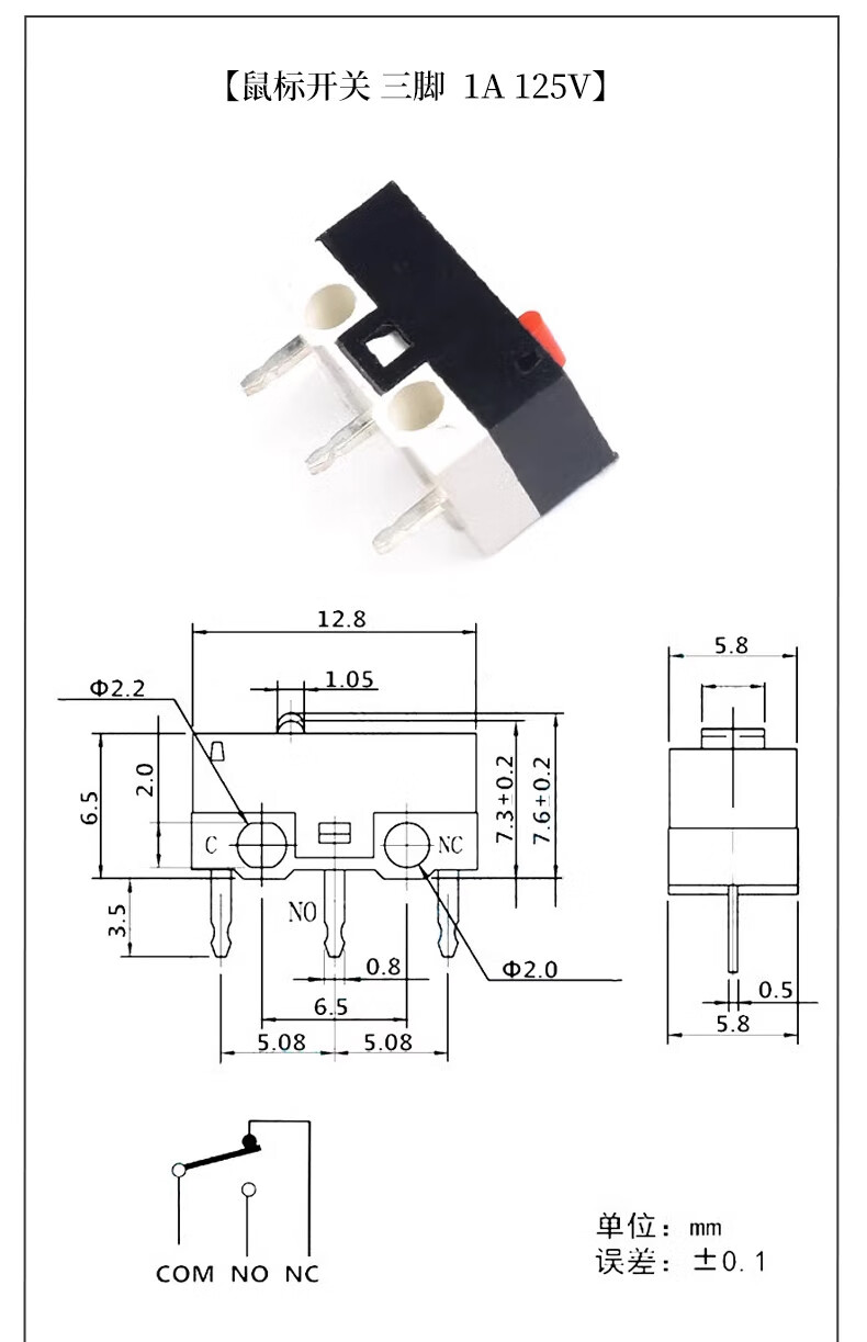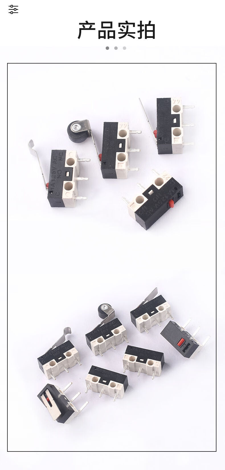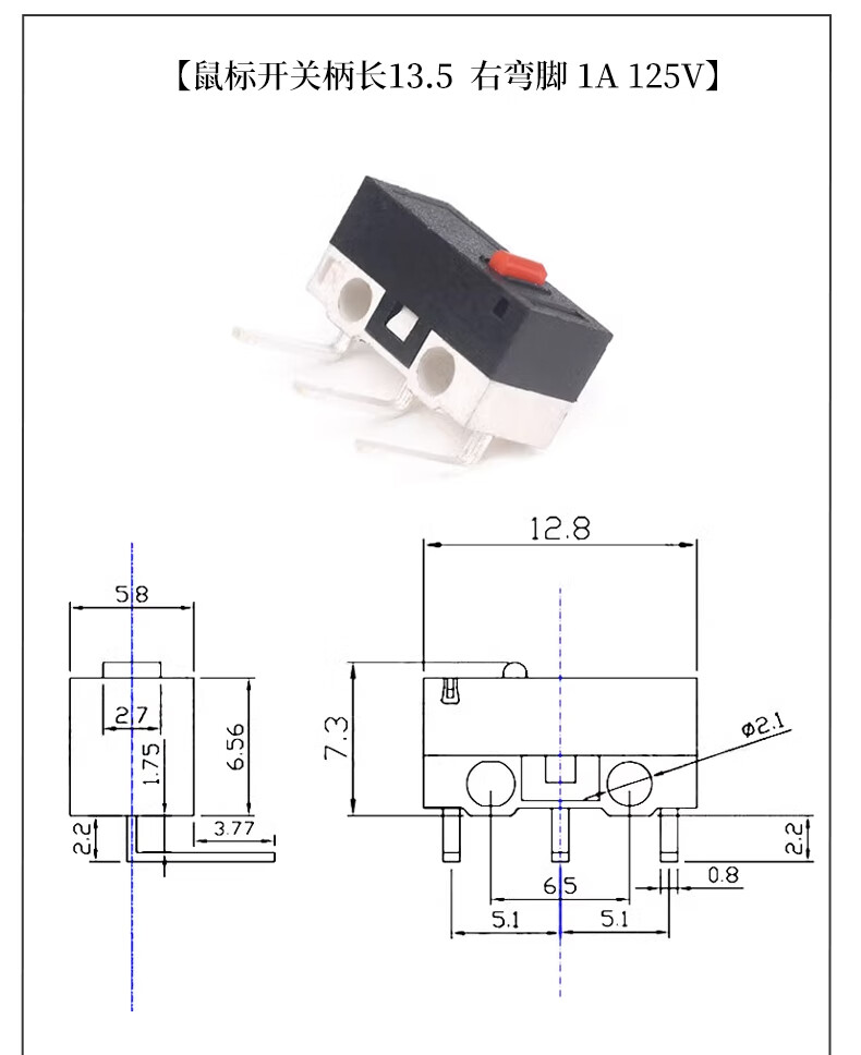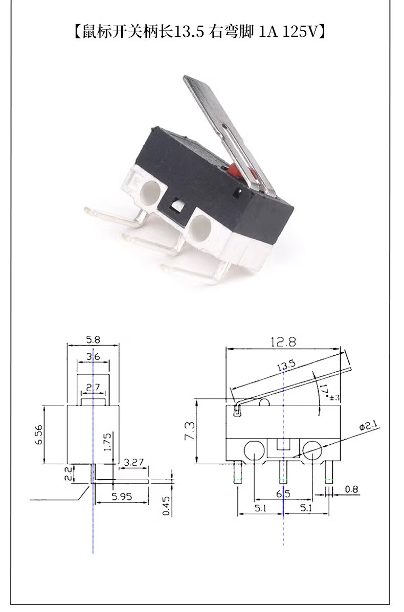 Mouse switch micro touch switch three-legged handleless straight handle curved handle roller left and right curved feet 1A small button switch D2FC-F-7N mouse micro switch suitable for some Logitech mouse types