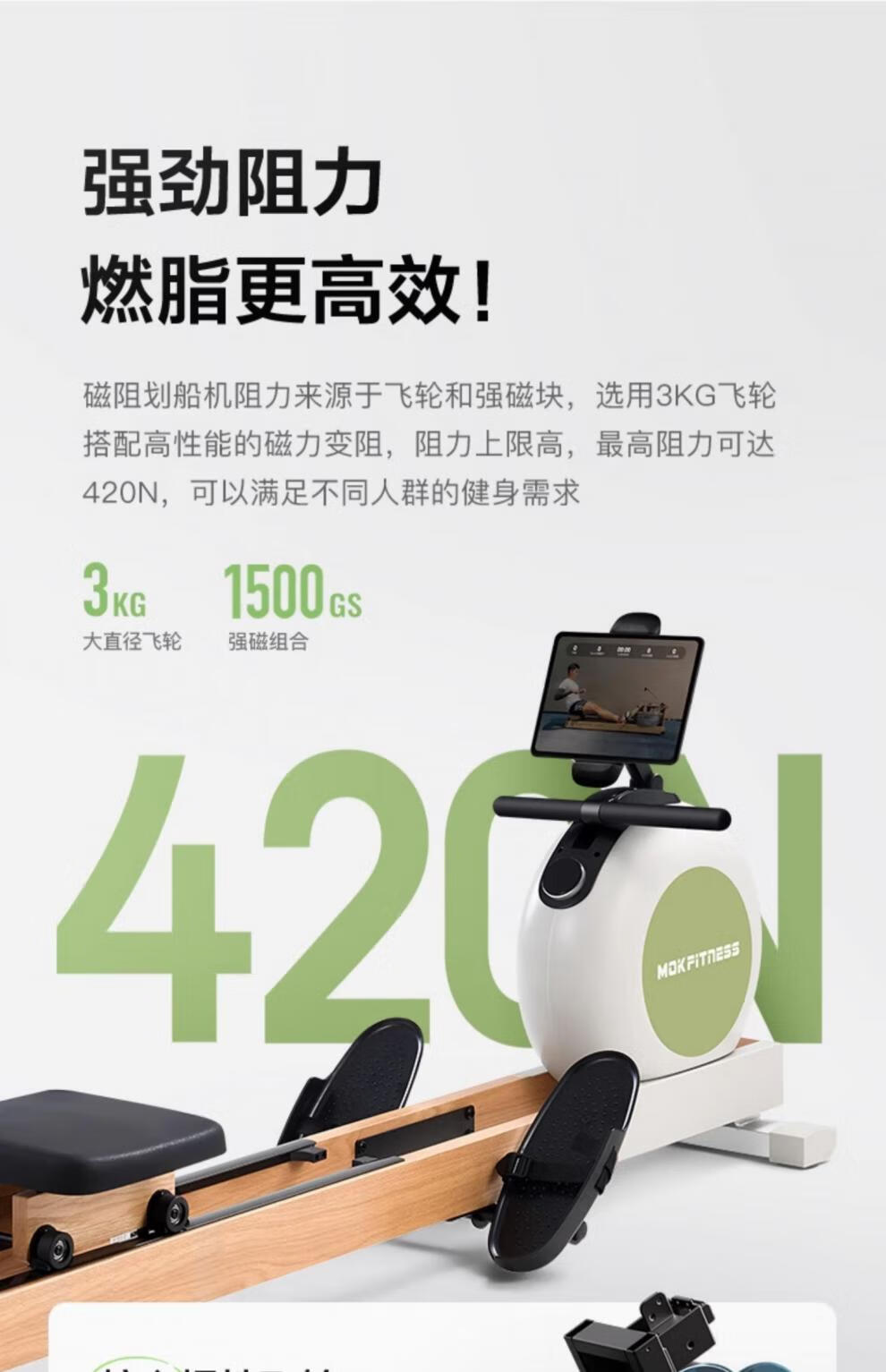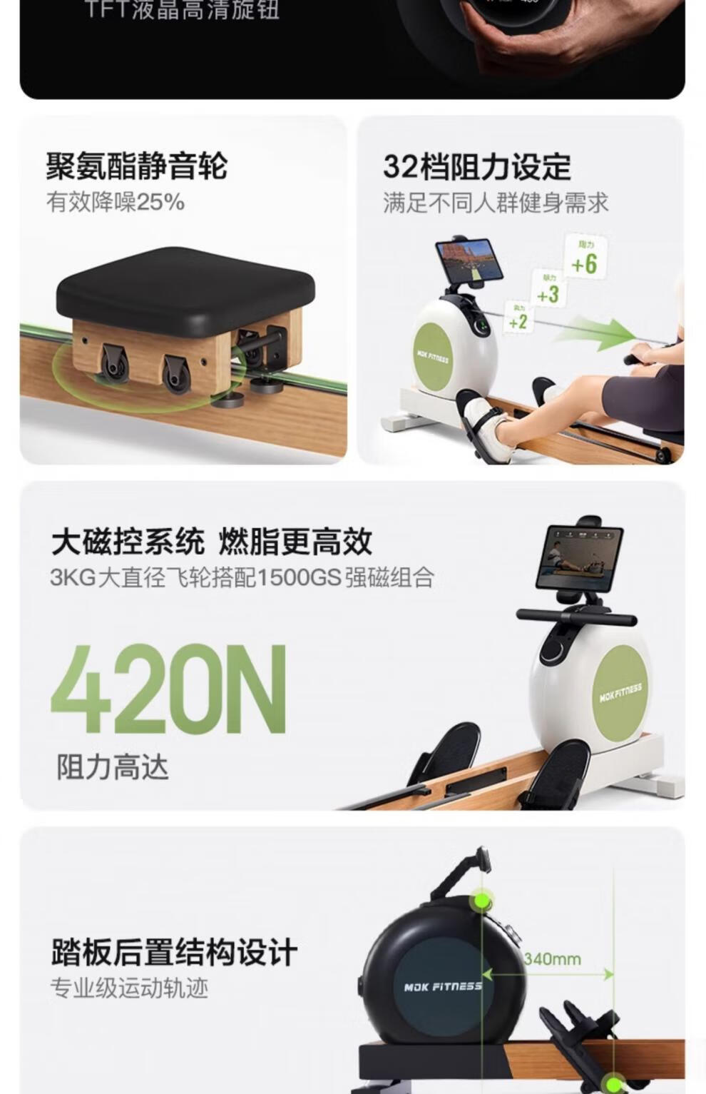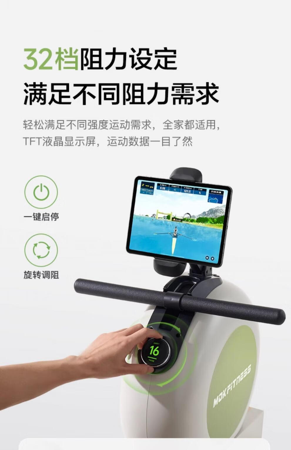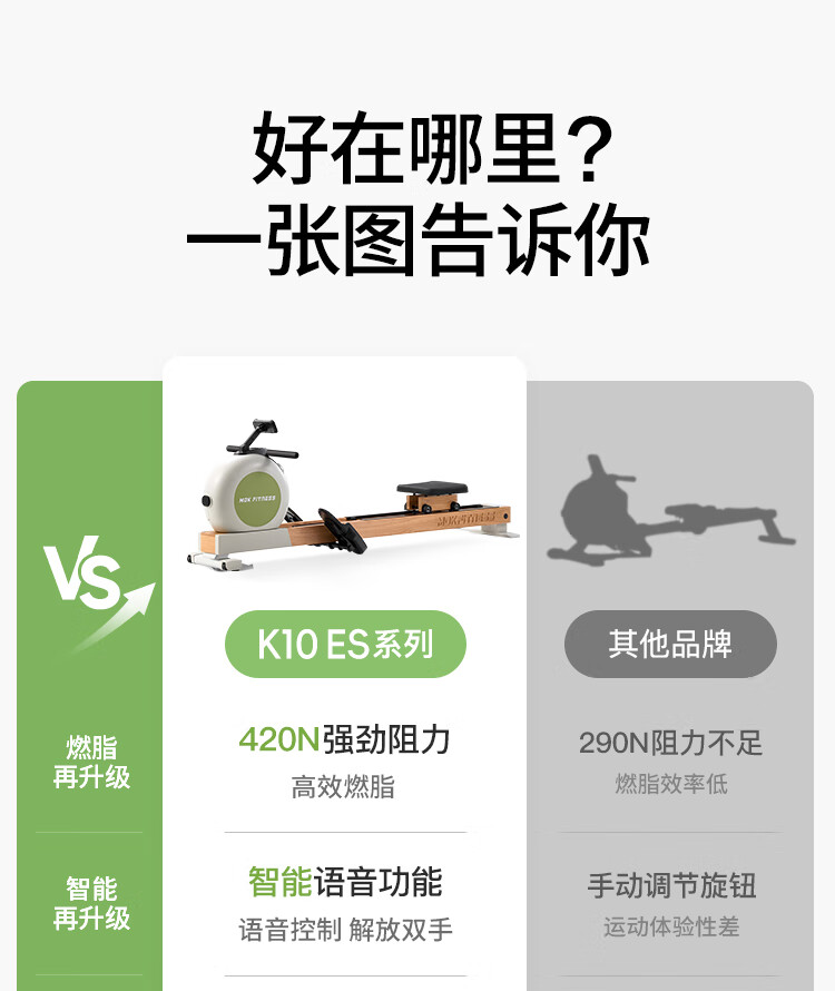 MOKFITNESS-K10 magnetic resistance rowing machine home smart folding rowing machine fitness equipment K10ES standard version (wasabi green)