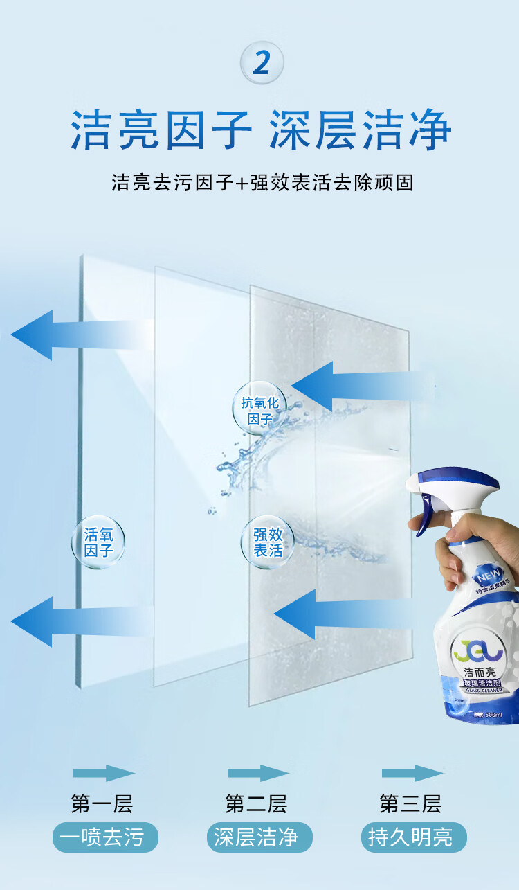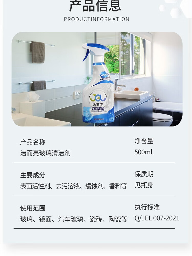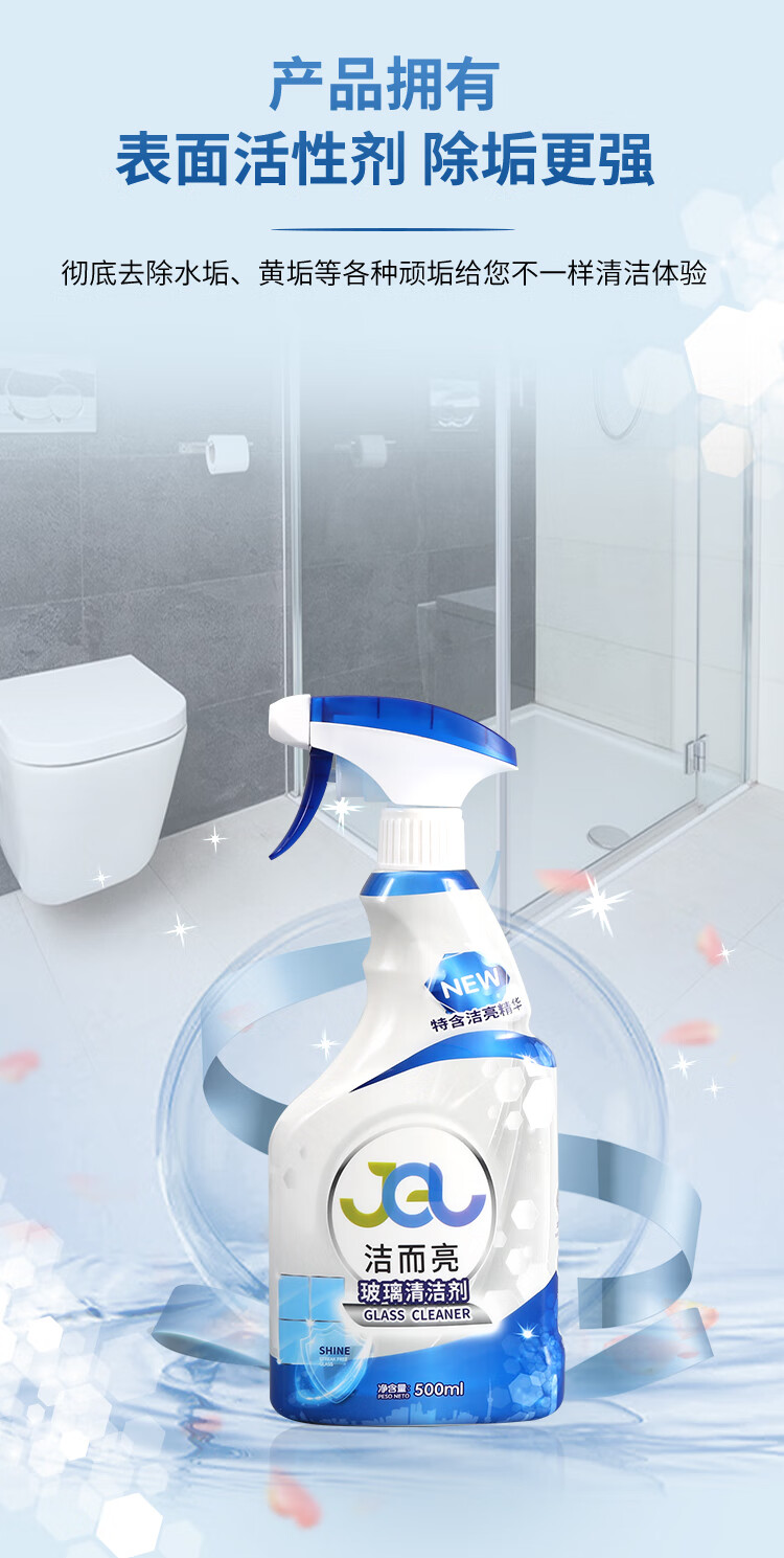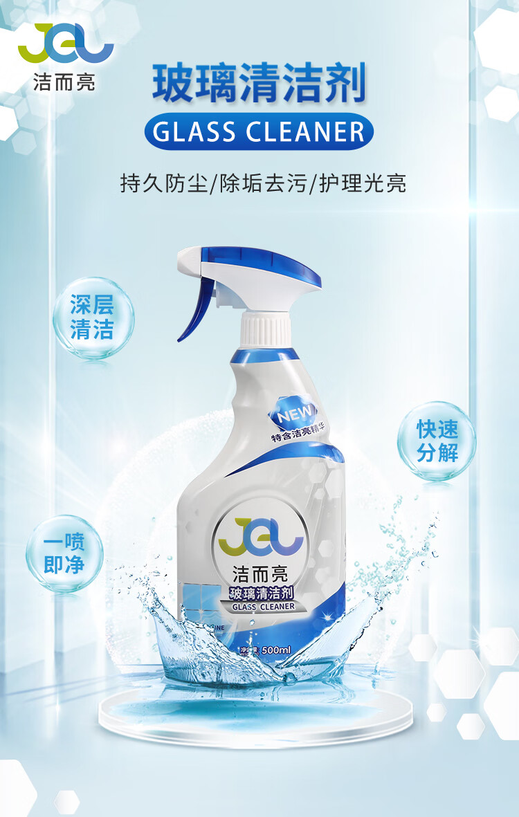 Jie Erliang glass cleaner, bathroom water stain removal, cleaning car windows, oil removal film, brightening, traceless dustproof, long-lasting clean, single bottle trial pack