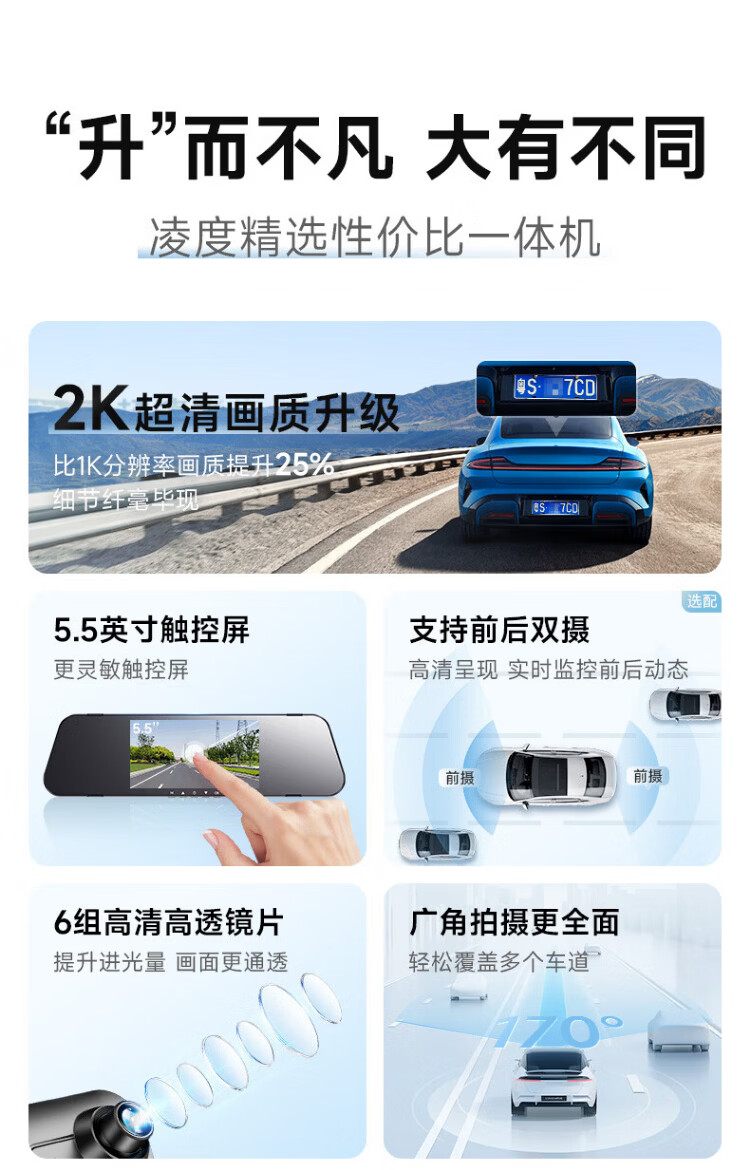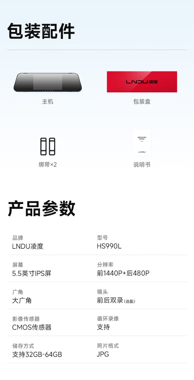 LNDU Lingdu driving recorder front and rear dual recording streaming 2K high-definition night vision reversing image 24-hour parking monitoring package four 10 inches + single lens + 32G (2K)