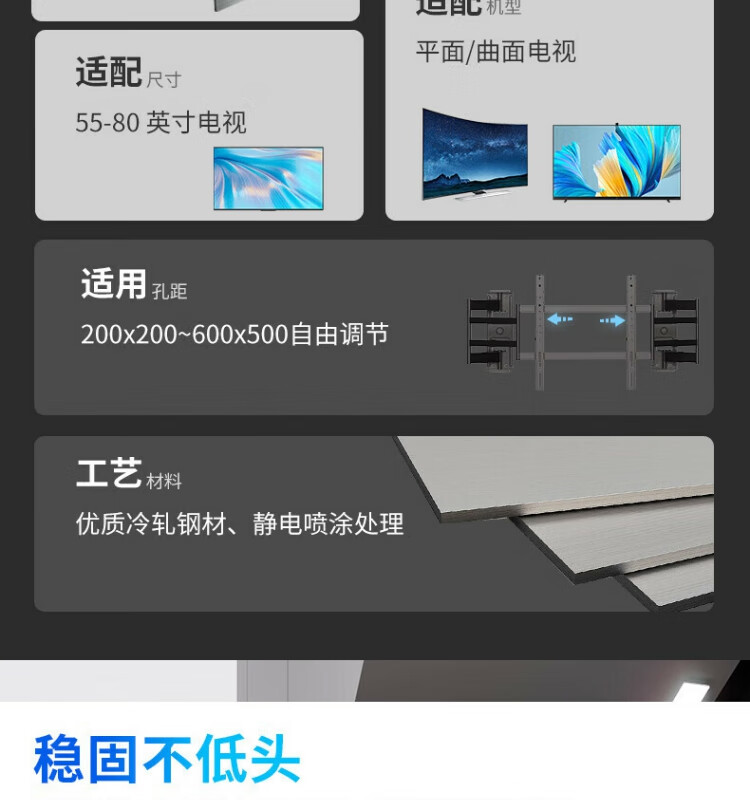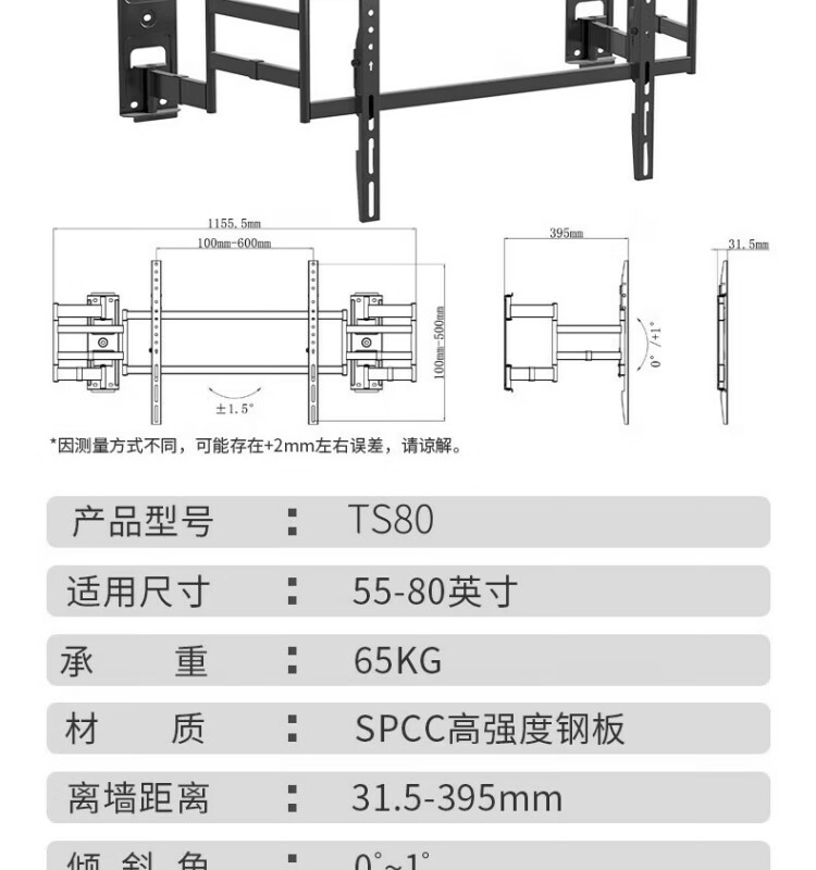 KALOCTS80 TV rack universal 65-80 inch telescopic rack TS90 suitable for Hisense Thunderbird TCL Xiaomi Skyworth TS100Max TV bracket does not block the audio socket TS120 supports 85-120 inch TV
