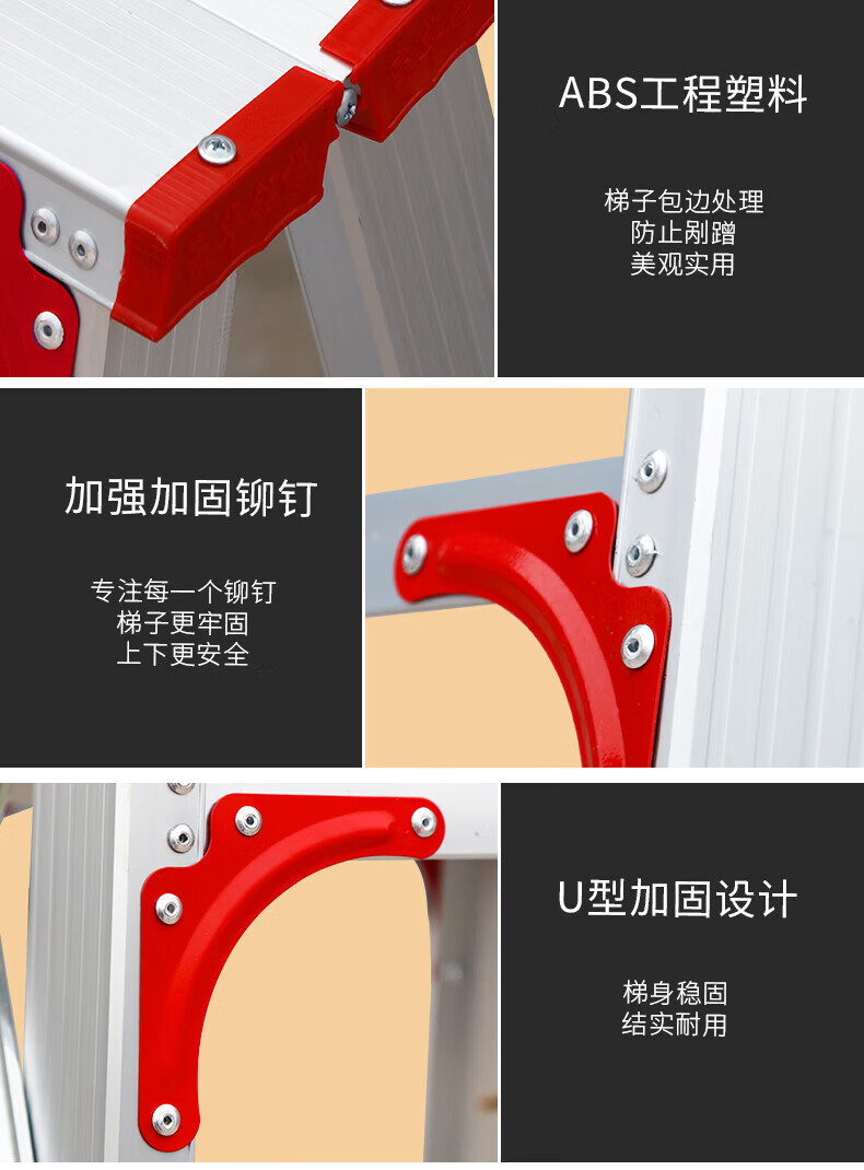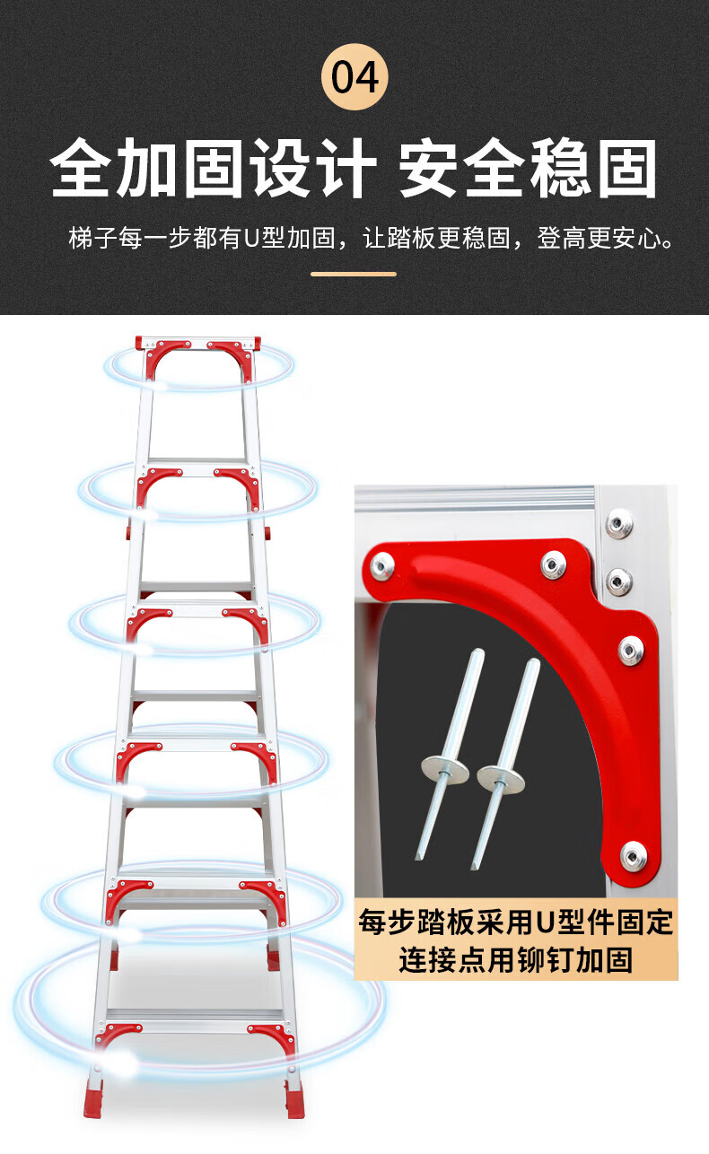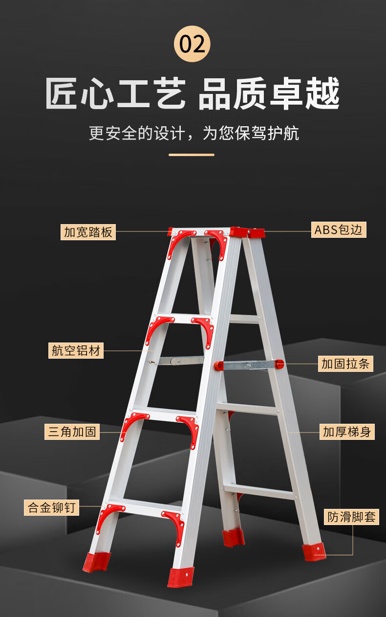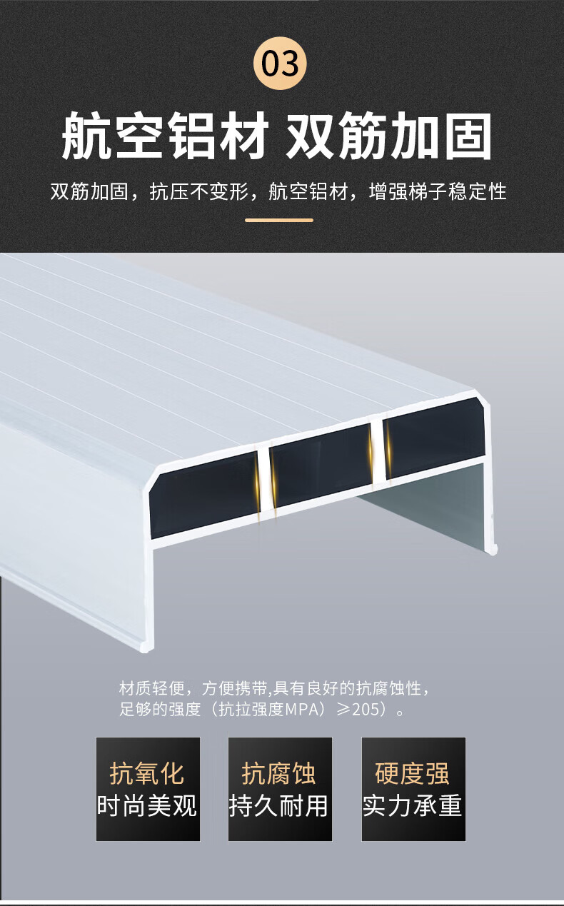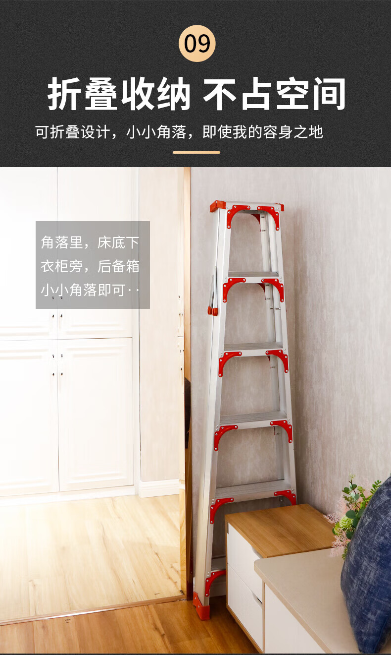 Ladder folding telescopic aluminum alloy herringbone ladder engineering ladder multi-functional telescopic stair ladder AA reinforced reinforced version - 3.0 meters thick