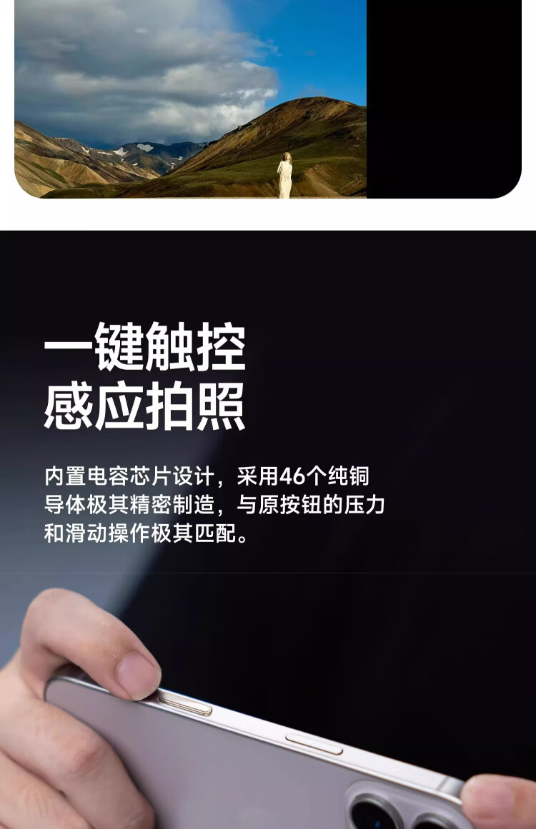 Chilanger AI camera button sticker, suitable for Apple 16ProMax mobile phone case, camera button sticker, iphone16plus touch photography, capacitive induction side anti-scratch protective film, button camera sticker, titanium original color, non-destructive touch, metal protection, no damage to the original button, iPhone 16 Plus