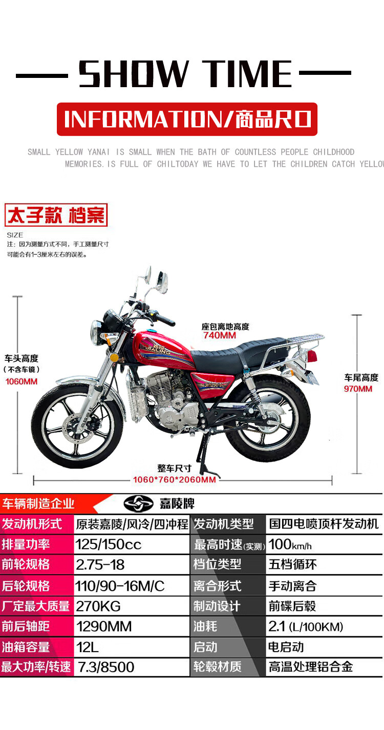 Jialing Jialing Top Prince Motorcycle 125 Brand New National IV Electronic Injection 150 Fuel-Efficient Motorcycle Takeaway Can Be Licensed Black 125CC Vehicle Certificate Invoice Guard Bar Large Shelf