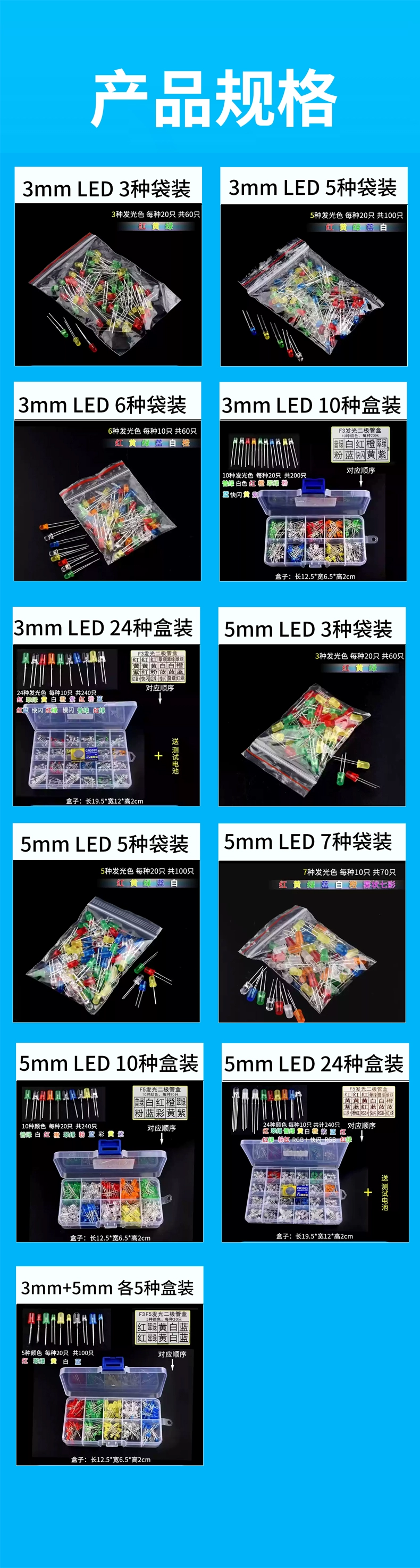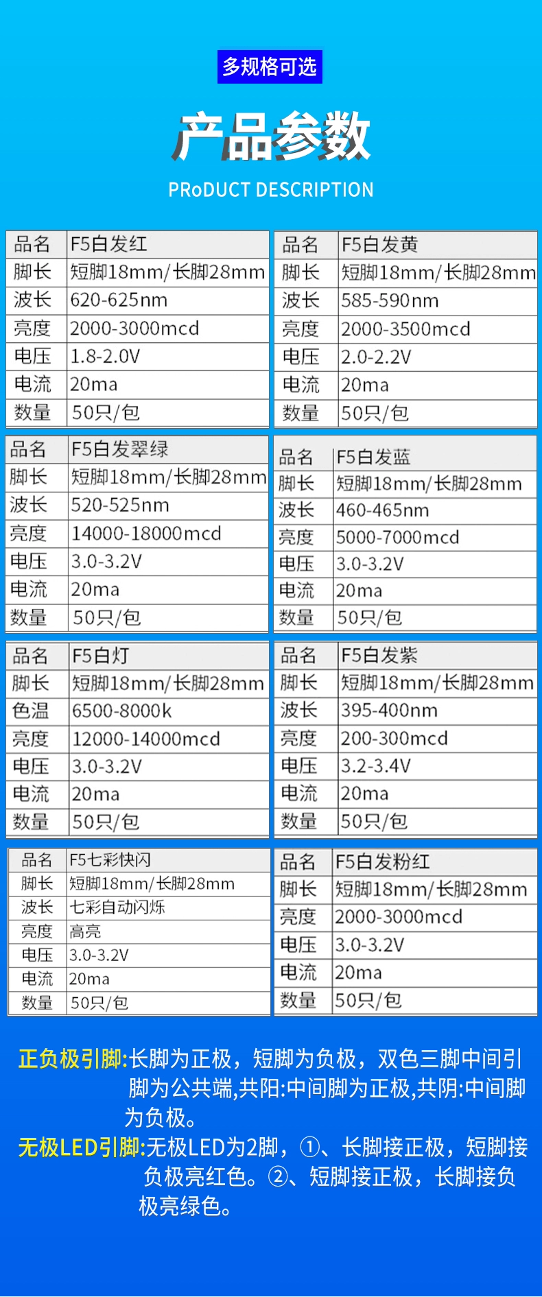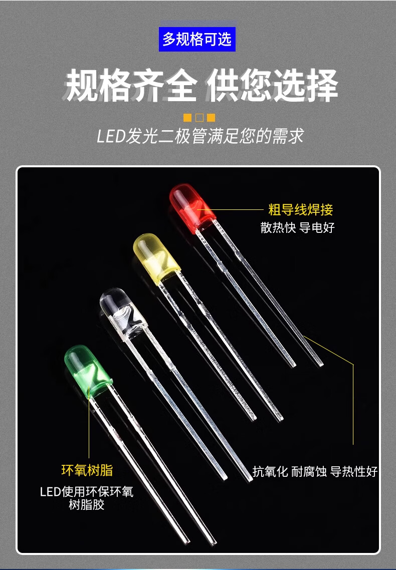 3mm 5mm light emitting diode F3F5 LED lamp beads white with white hair/red, green, blue, yellow, purple, pink/color (50 pieces) 5mm white with white hair, long legs (50 pieces)