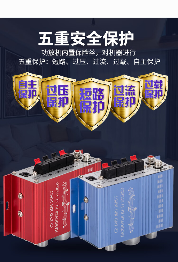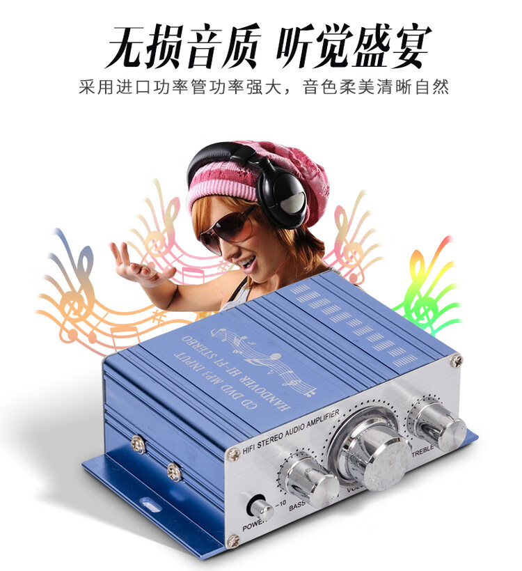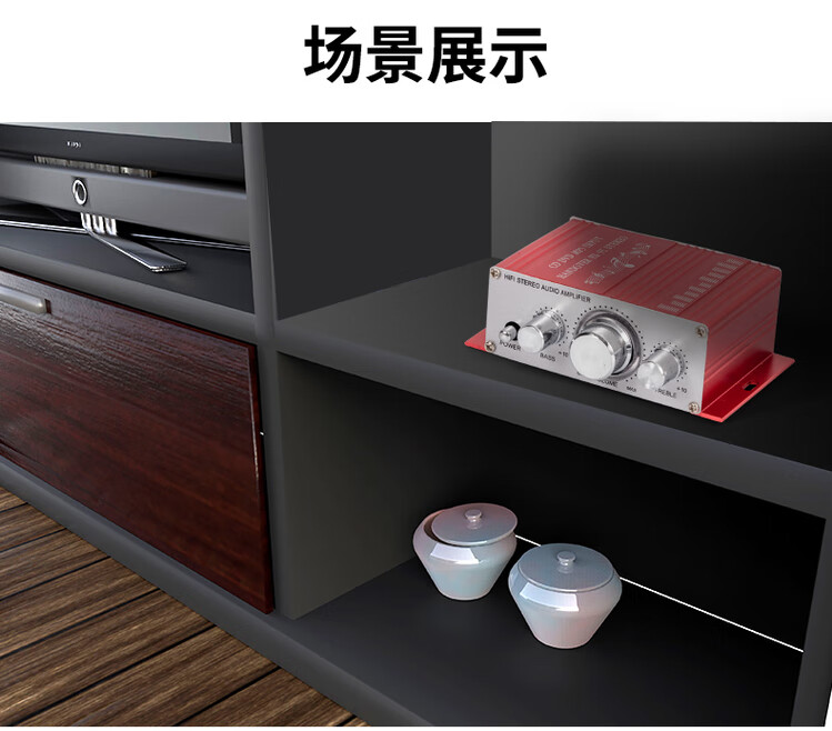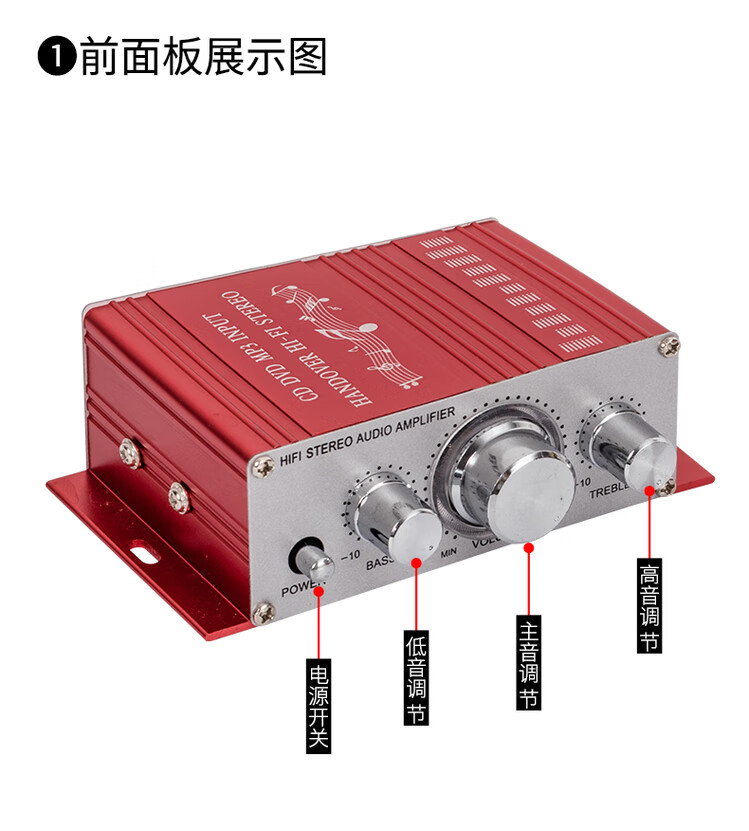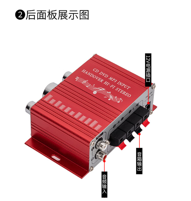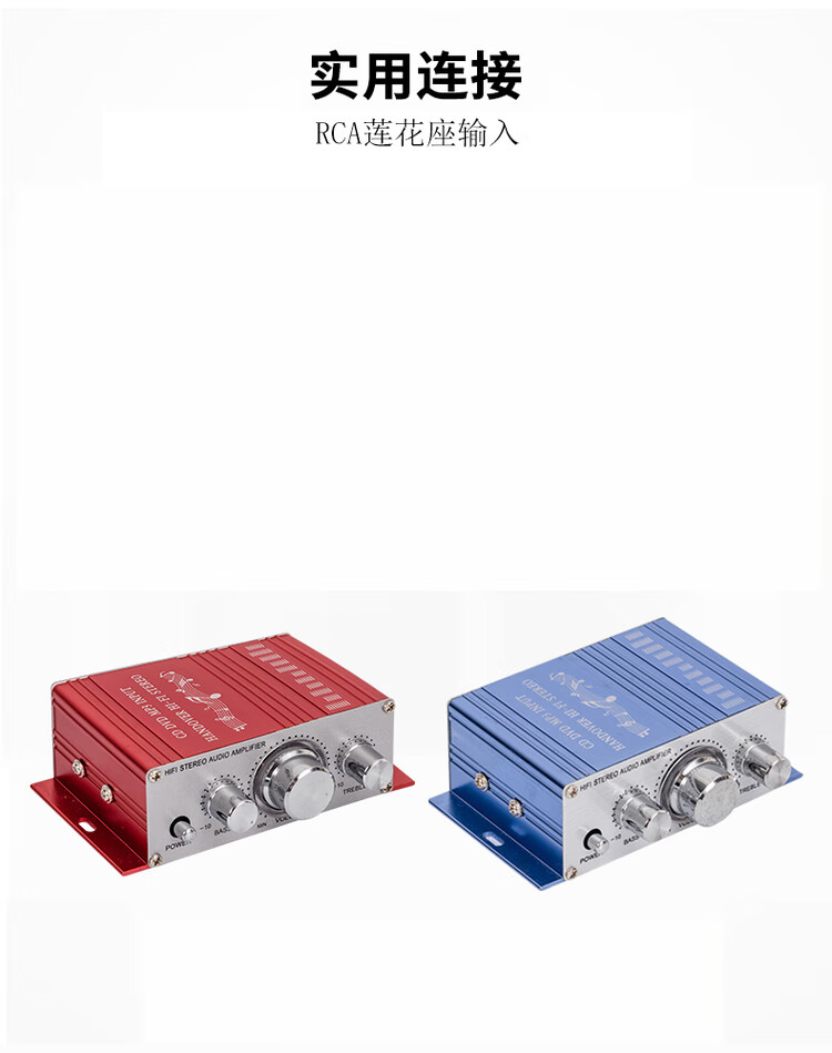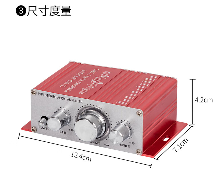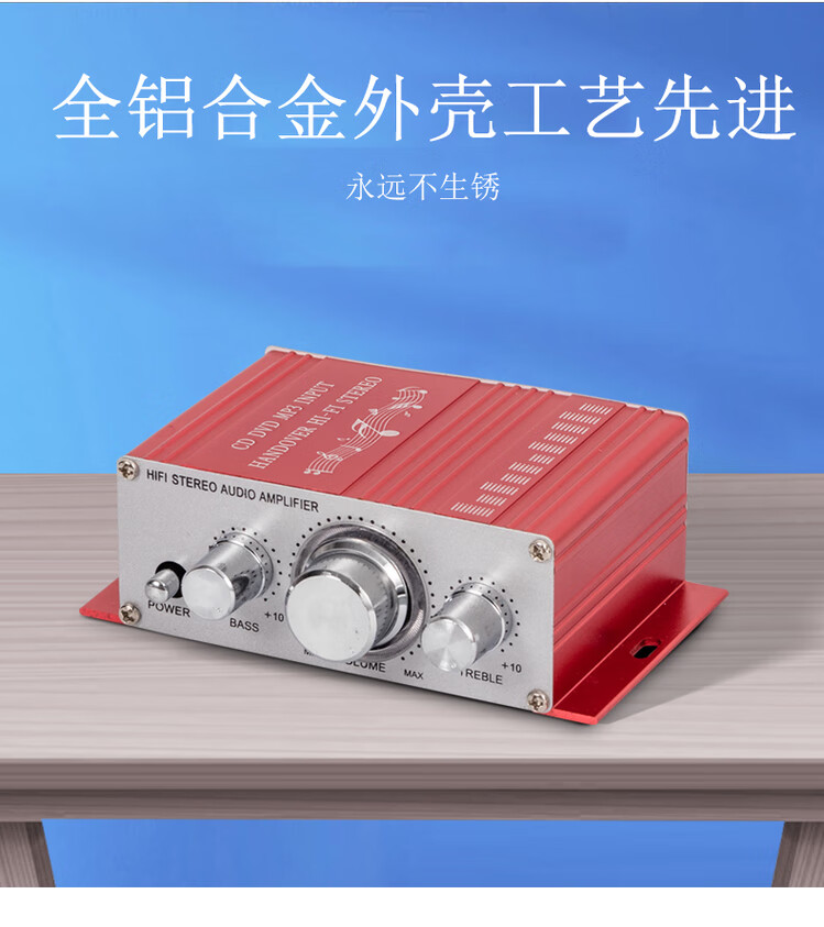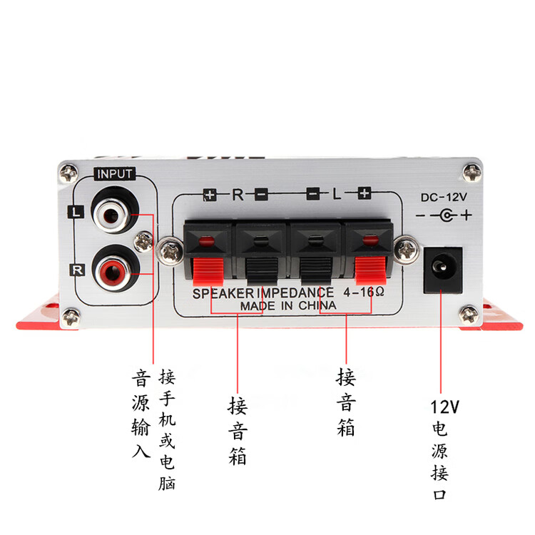 Jiate mini small power amplifier audio power amplifier computer desktop bedside audio amplifier combination red +12V3A power supply