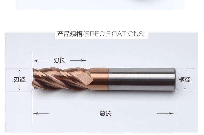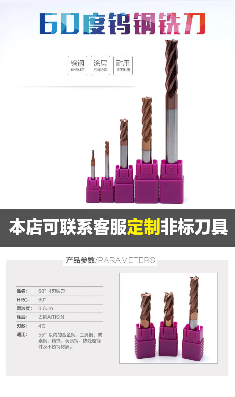 Chunbao 60-degree extended coating 2-edge 4-edge flat head tungsten steel alloy end mill stainless steel knife 2468 CNC red 20X80X150
