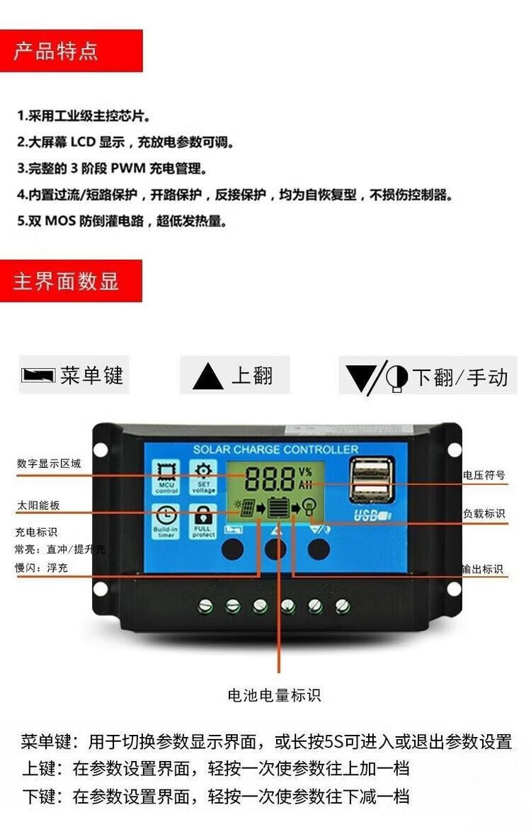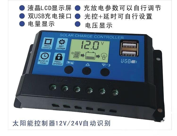 Photovoltaic panel ten battery ten controller ten inverter solar energy 12V/24V fully automatic universal charge control regulator 12V24V20A universal controller