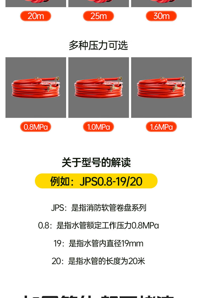 Fire reel 10/20/30 meter fire hydrant box self-rescue reel fire hose reel fire hose hose JPS0.8-19/20 meter fire reel + fixed hanger