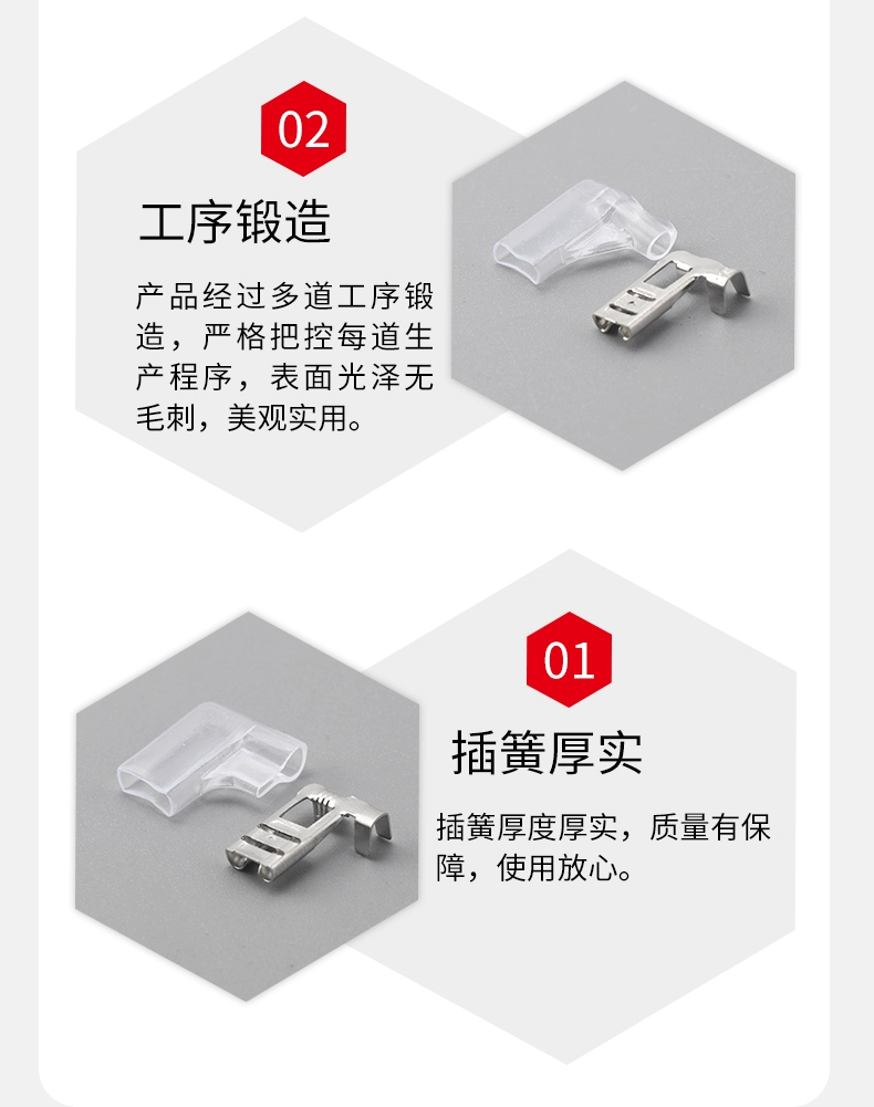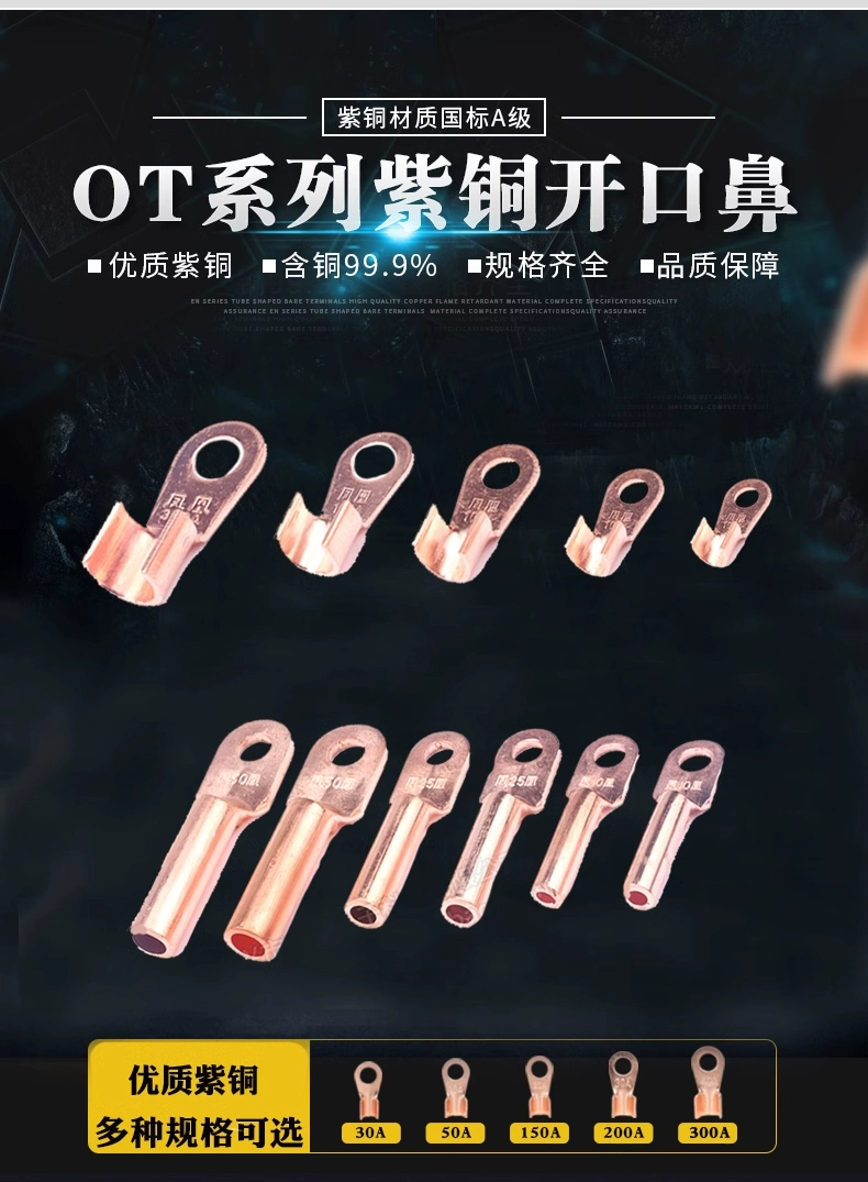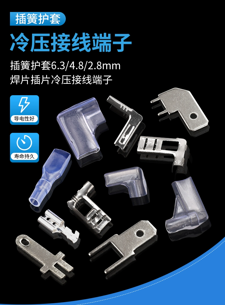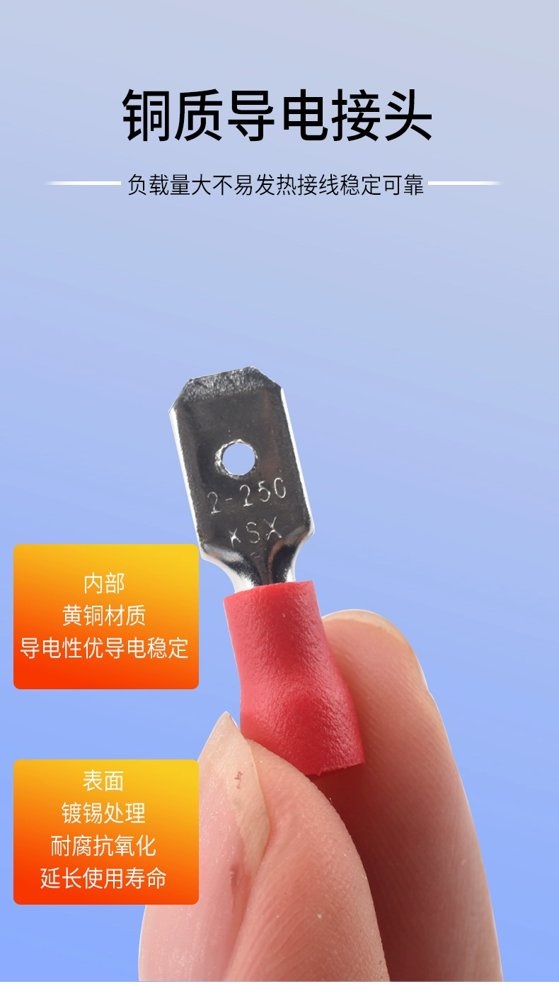 Plug-in cold-pressed terminal copper connector 6.3/4.8/2.8mm spring terminal wire nose female connector lug DJ431 6.2MM copper open nose (20 pieces)