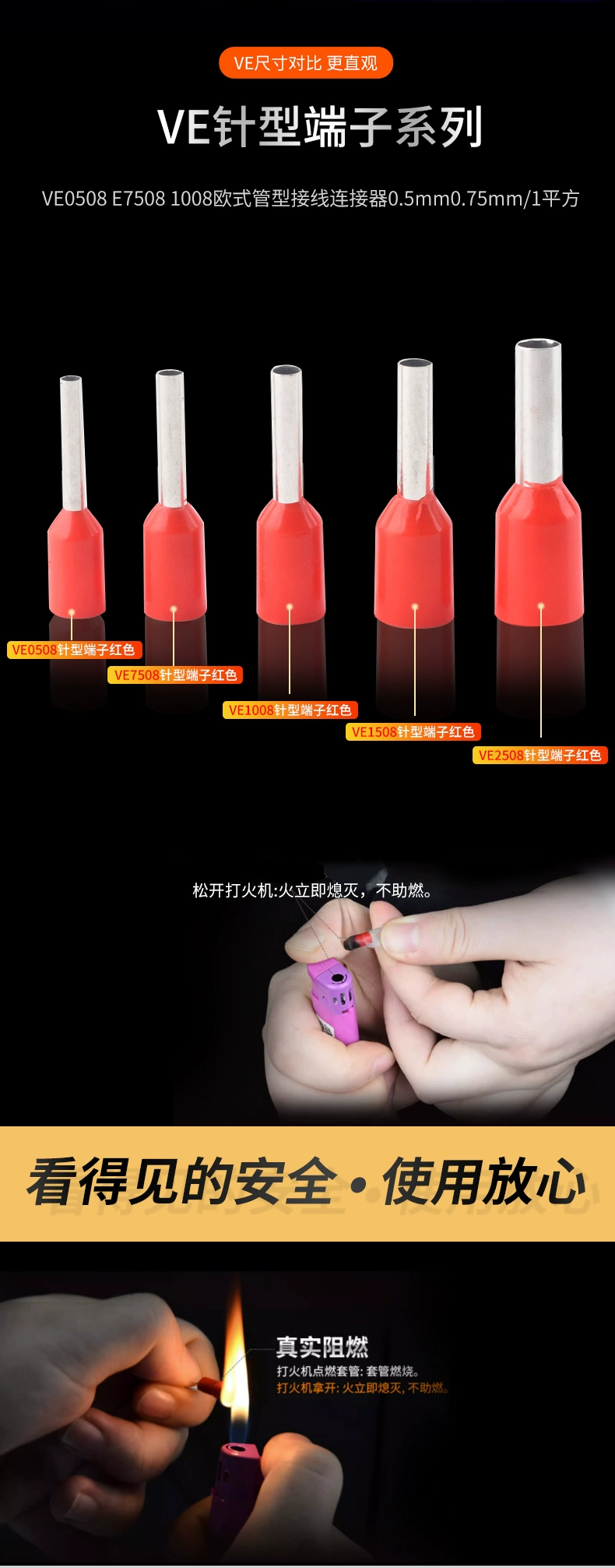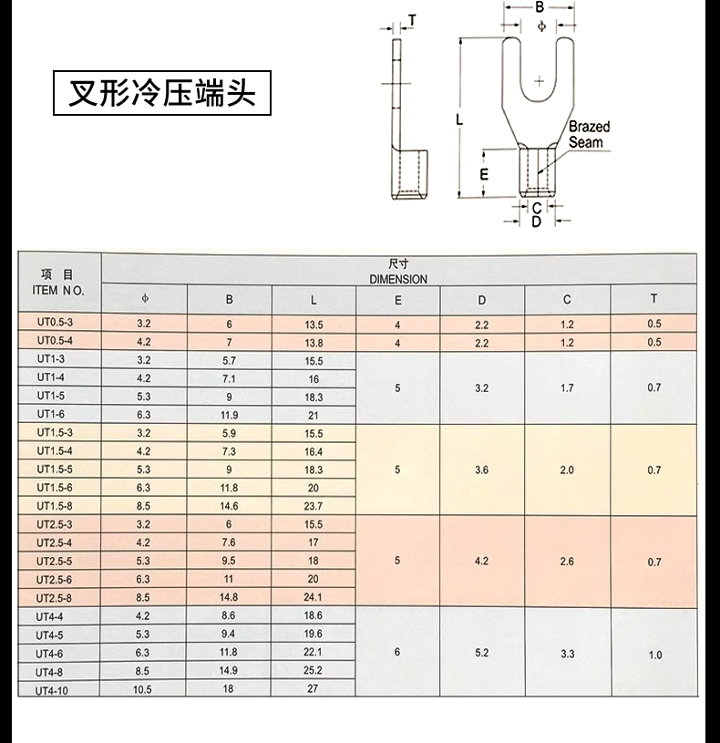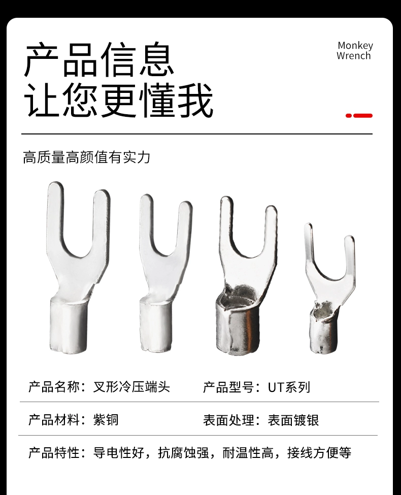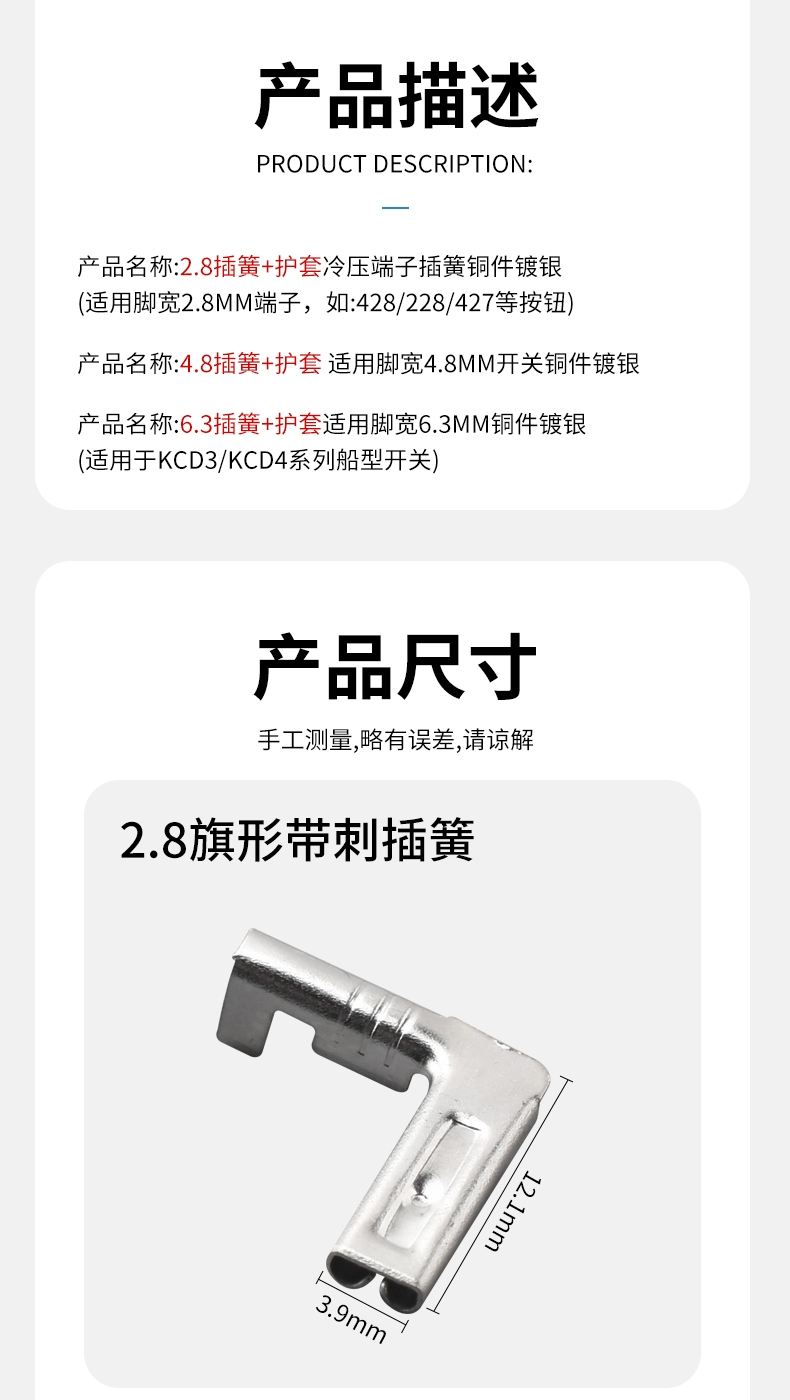 Plug-in cold-pressed terminal copper connector 6.3/4.8/2.8mm spring terminal wire nose female connector lug DJ431 6.2MM copper open nose (20 pieces)