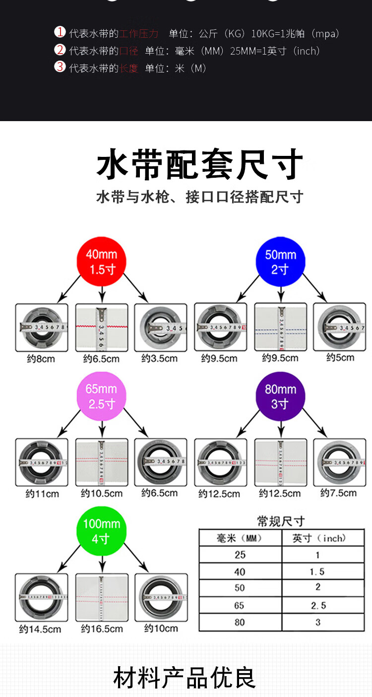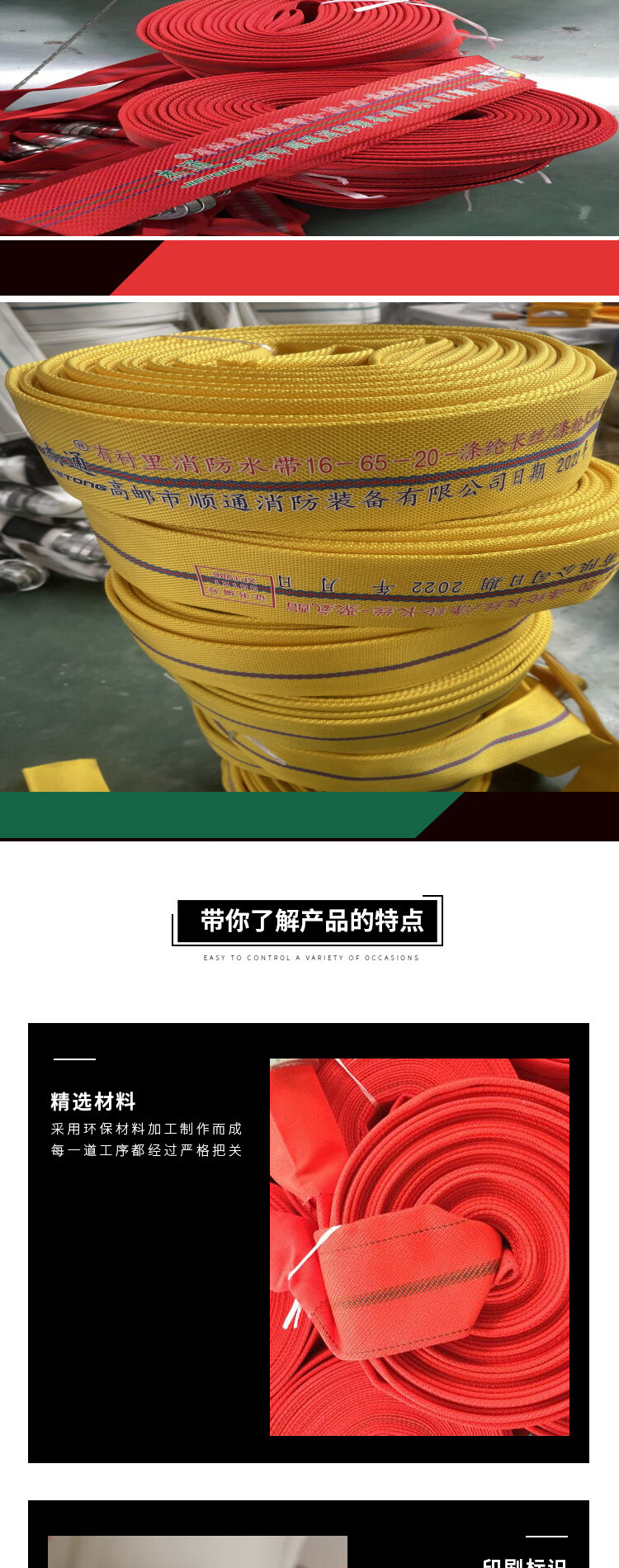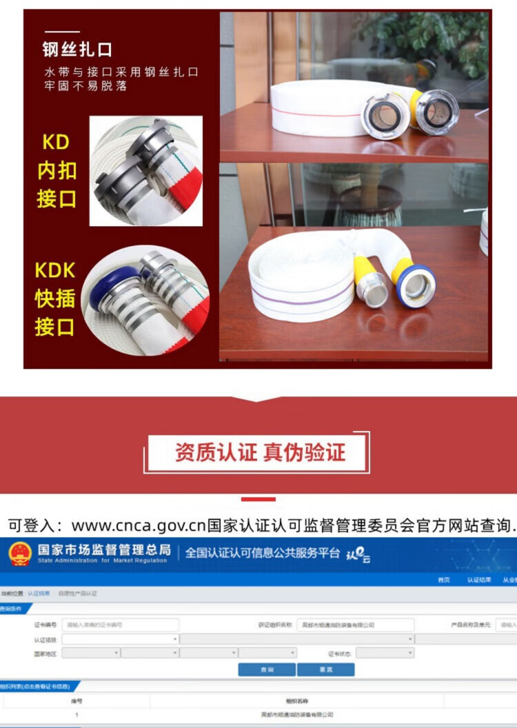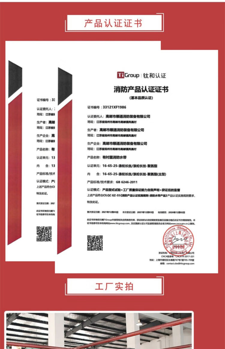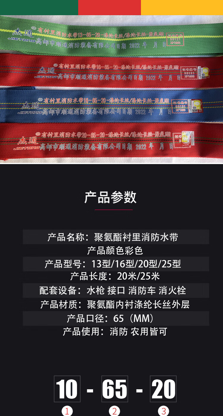 Fire hose 13-65-20/25 red polyurethane rubber lined high pressure wear-resistant thickened 2.5/3 inch water pipe DN50 13-50-25 red hose with inner buckle interface 2 inches