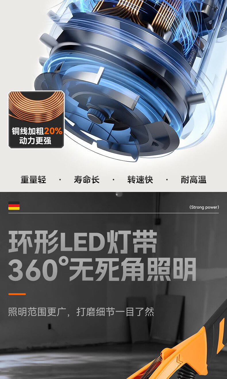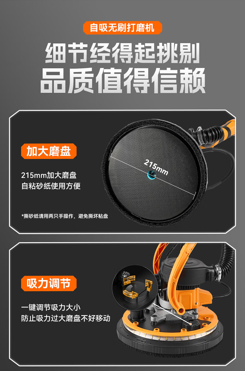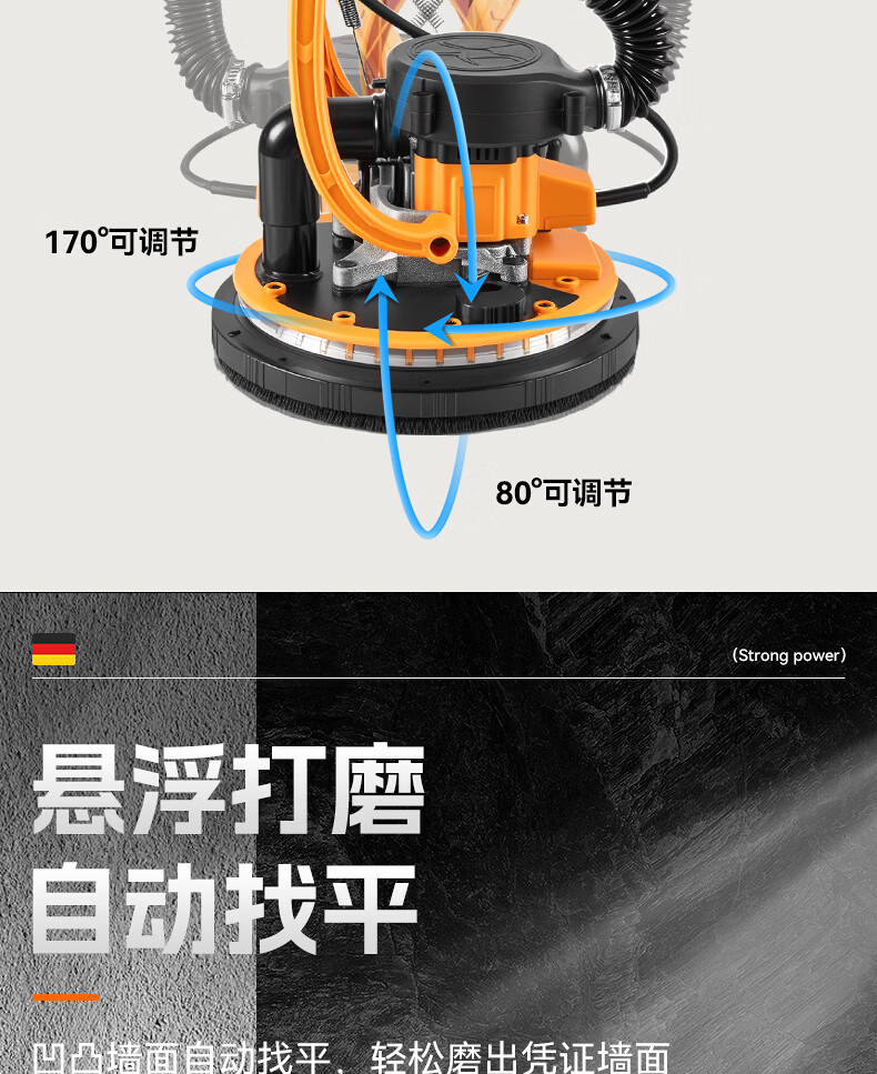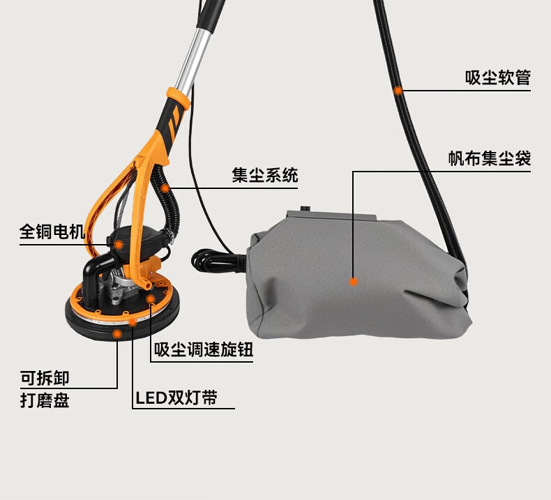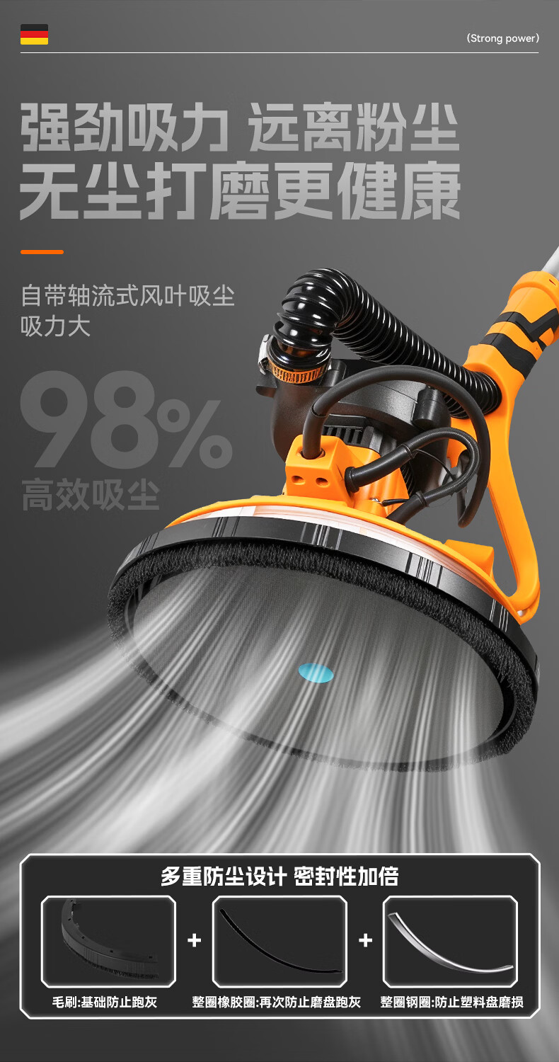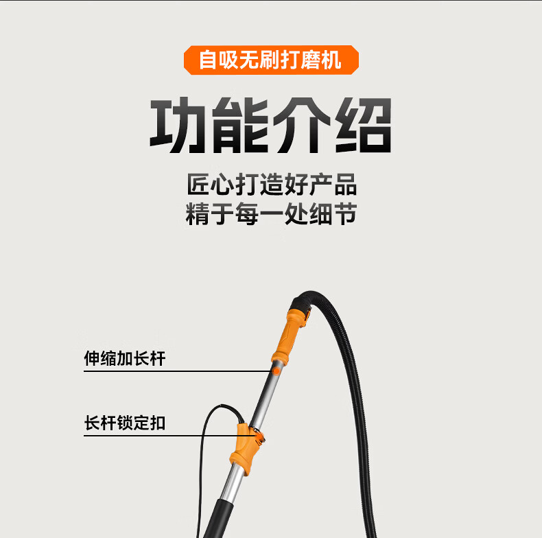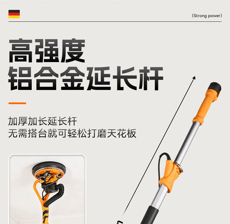 Tianweihu self-priming ceiling grinder brushless wall putty long pole sandpaper machine electric dust-free new wall grinding artifact without dead corners 3.6 meters brushless self-priming model + 6 sandpaper