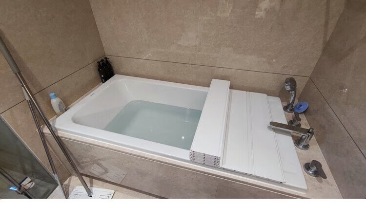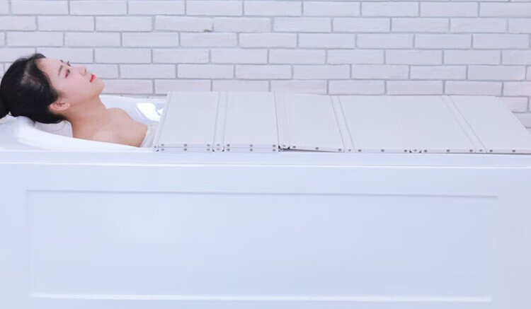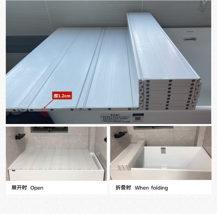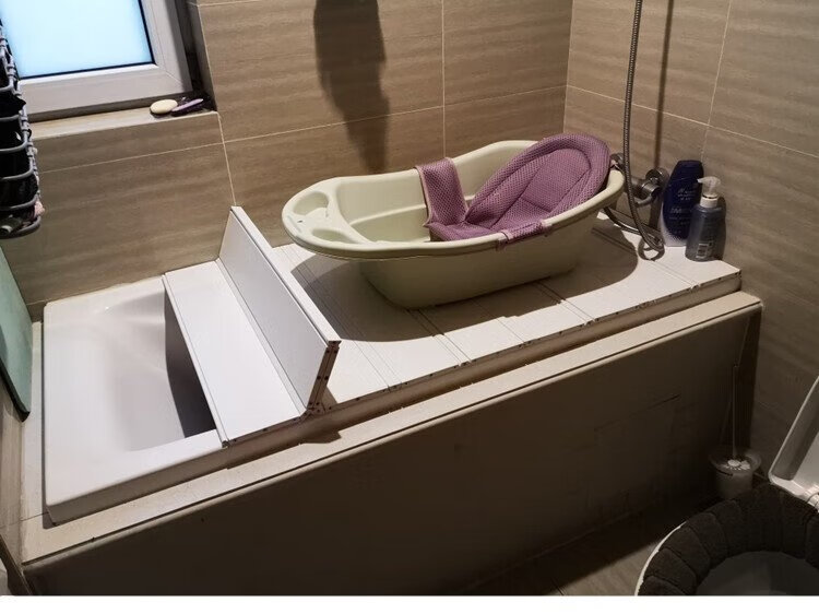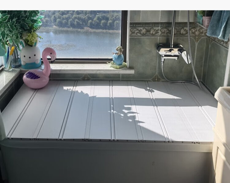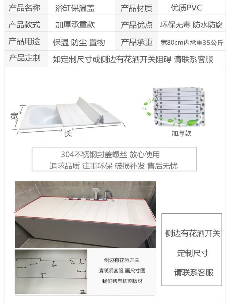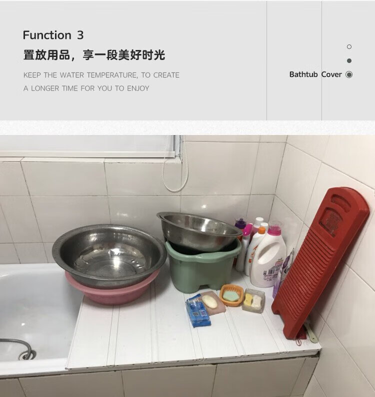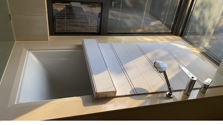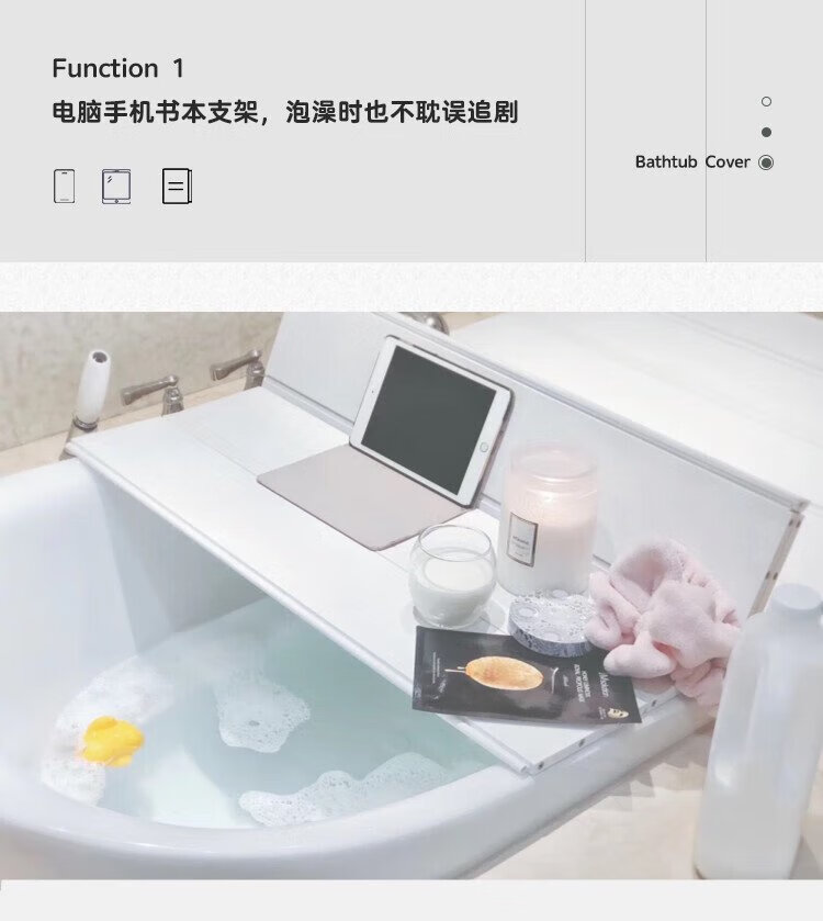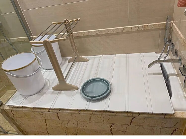 Maiyijia Bathtub Folding Dustproof Insulation Cover Bathtub Platform Bathtub Bath Stand No Perforation Partition Bathroom Storage Rack White Wood Grain Color Width 66cm Thickened For customization or if there is a shower switch on the side, please contact customer service