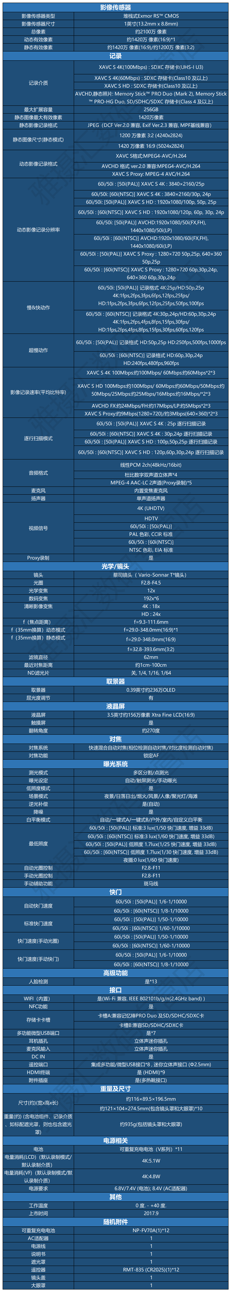 Sony FDR-AX700 4K HDR professional high-definition digital camera Home office live video DV camera International version Sony FDR-AX700 camera standard international version (store warranty 1 year)