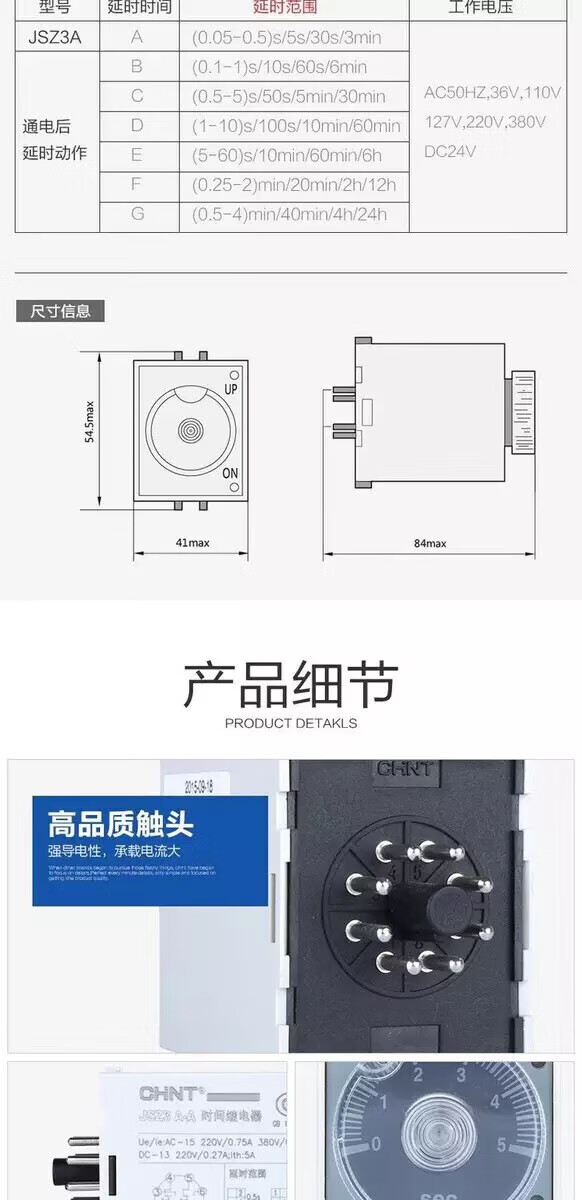 Chint (CHNT) power on delay time relay ST3P JSZ3A-A A-B AC220V 380V 110V base